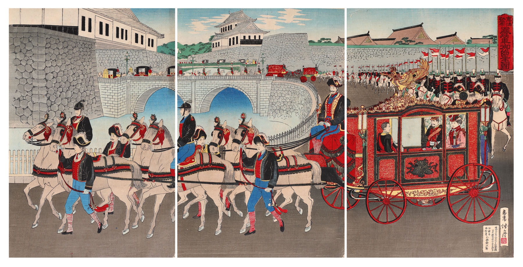117. Împăratul Meiji și Împărăteasa Haruko în caleașcă după promulgarea Constituției [1889]