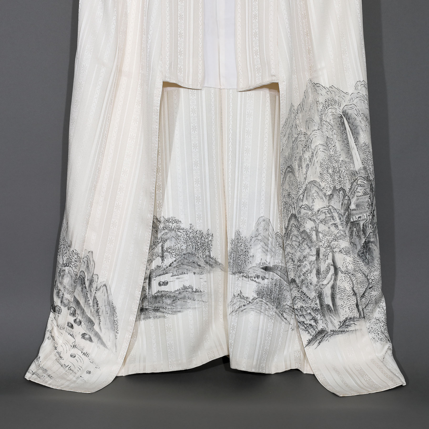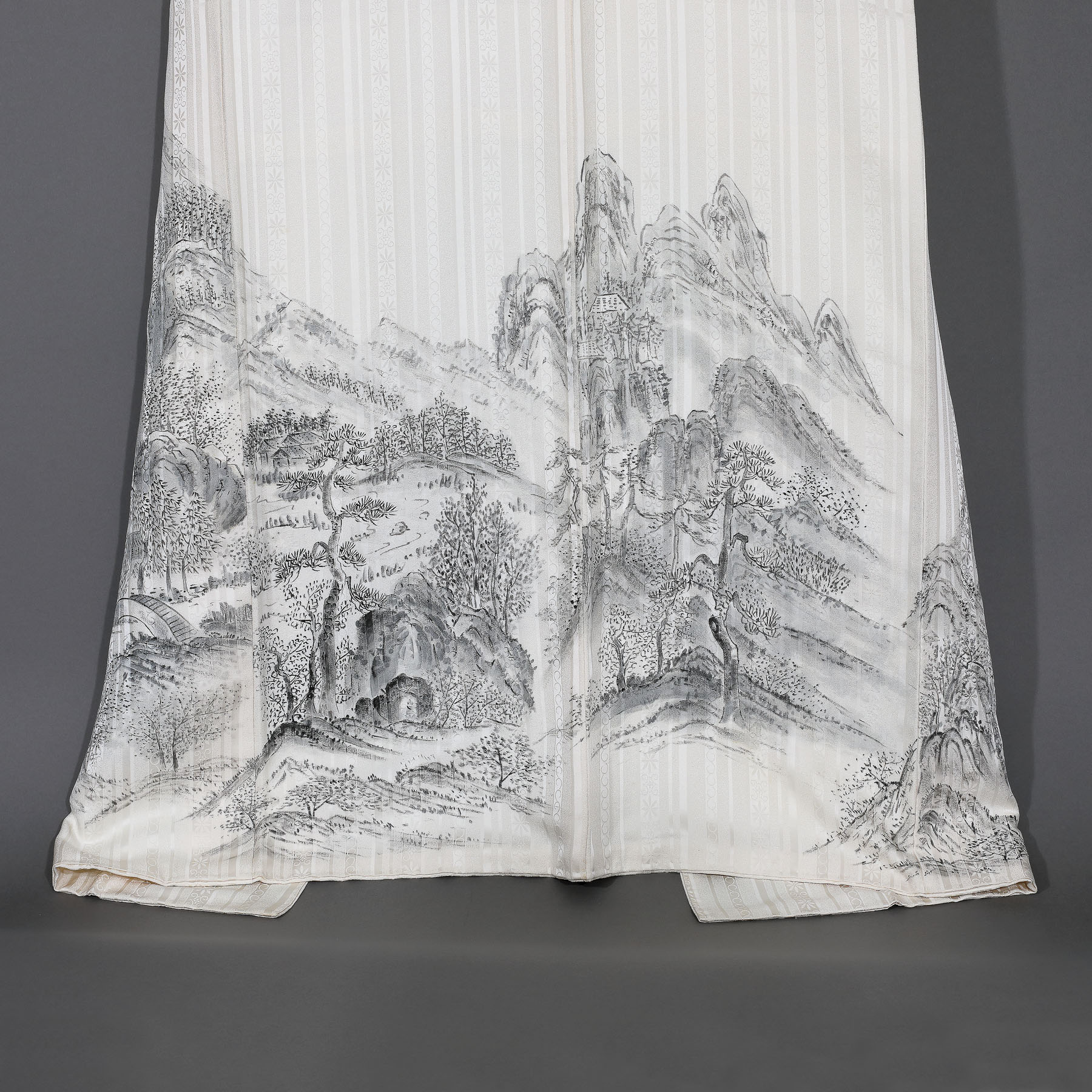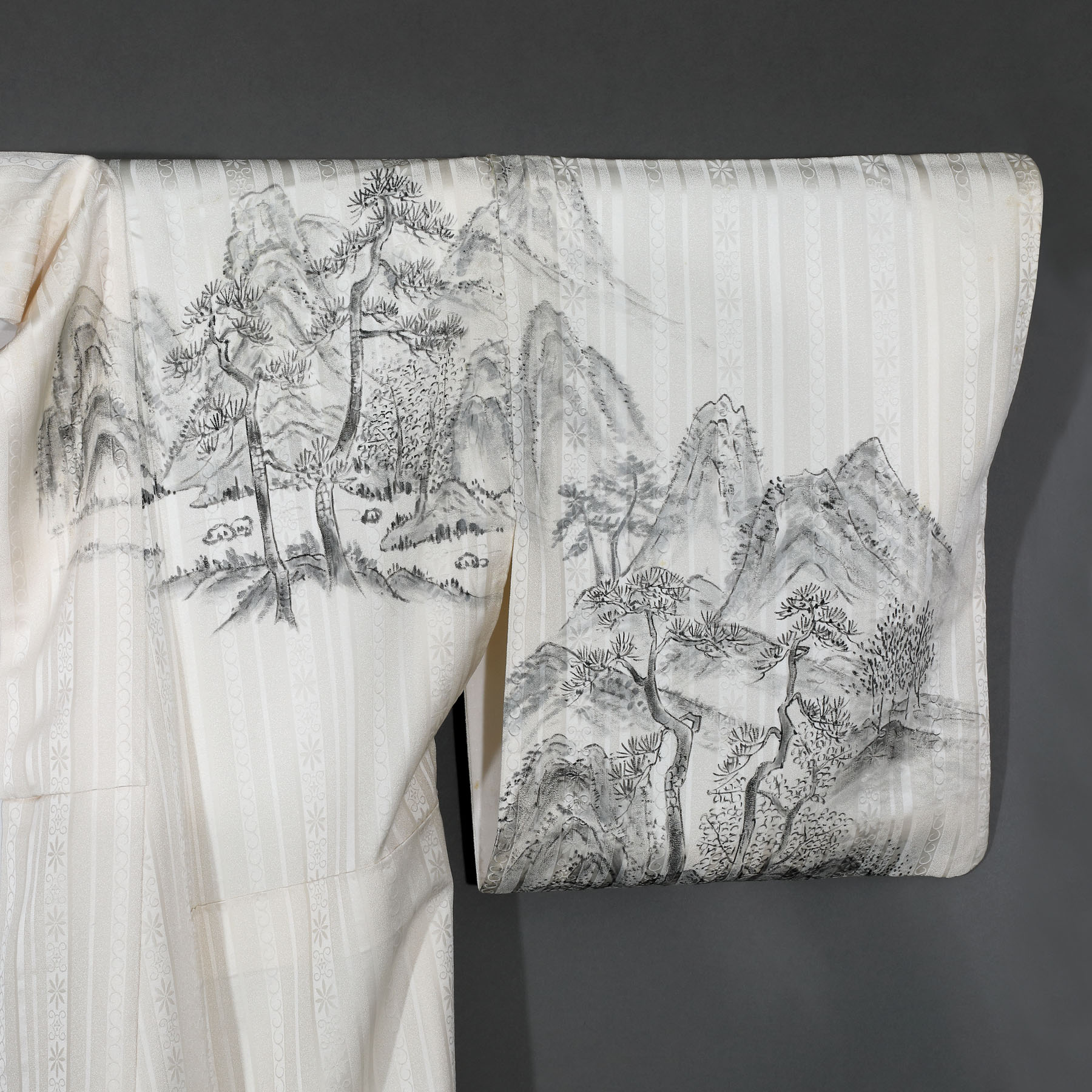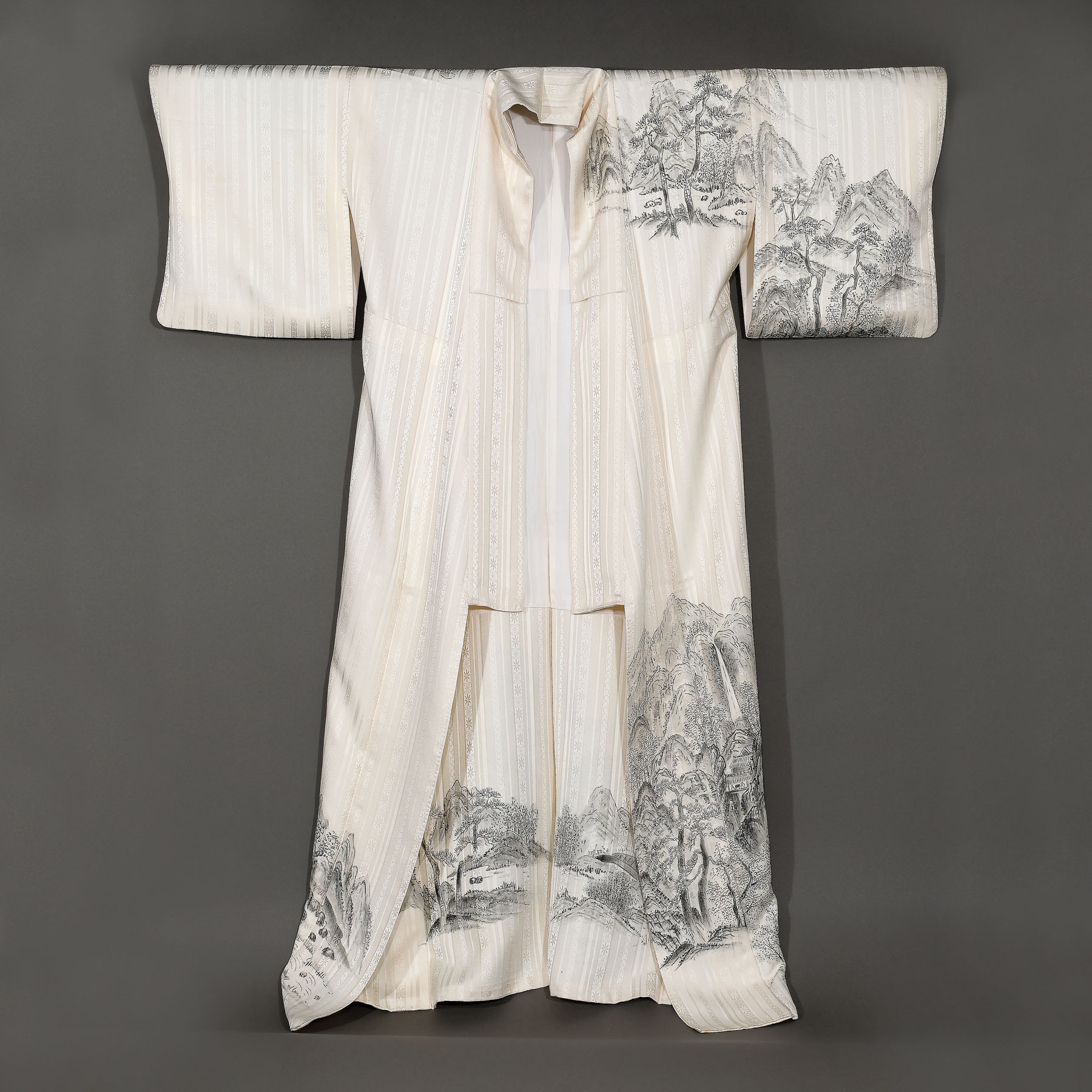 110. Kimono din mătase, pictat manual cu scene tradiționale japoneze, Japonia, cca. 1940