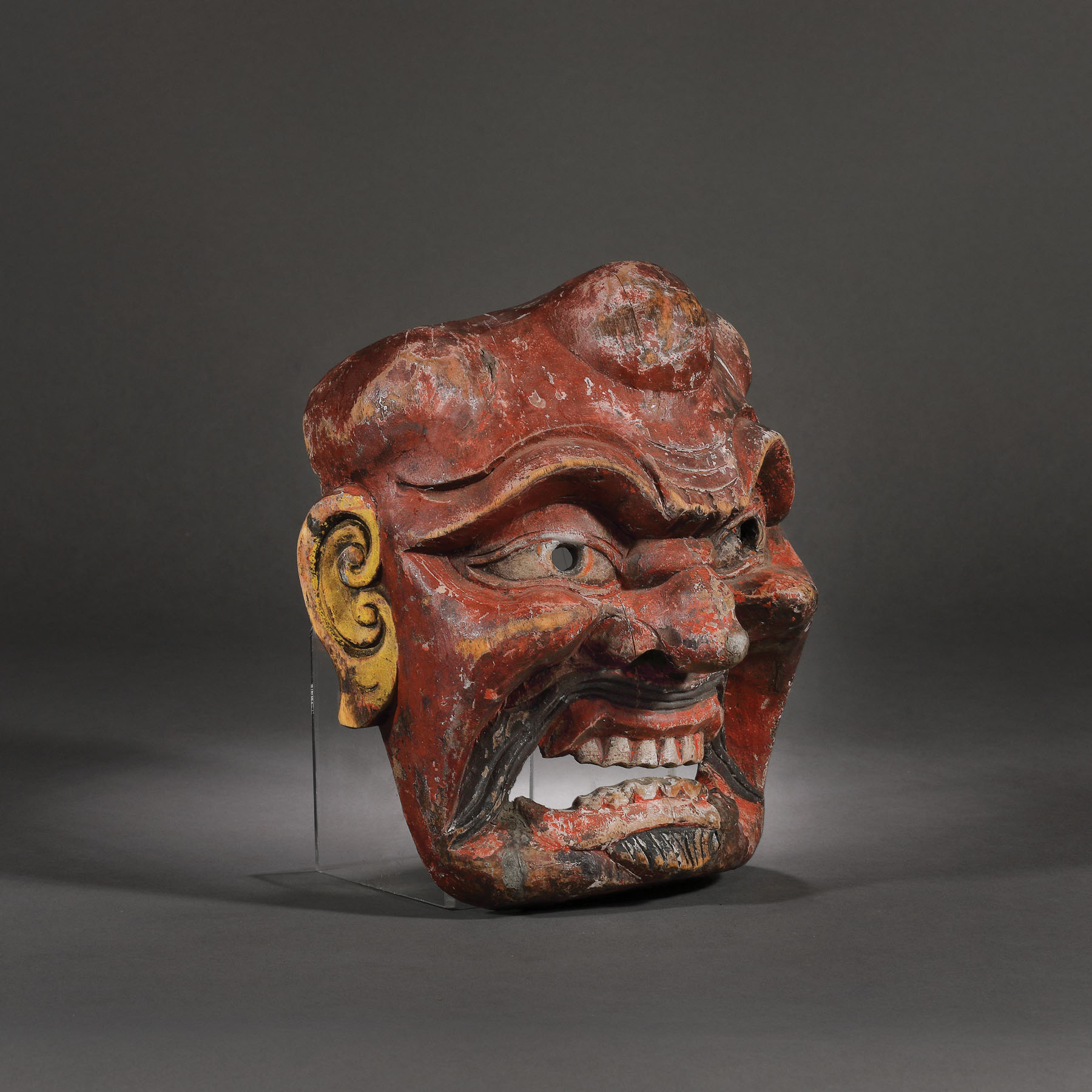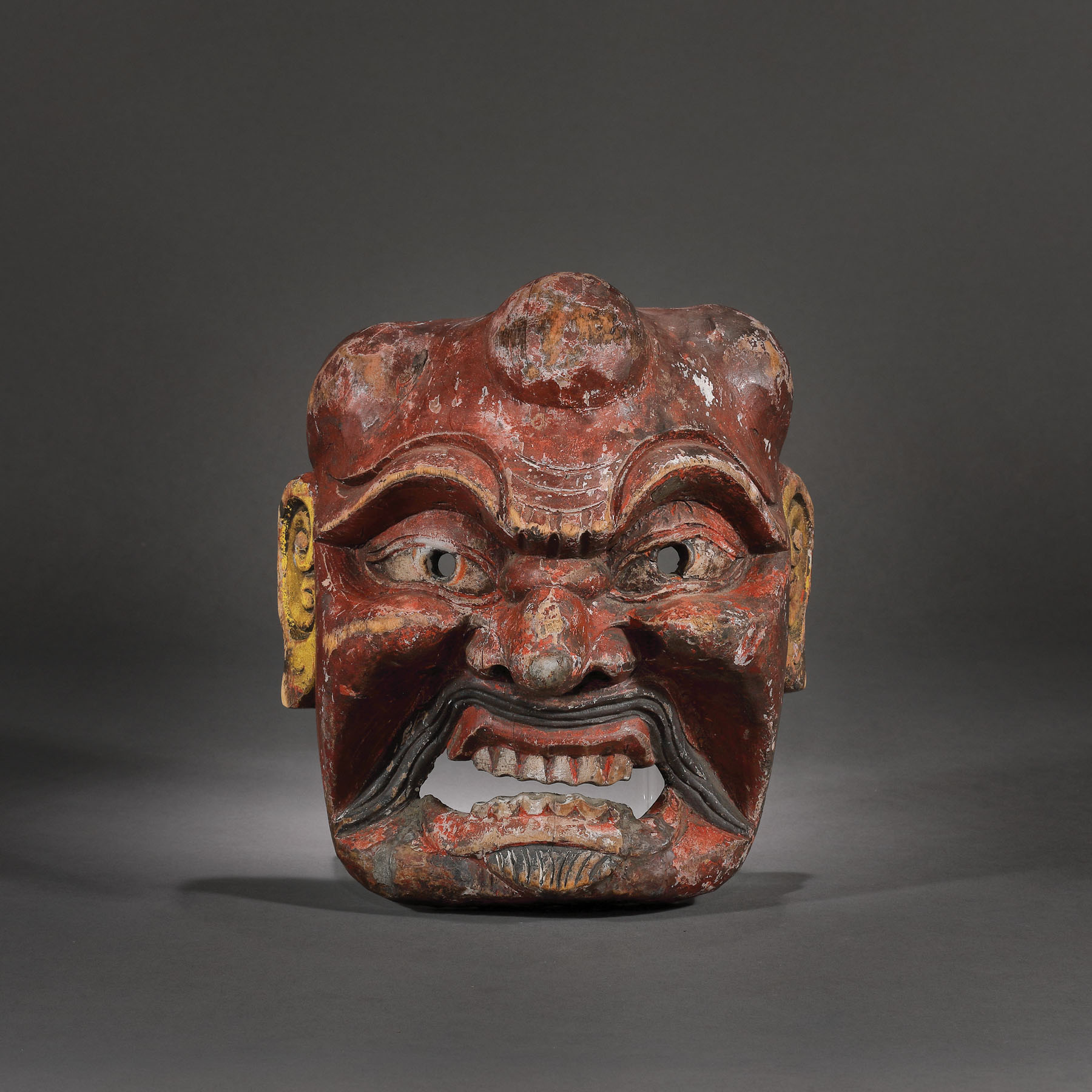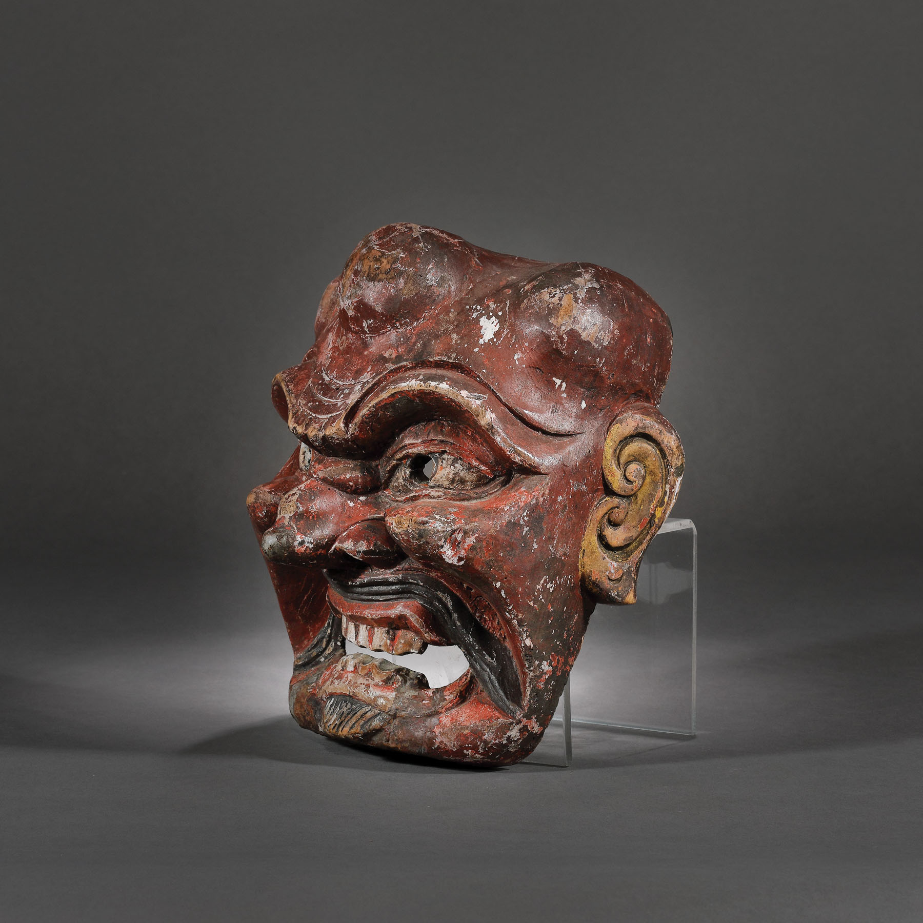 46. Mască din lemn, specifică teatrului Noh, perioada Meiji, Japonia, sfârșitul sec. XIX