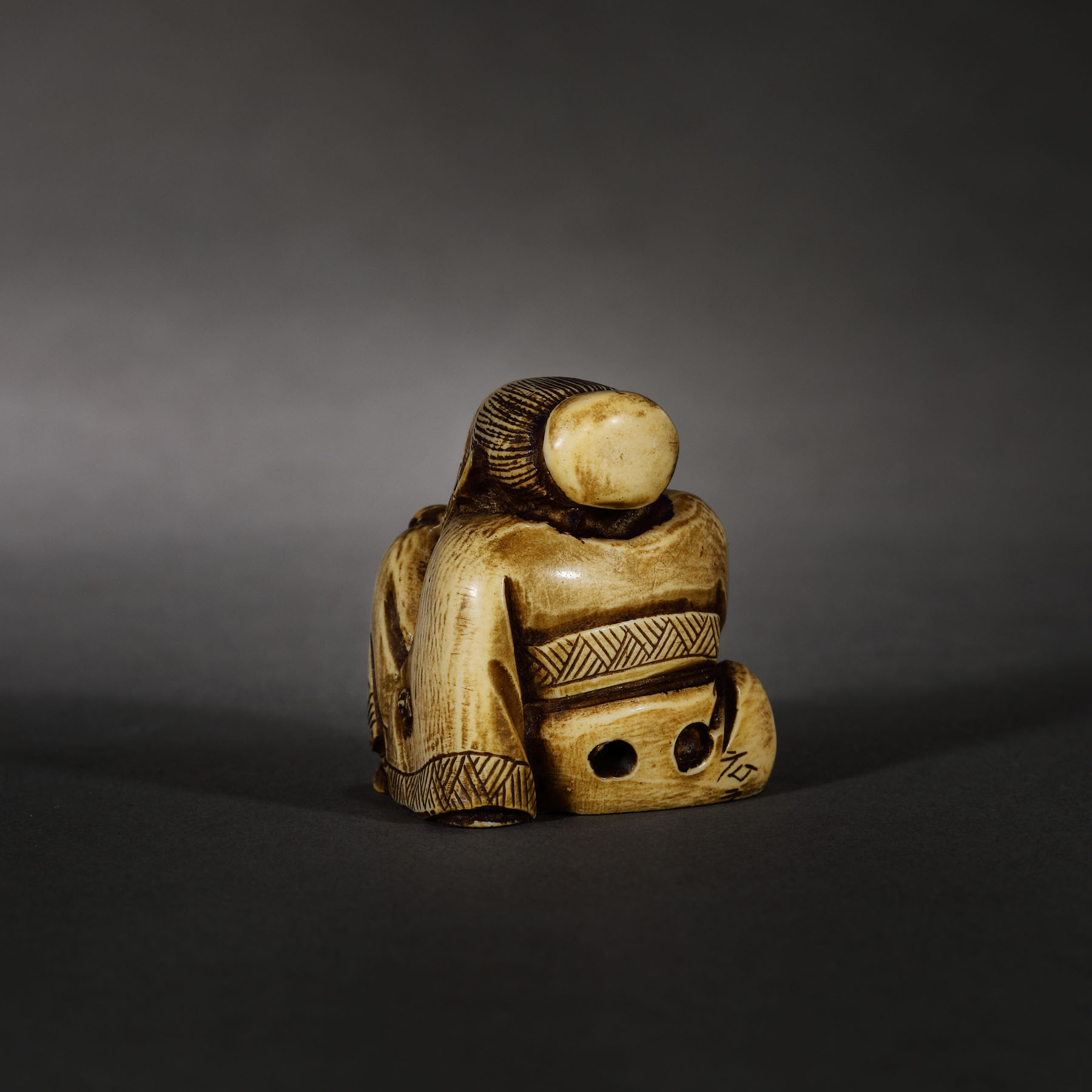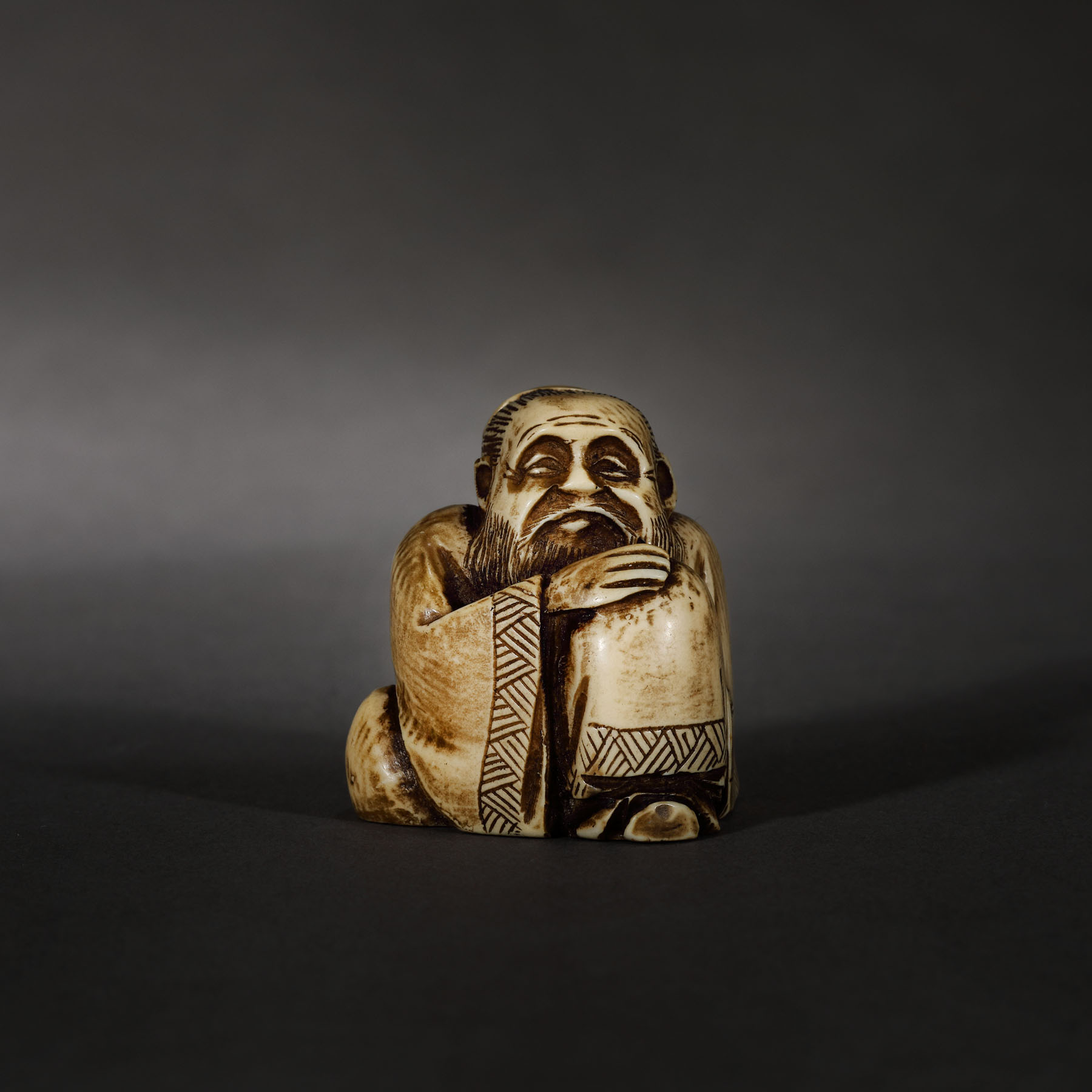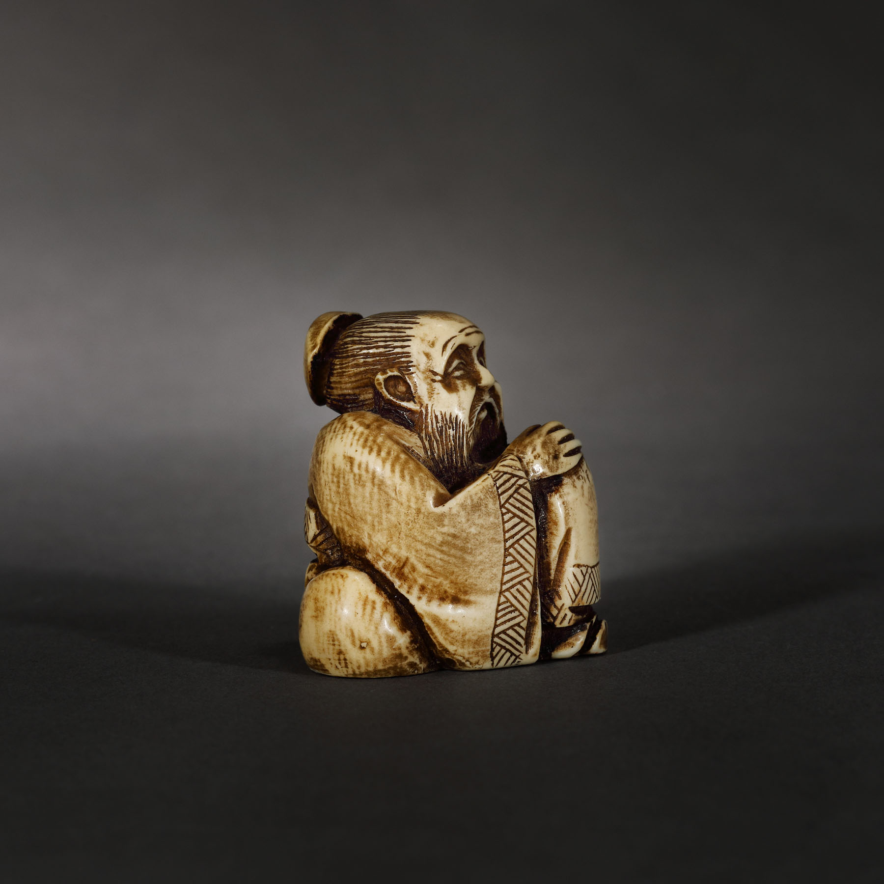 75. Netsuke din fildeș, ilustrând un cărturar, perioada Meiji, Japonia, sec. XIX