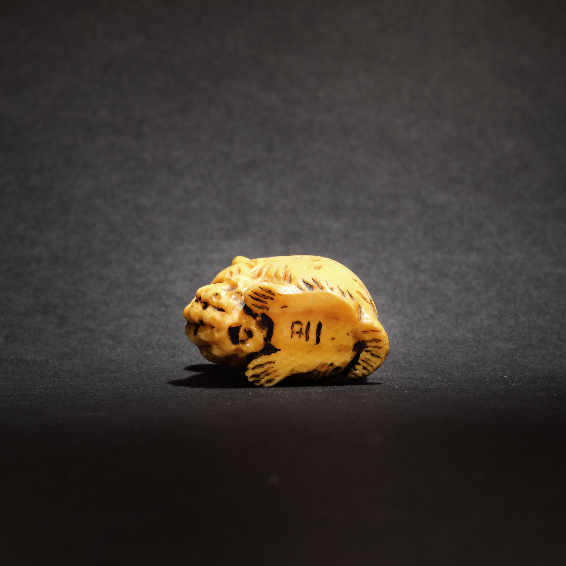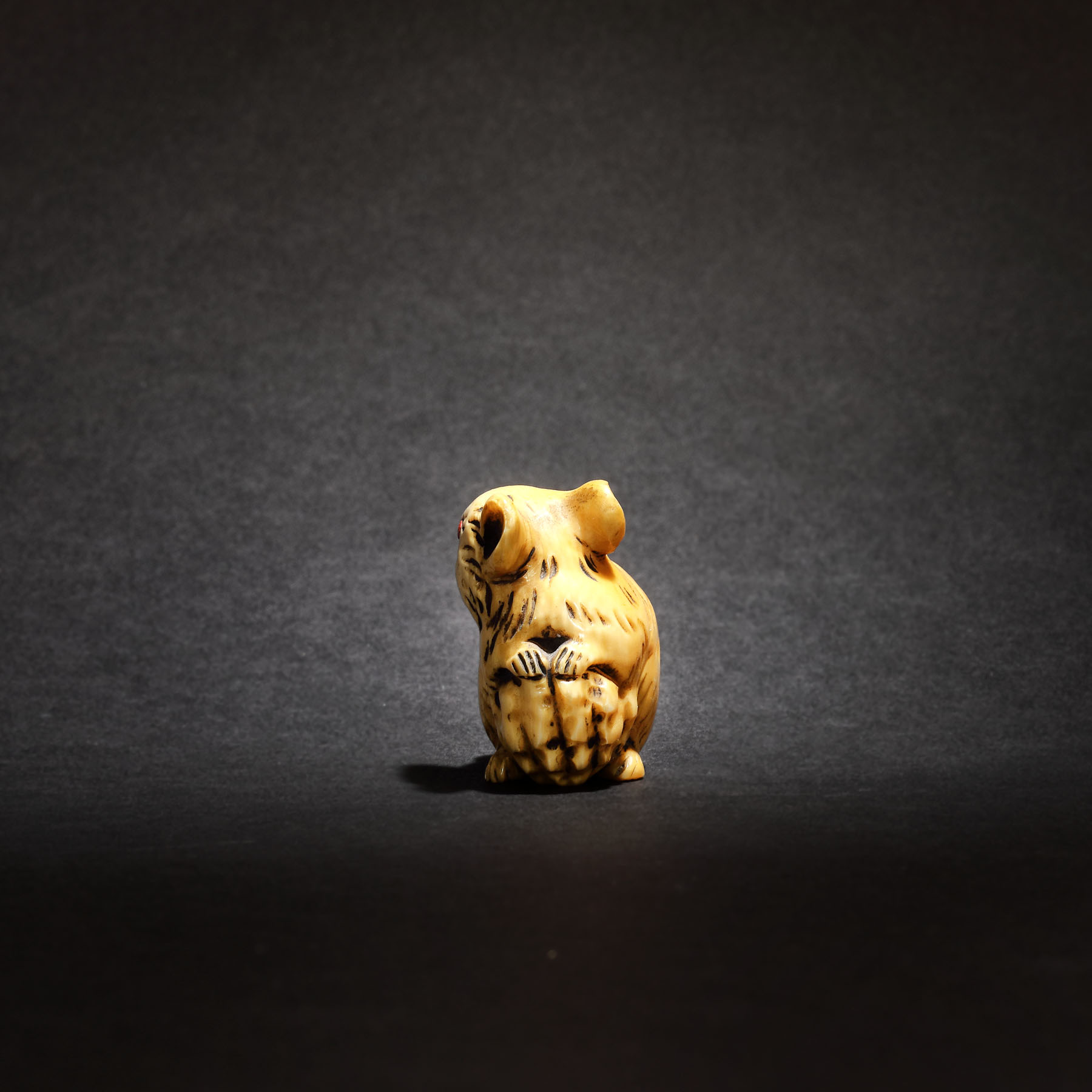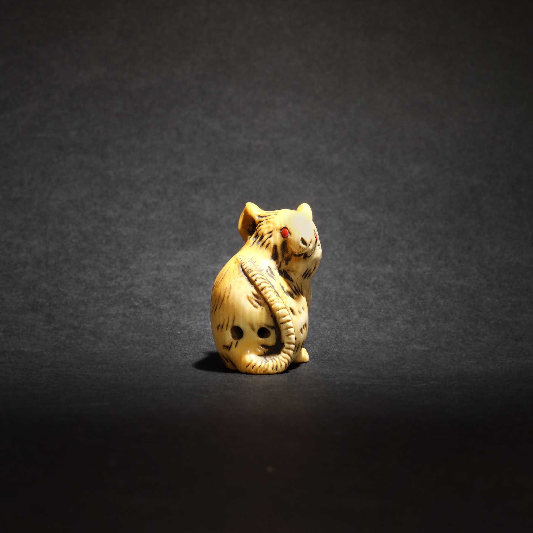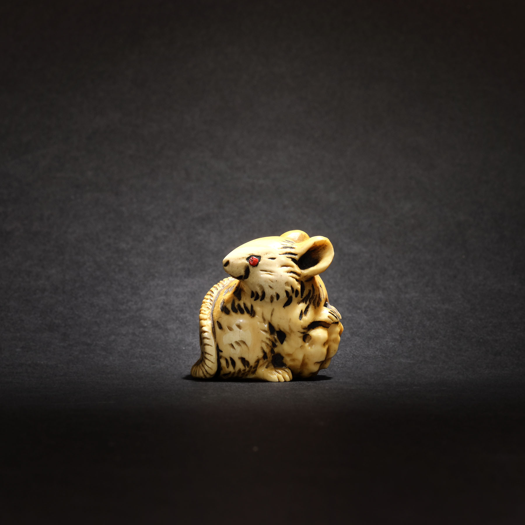 70. Netsuke din fildeș reprezentând un șoarece, semnat Kazumasa, perioada Meiji, Japonia, sec. XIX
