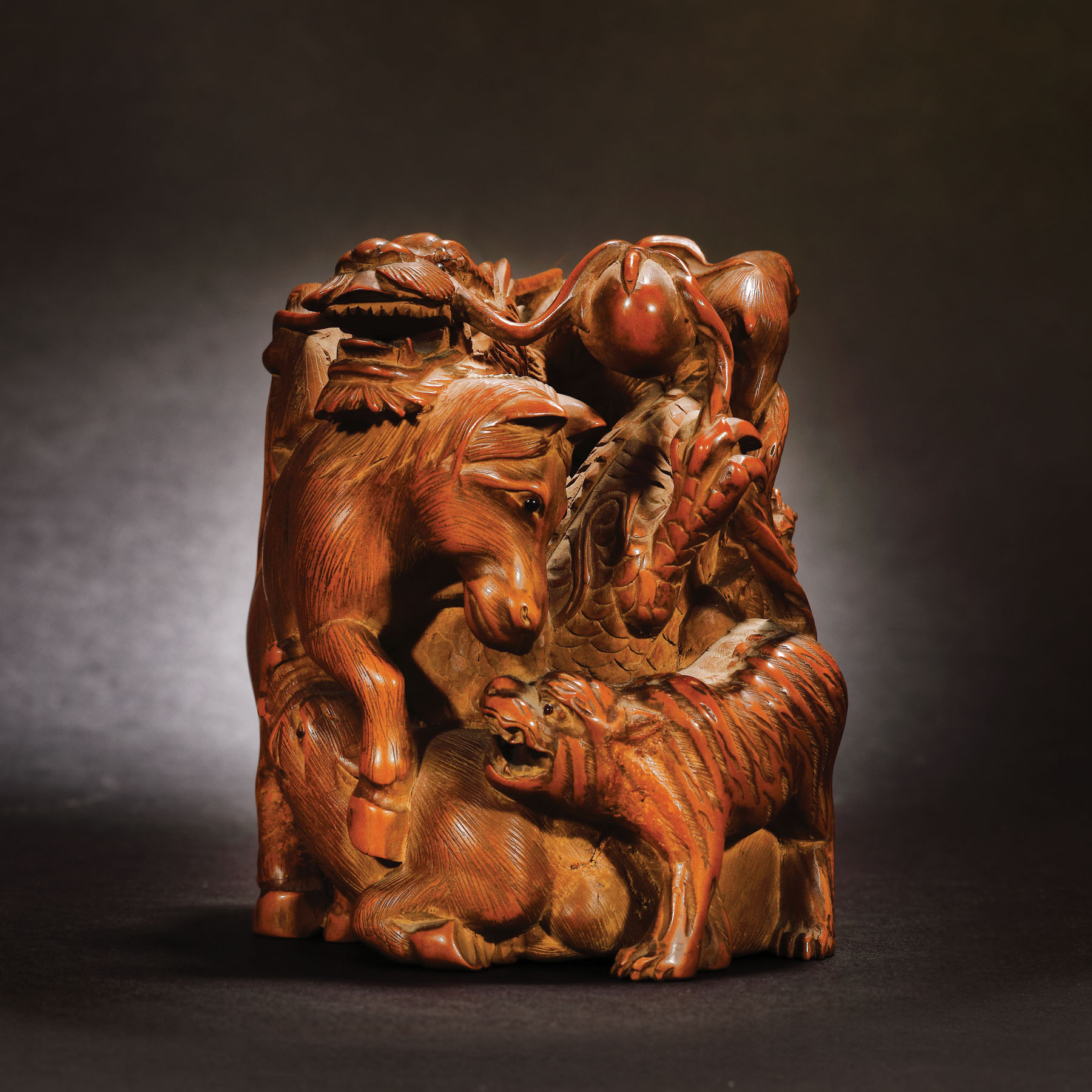 47. Okimono din lemn de huangyang mu, reprezentând animalele zodiacului, semnat Mitsukazu, perioada Meiji, Japonia, cca. 1900