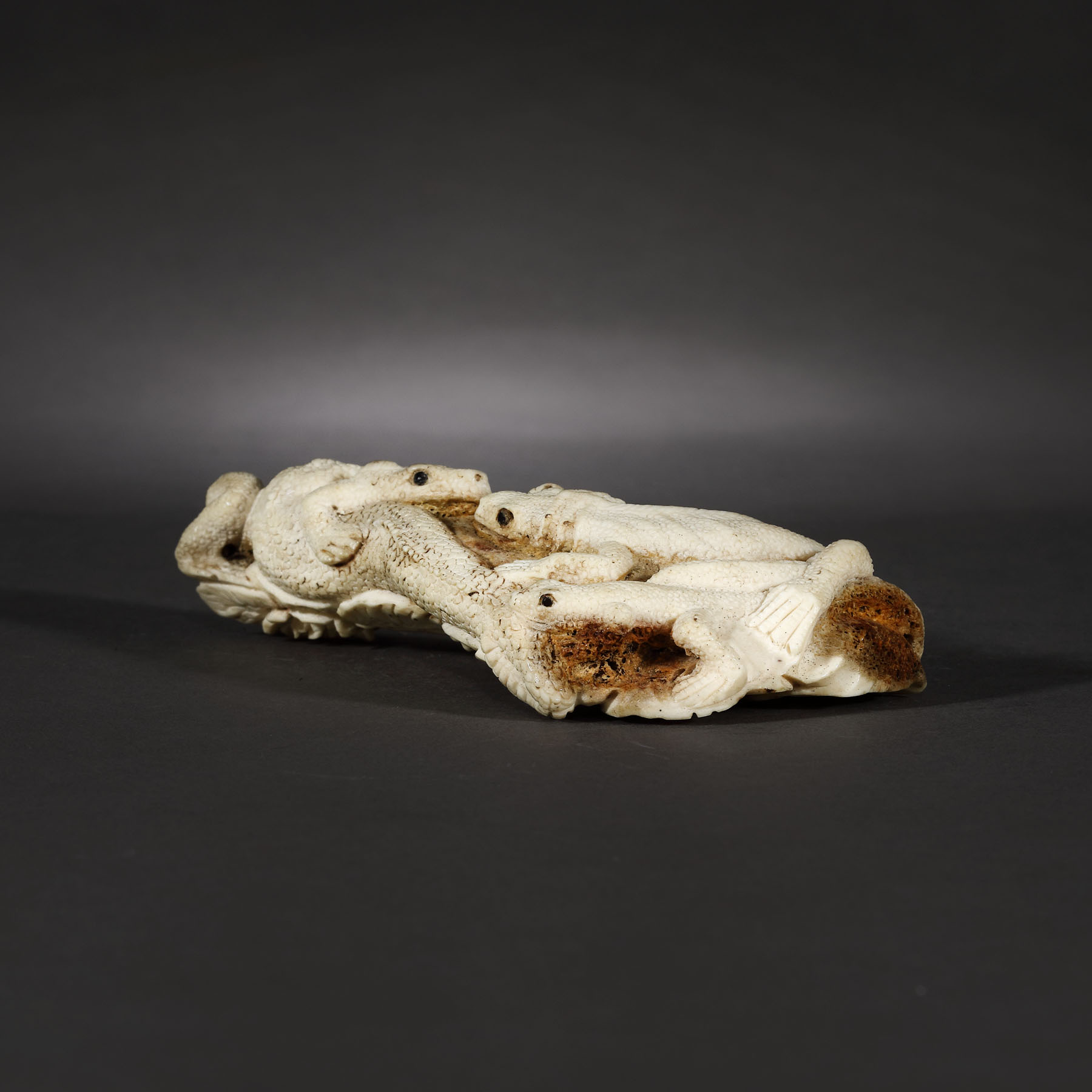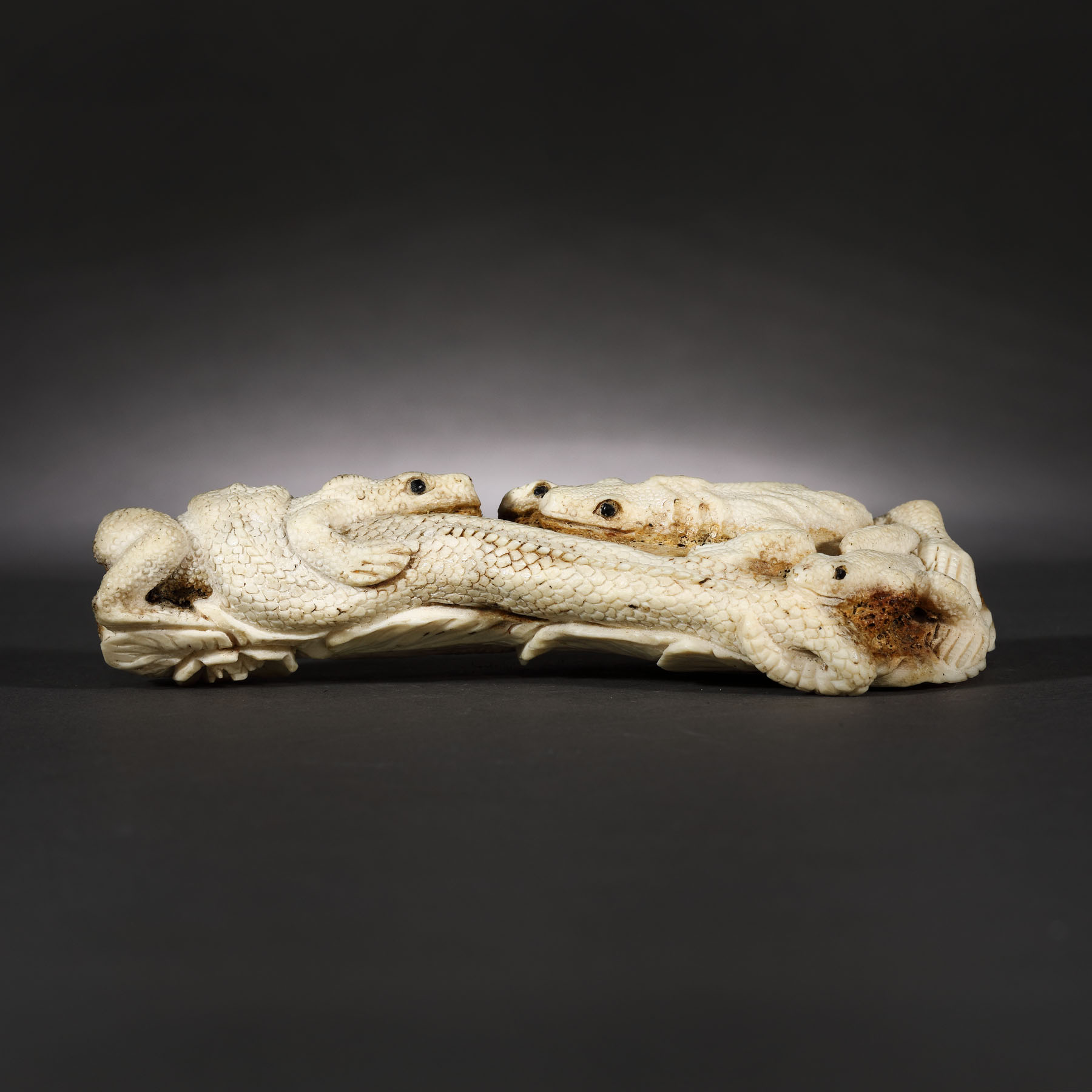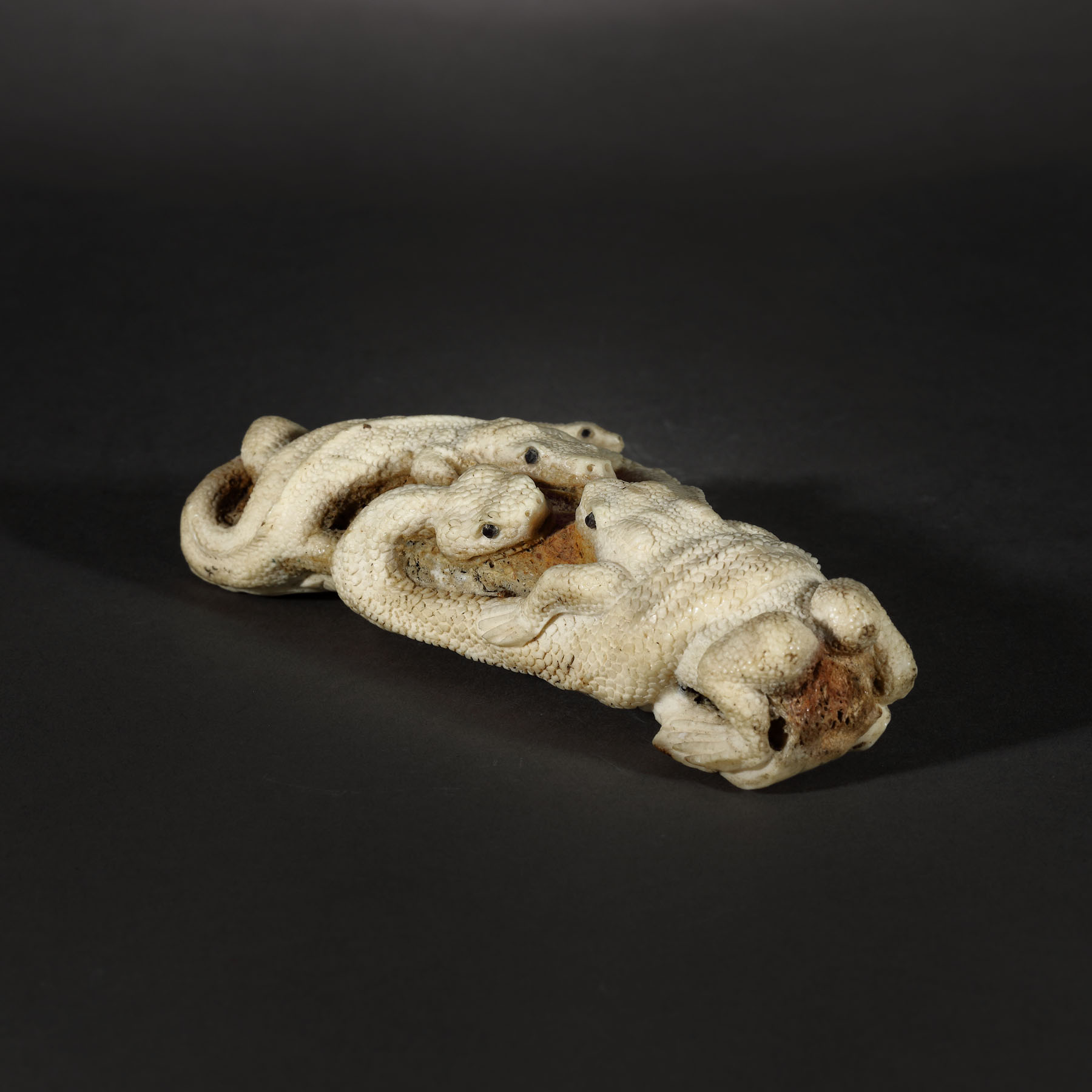 103. Okimono din os, reprezentând trei reptile încolăcite și un șarpe, perioada Edo, Japonia, sec. XVIII-XIX