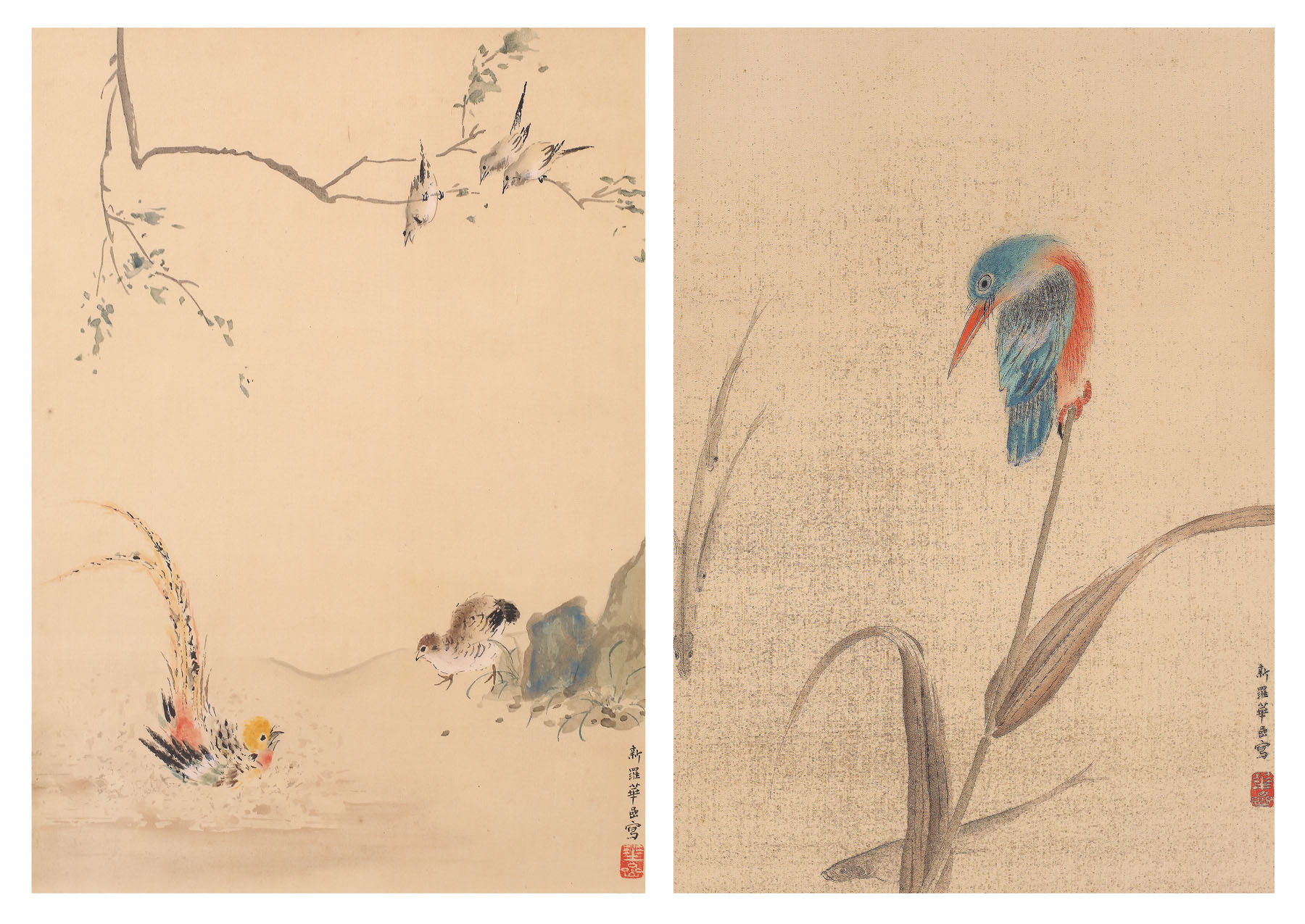A. semnat dreapta jos, cu sigiliul artistului, B. semnat dreapta jos, cu sigiliul artistului