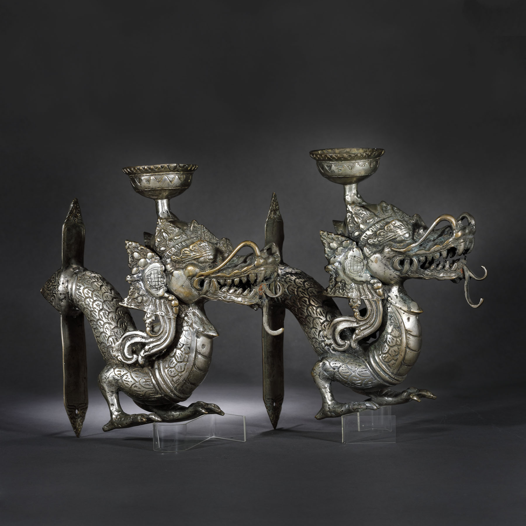 150. Pereche de sfeșnice dragon, perioada Republicană, China, cca. 1912-1949