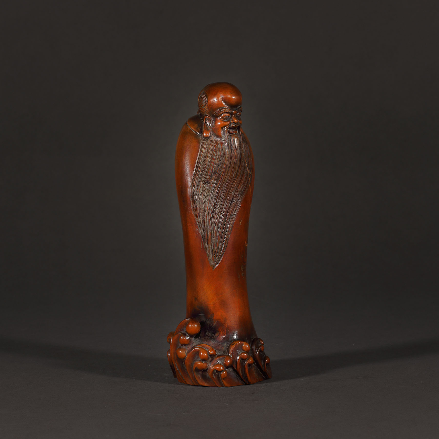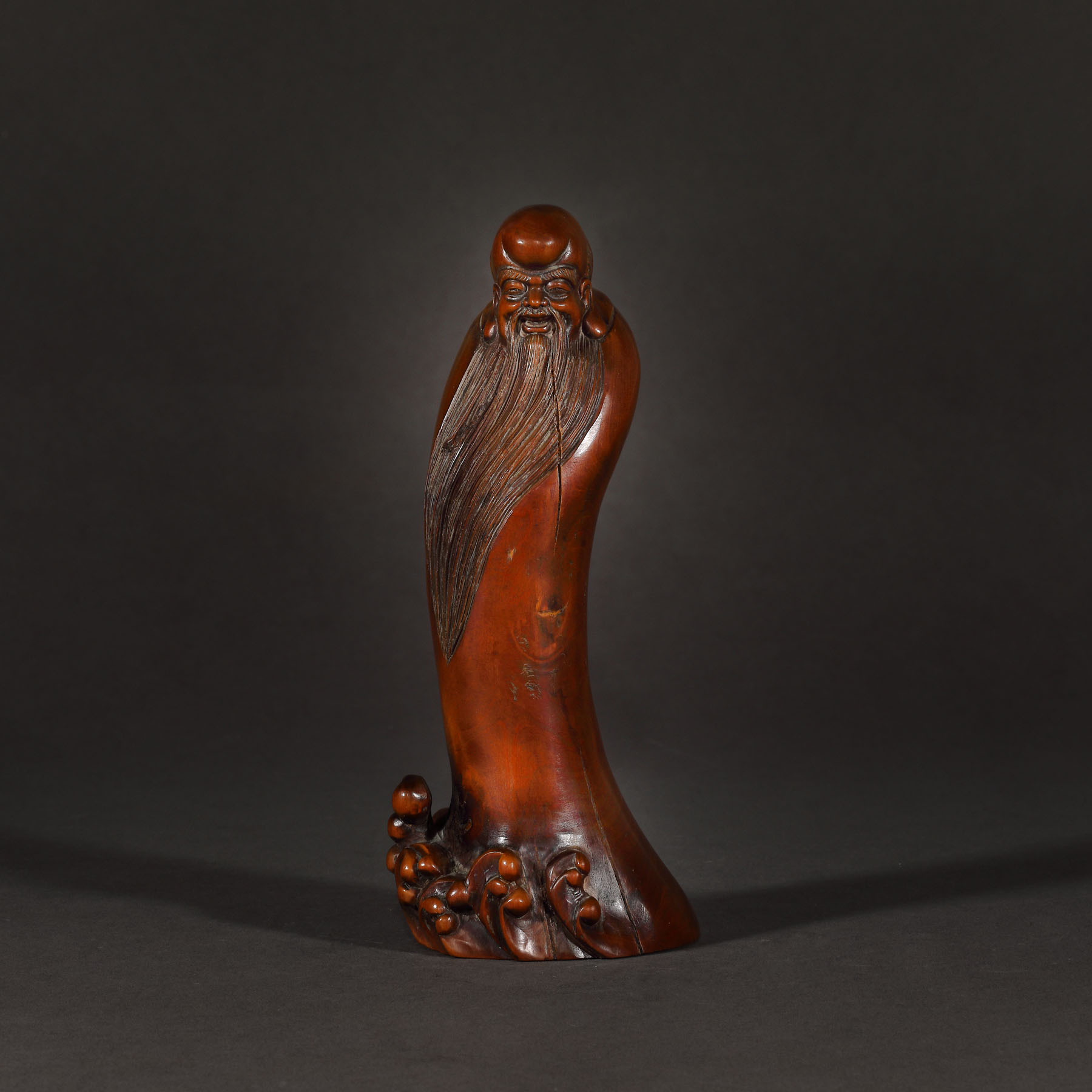 108. Sculptură din lemn exotic, reprezentând zeul longevității Shoulao, perioada dinastiei Qing, China, sec. XVIII-XIX