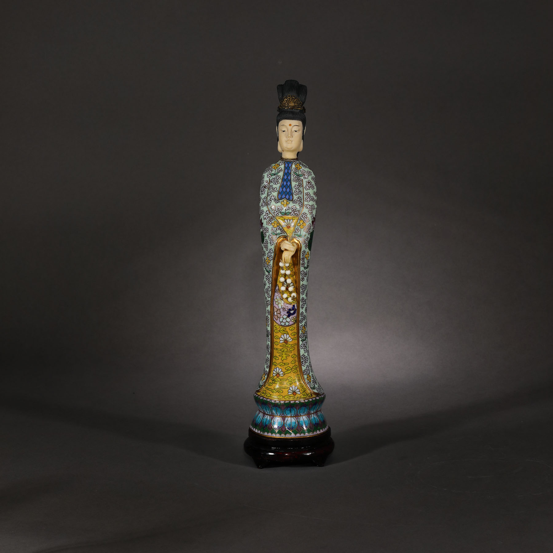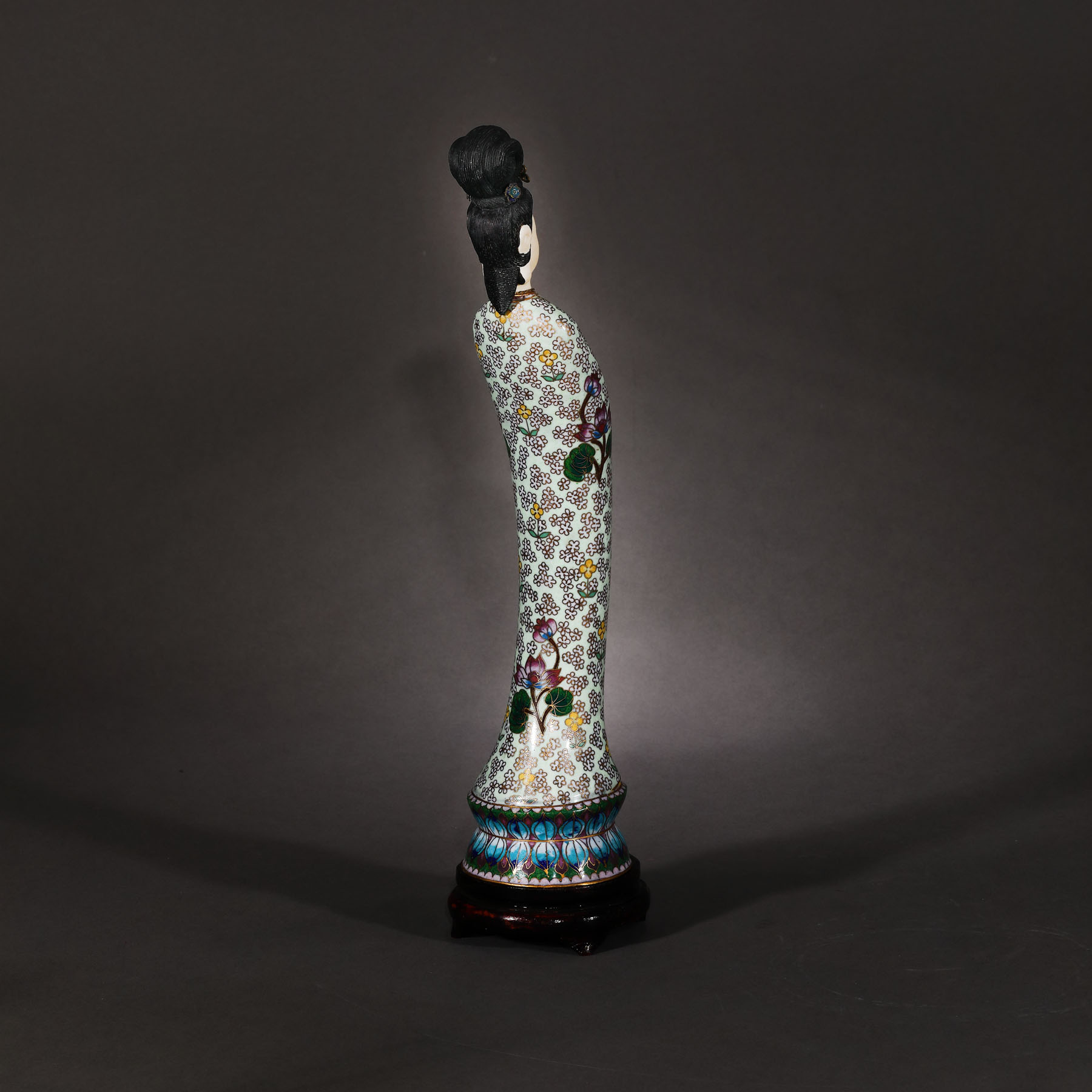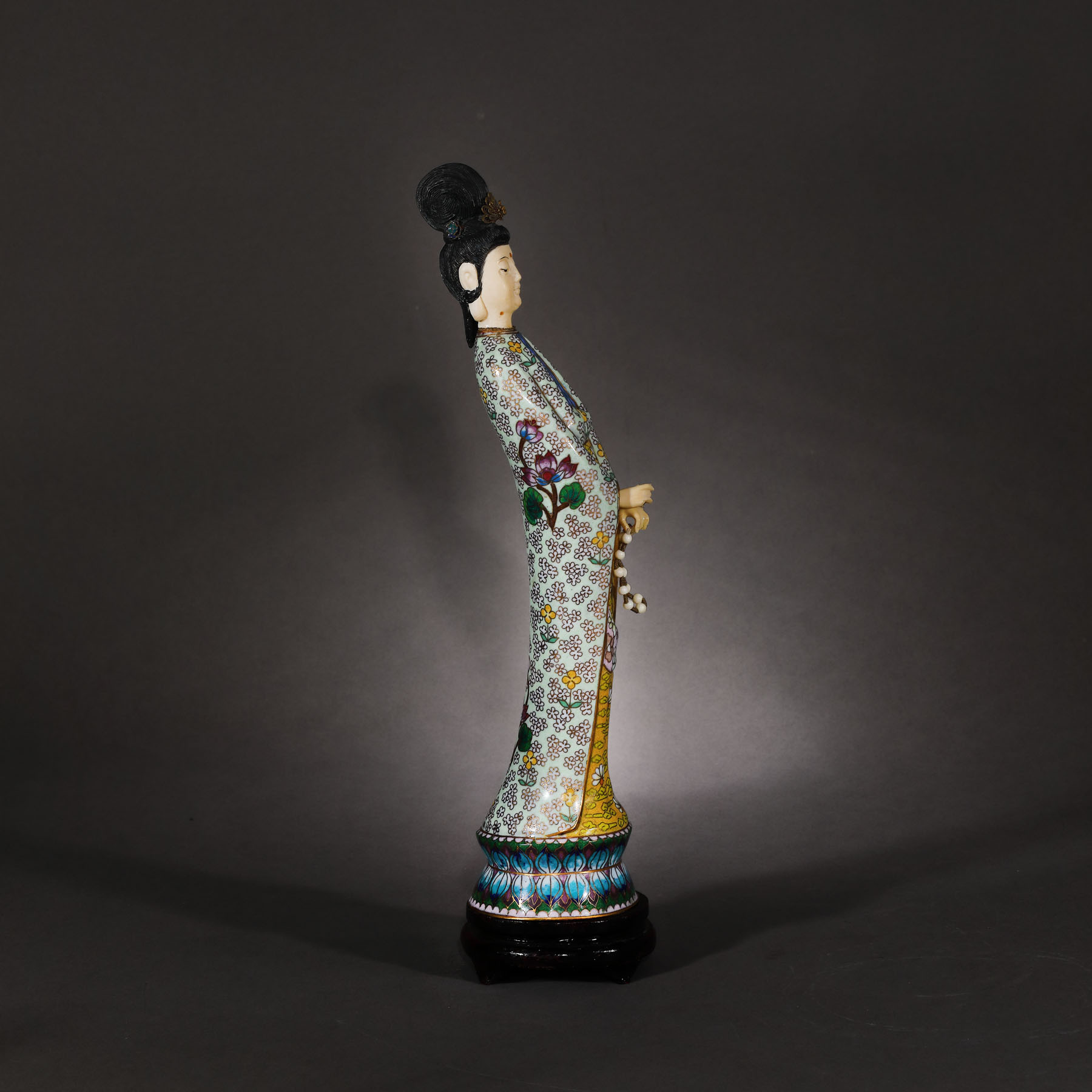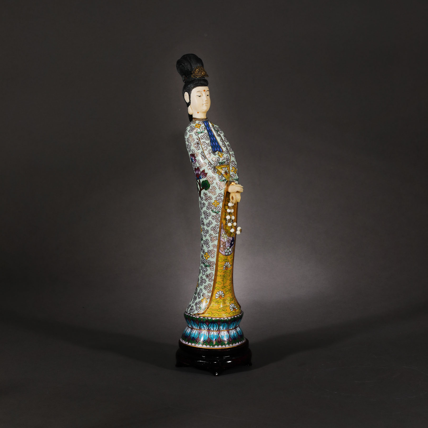 142. Sculptură reprezentând o femeie virtuoasă, din bronz și os, decorată în tehnică cloisonné, perioada Republicană, China, cca. 1912-1949