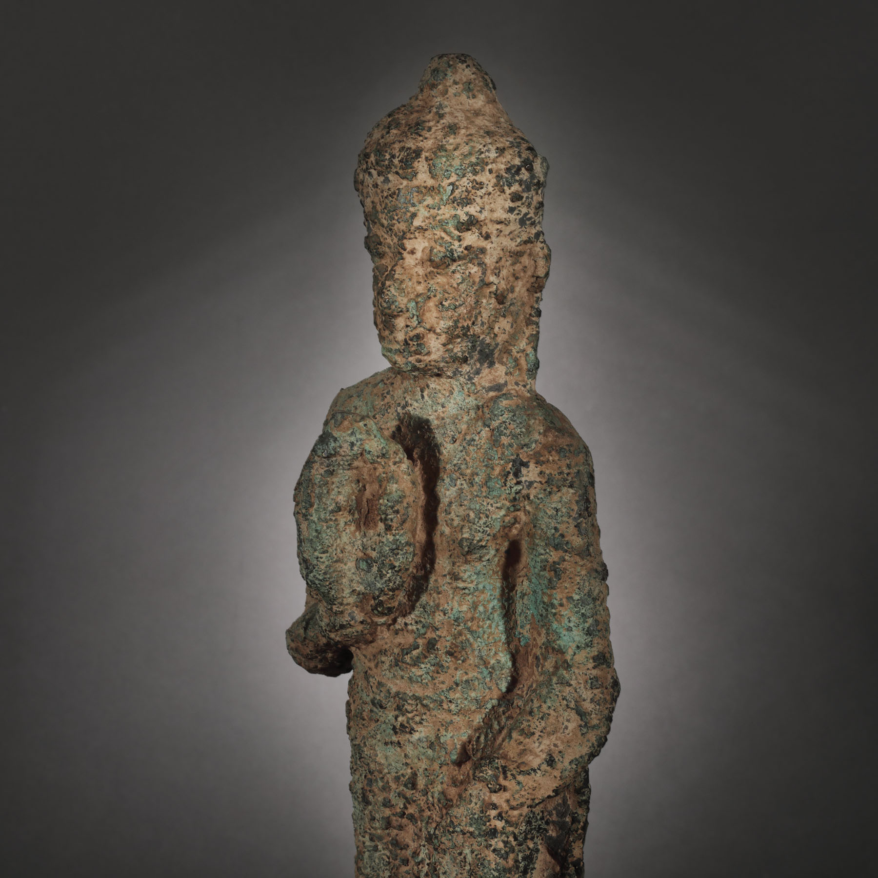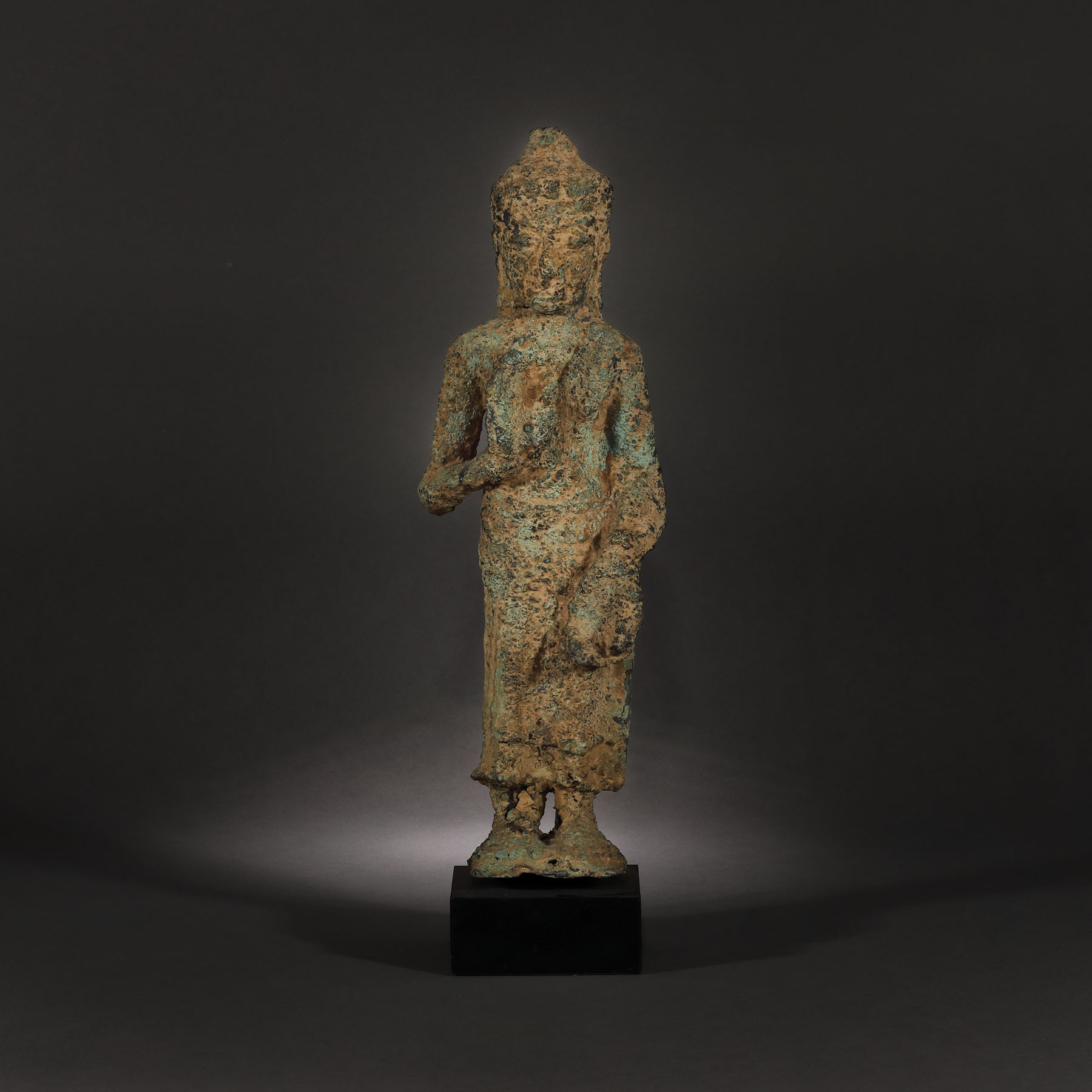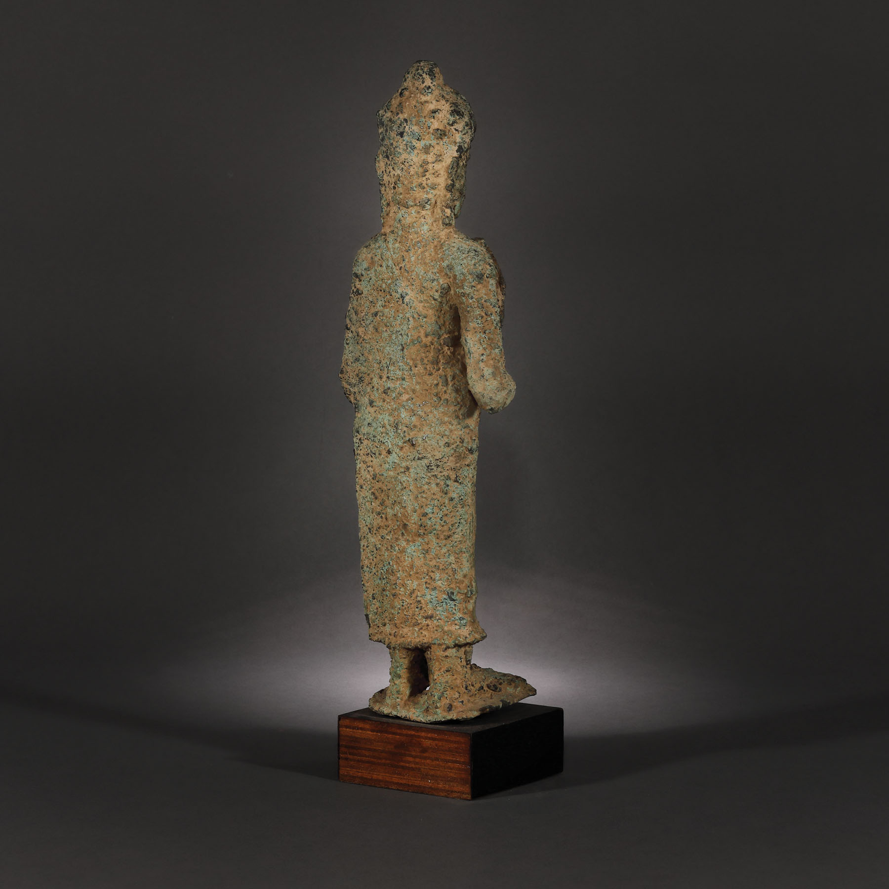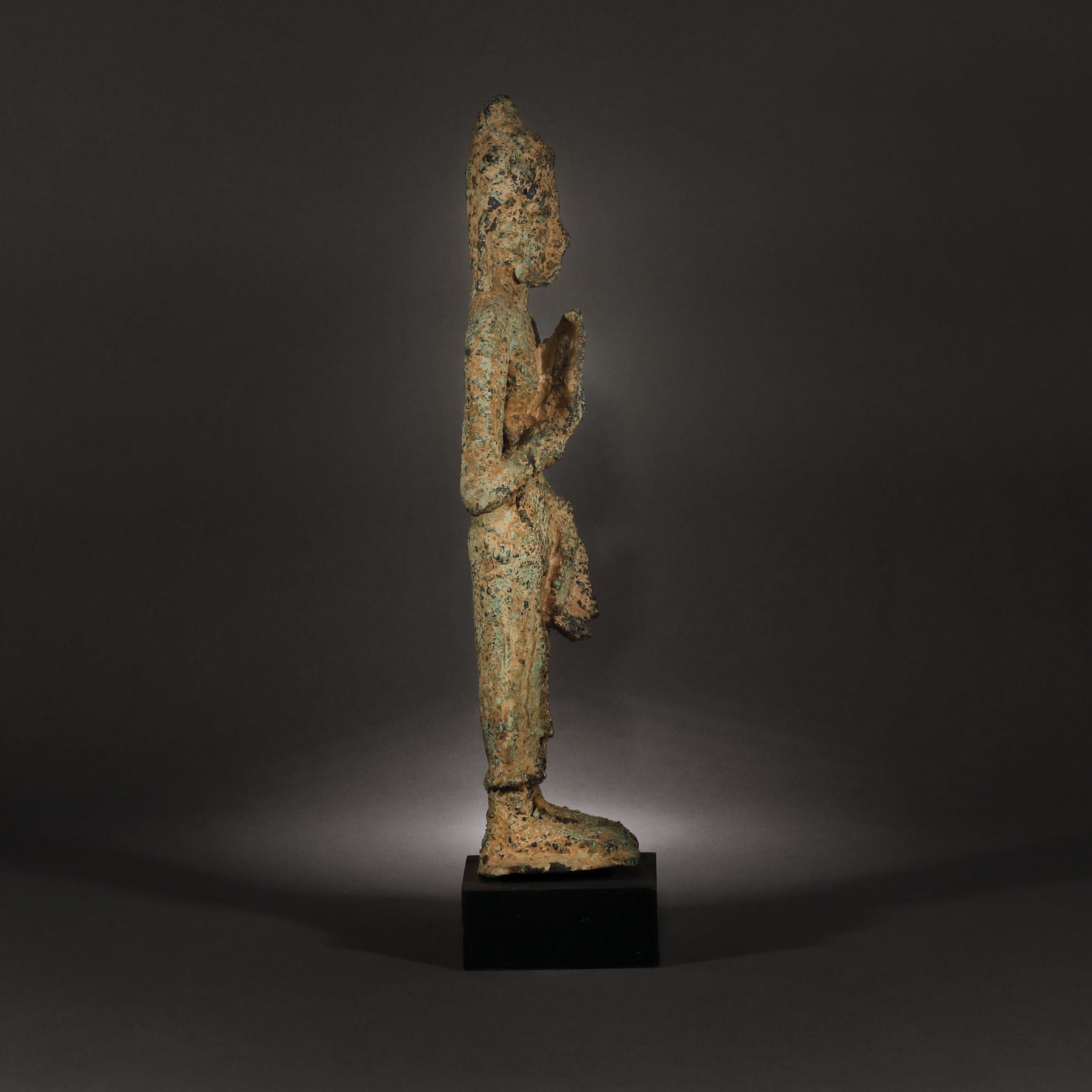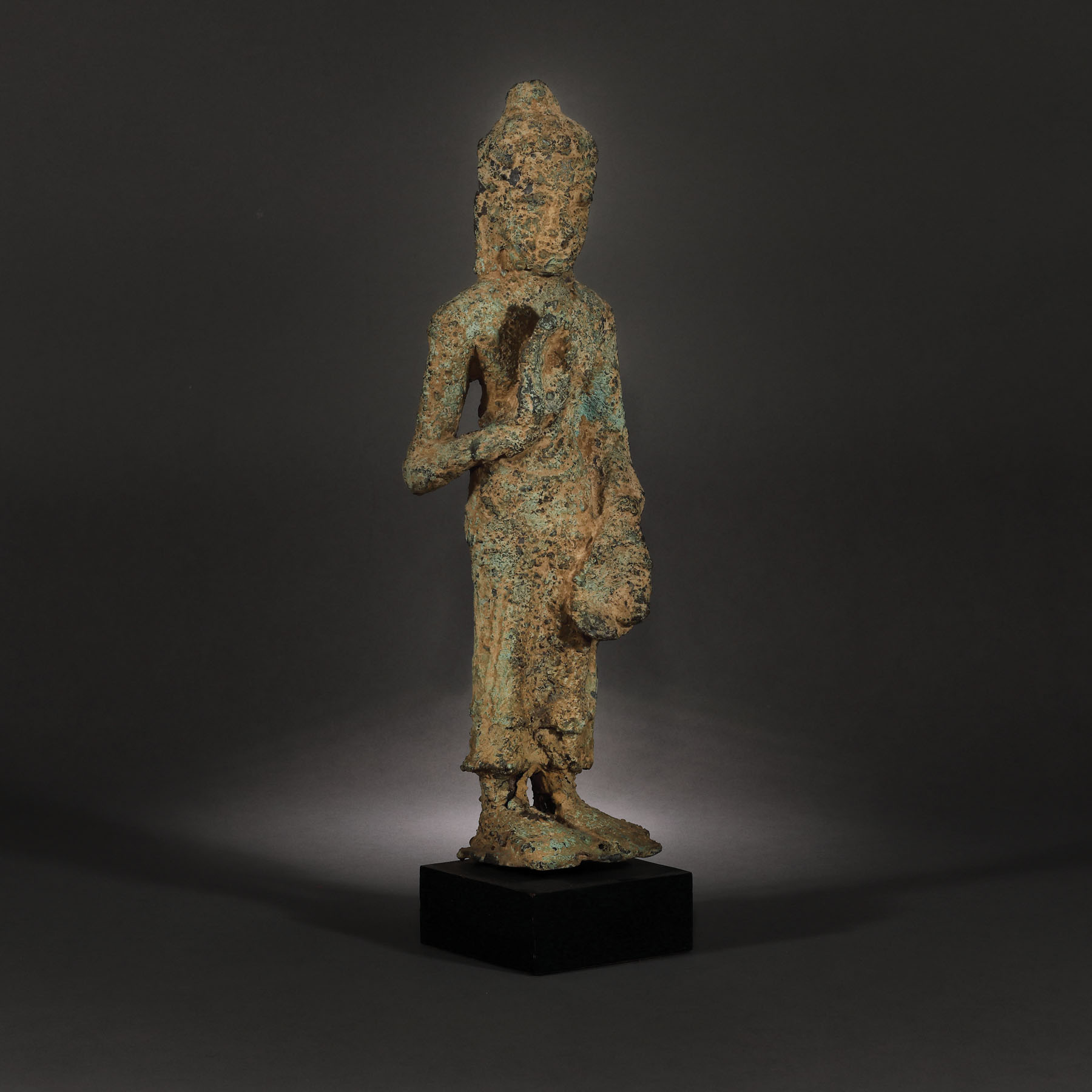 91. Statuetă Buddha din bronz, reprezentând un arhat, Cambodgia, sec. XIX