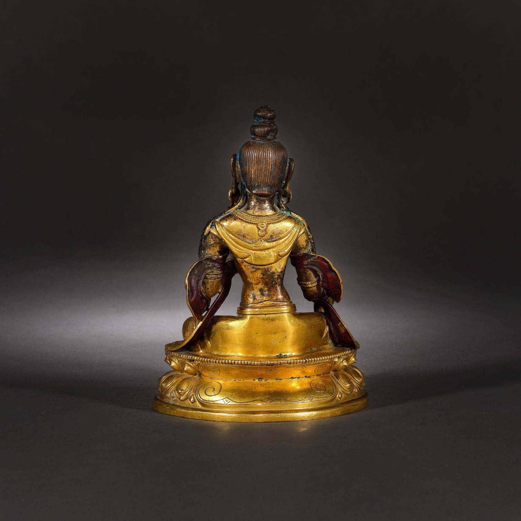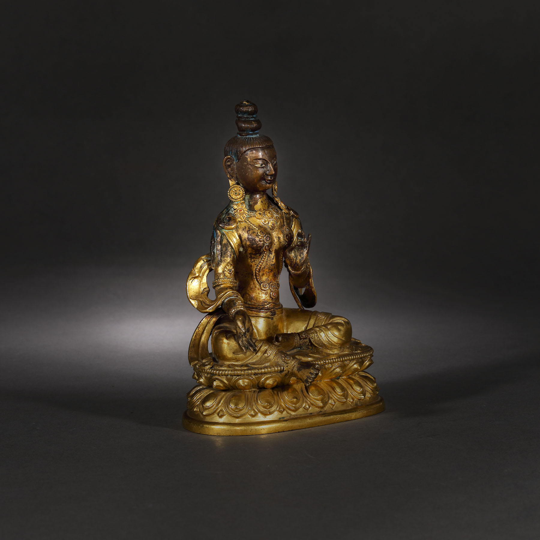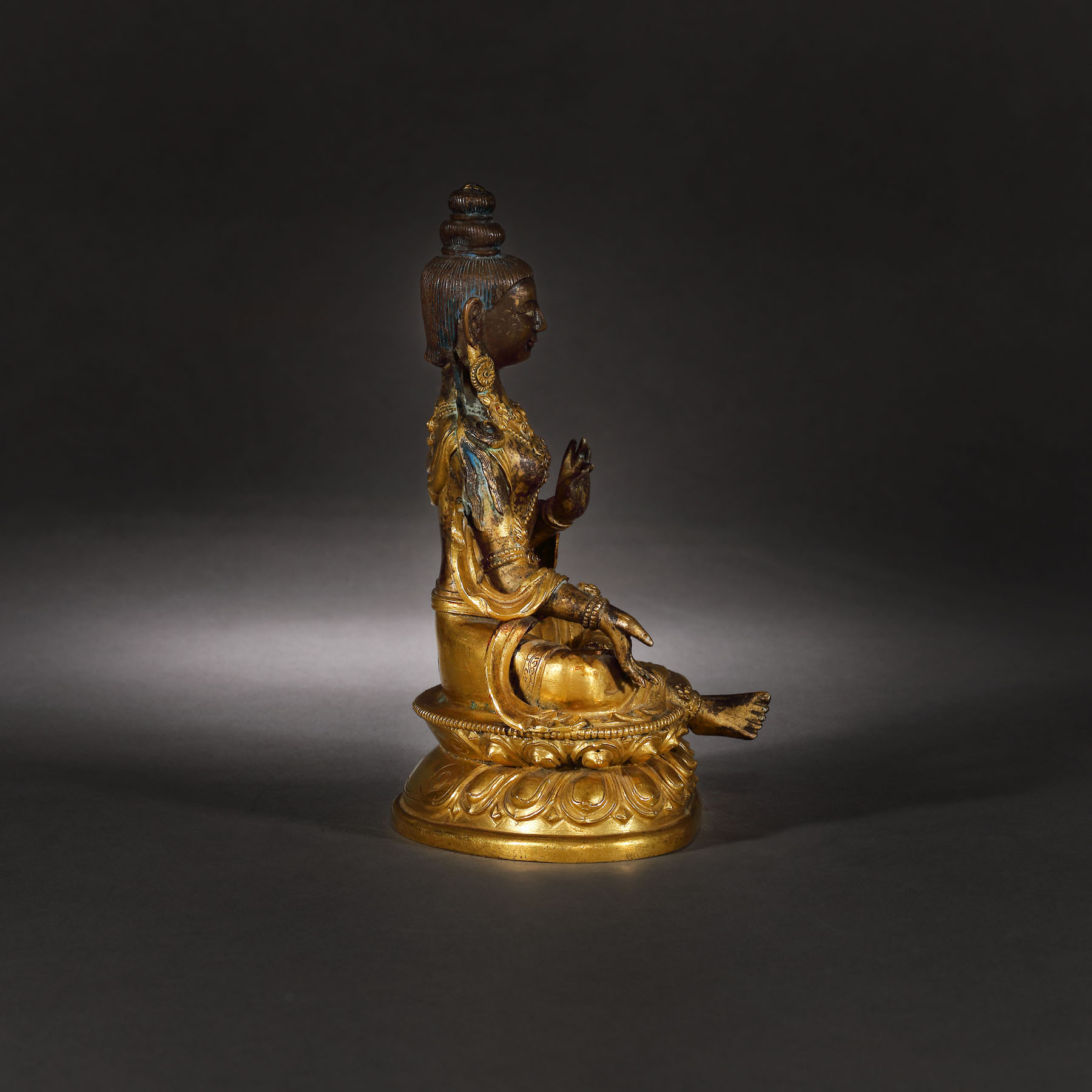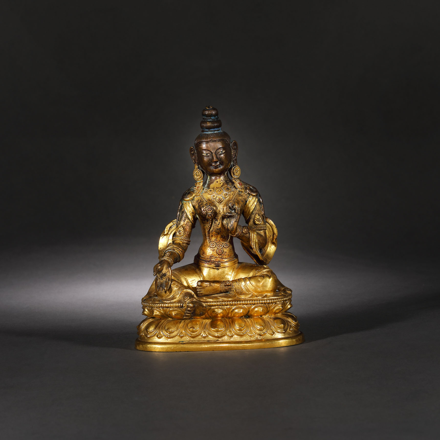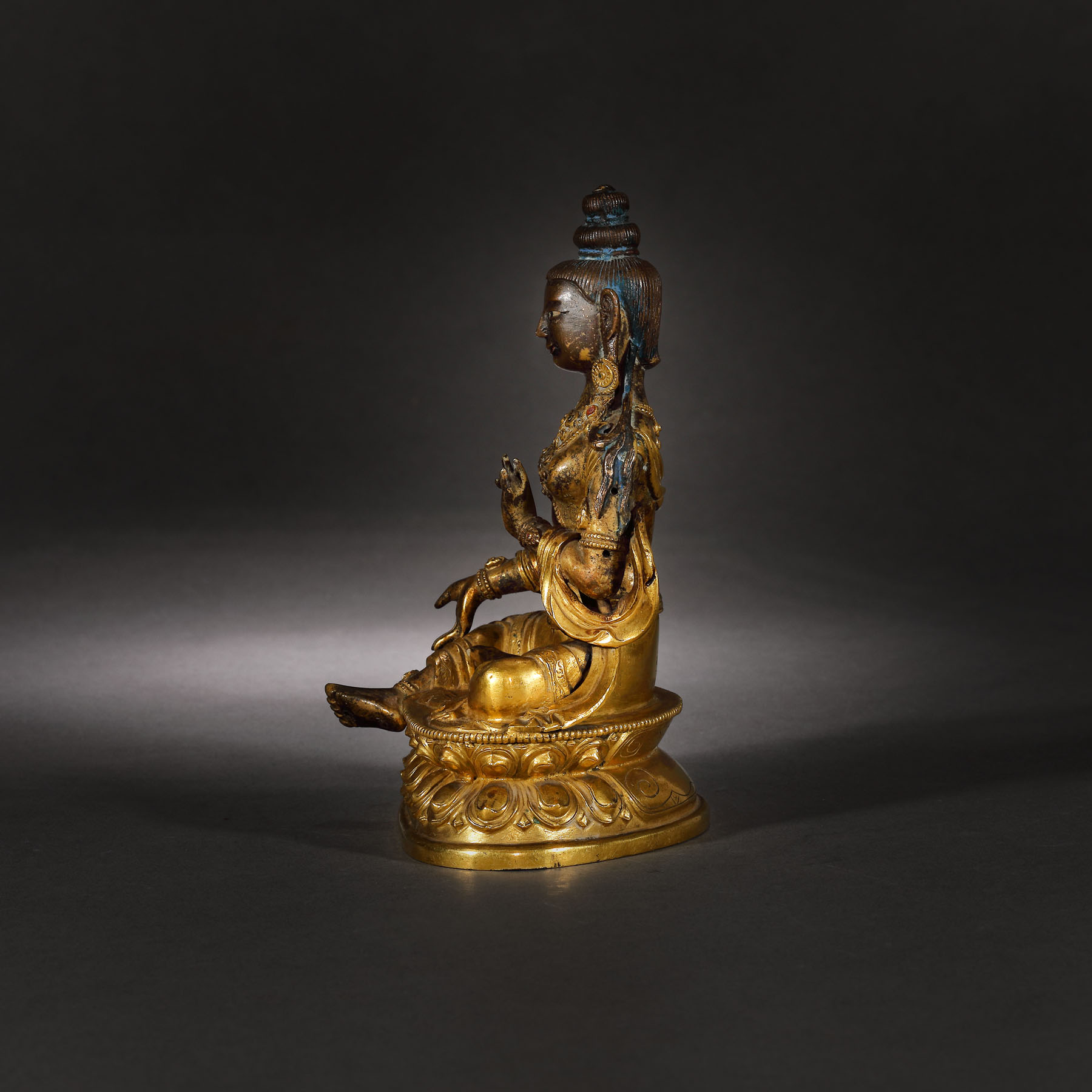 89. Statuetă din bronz aurit și pictat, reprezentând-o pe zeița Tara, Tibet, sec. XVIII