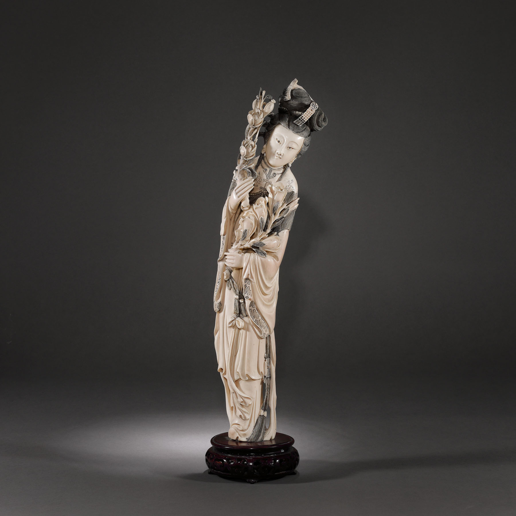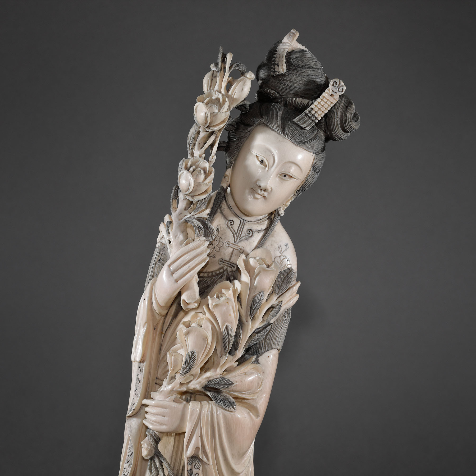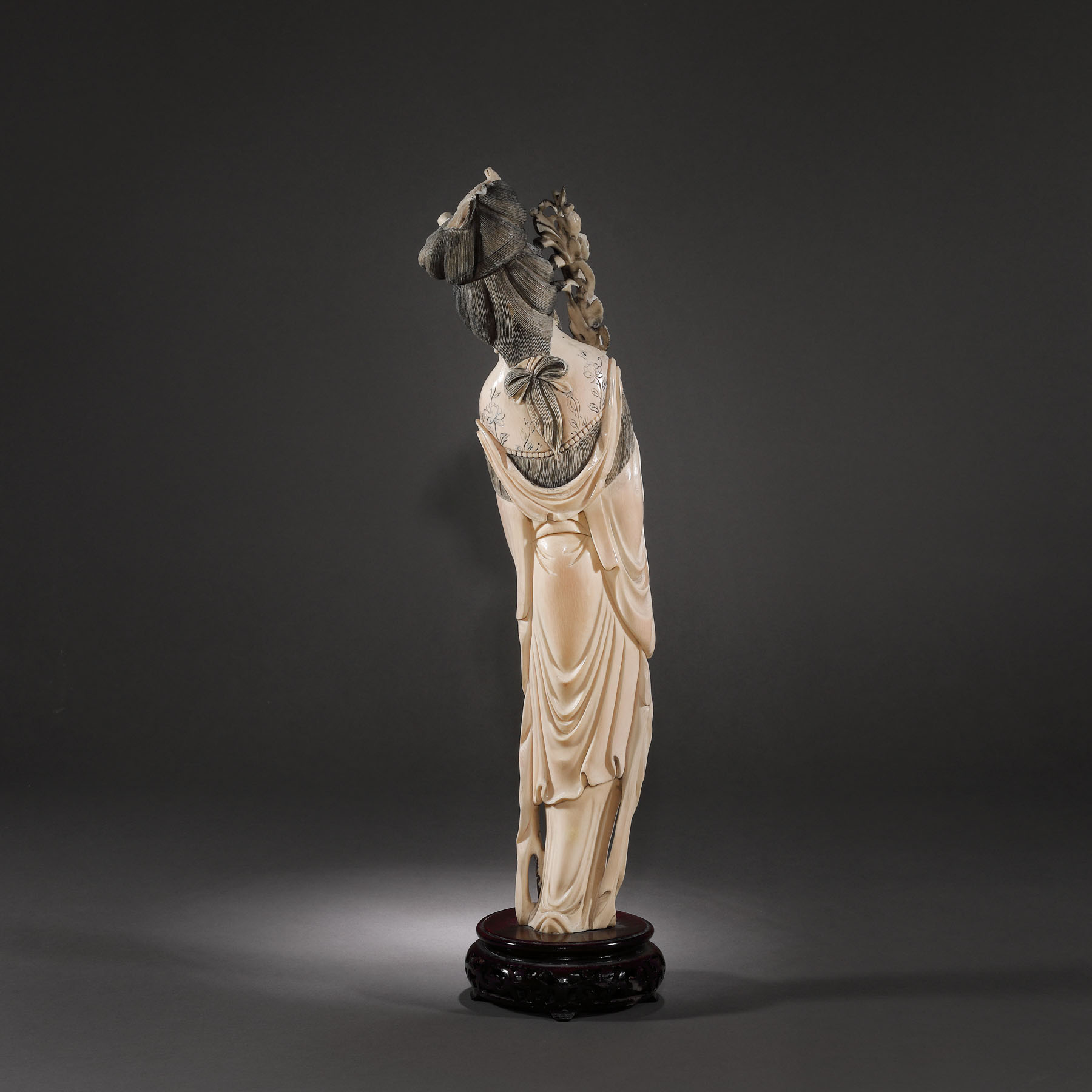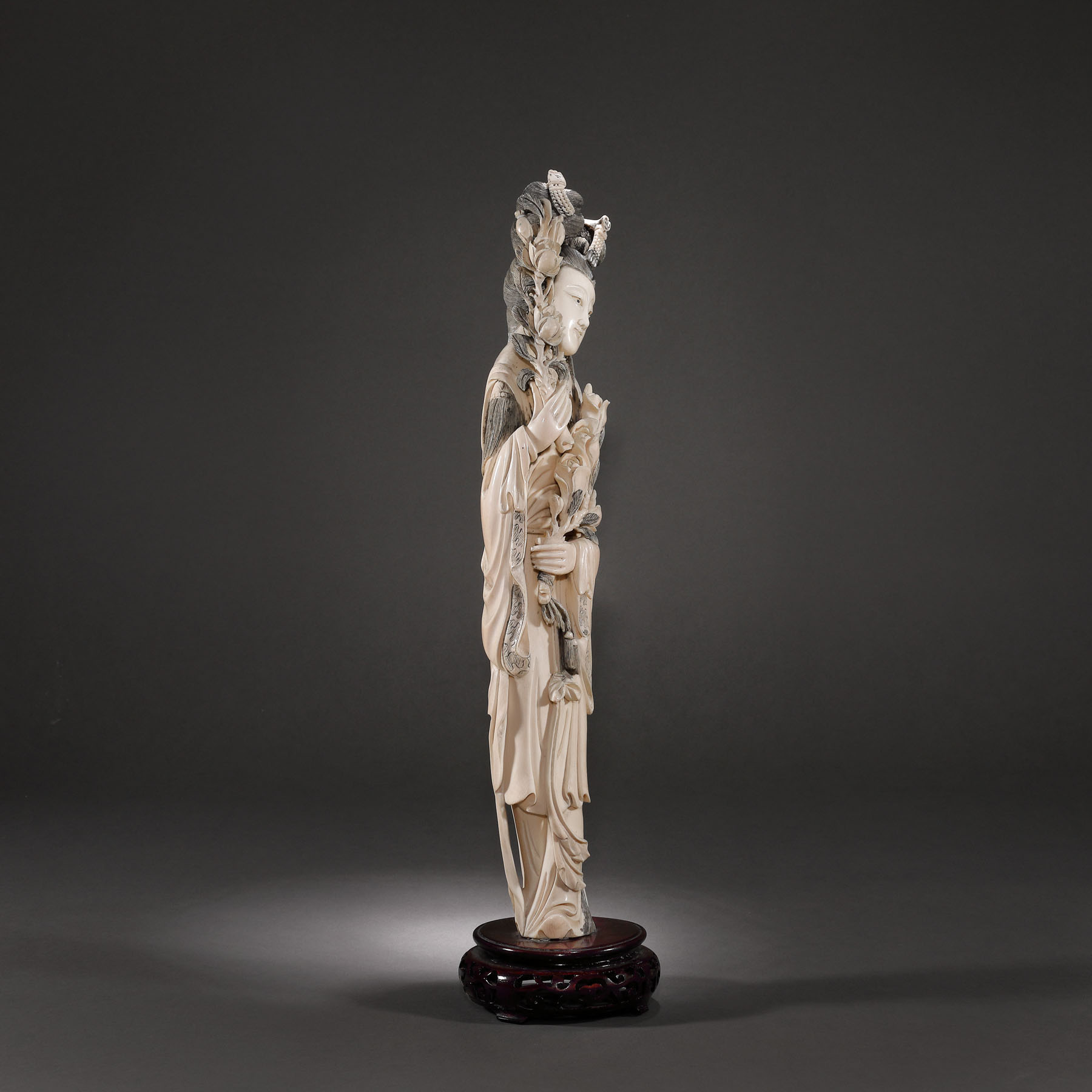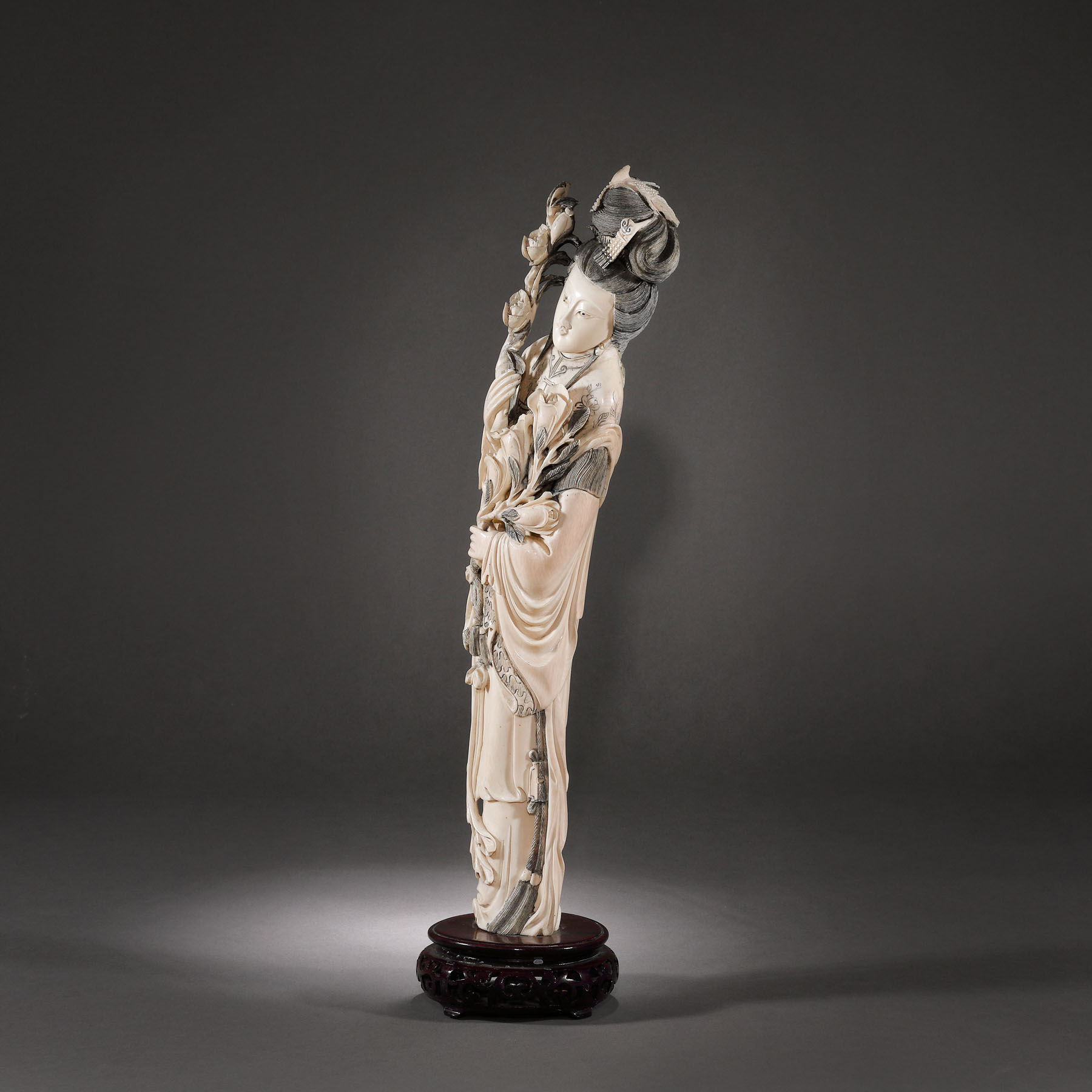 107. Statuetă din fildeș reprezentând o curtezană, perioada Qing, China, sec. XIX