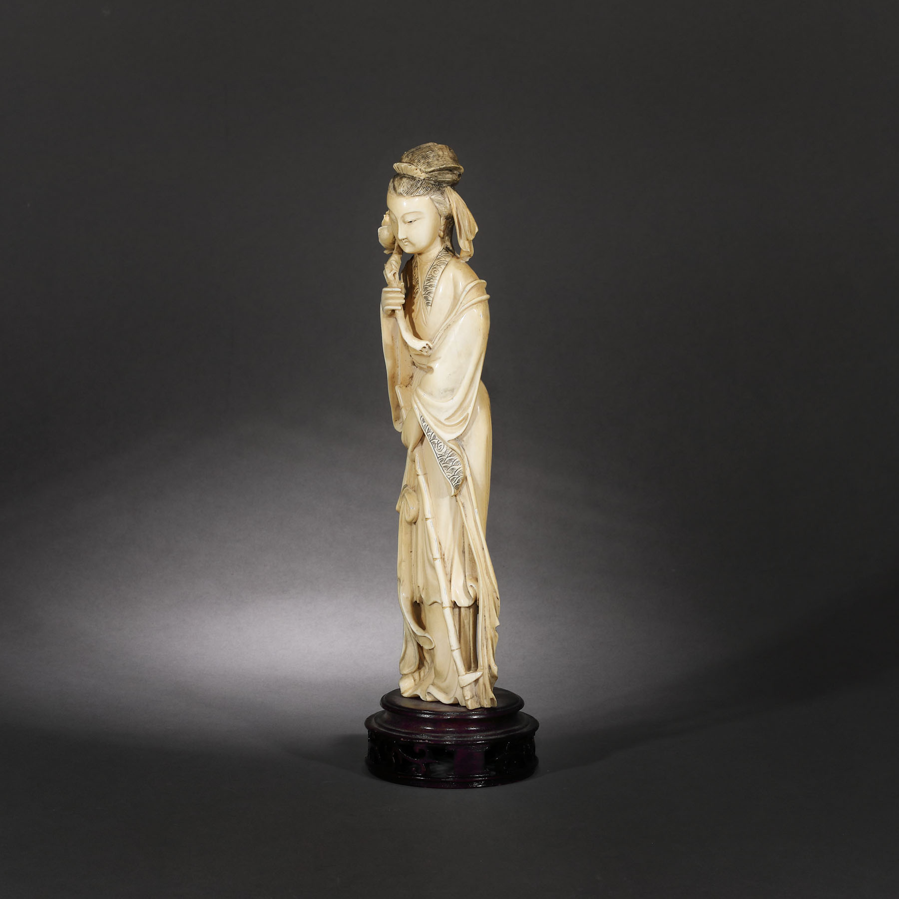 105. Statuetă din fildeș, reprezentând-o pe zeița Guanyin, sfârșitul dinastiei Qing, China, începutul sec. XX