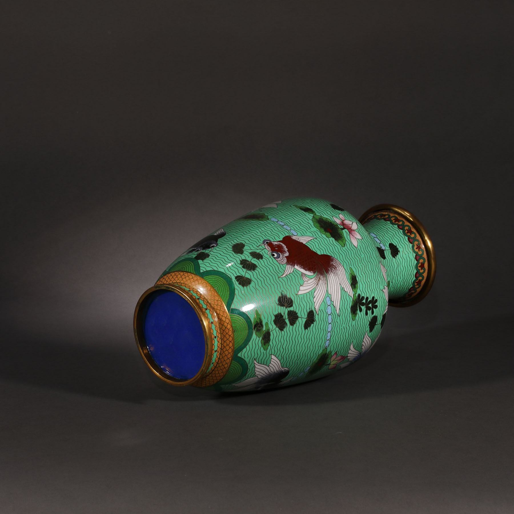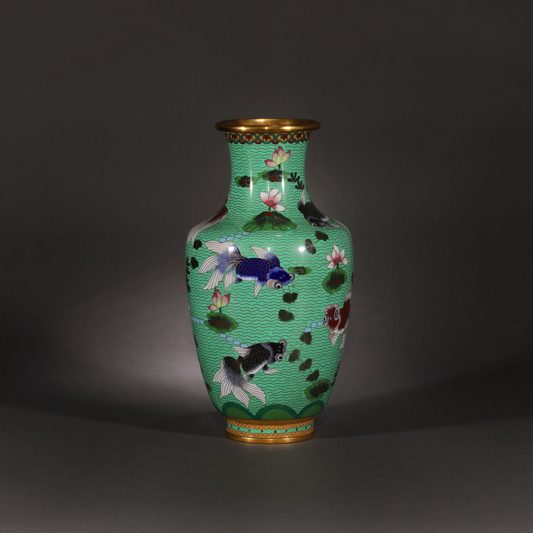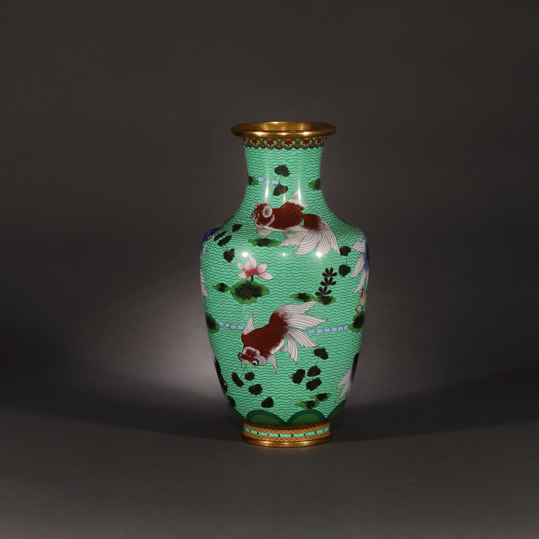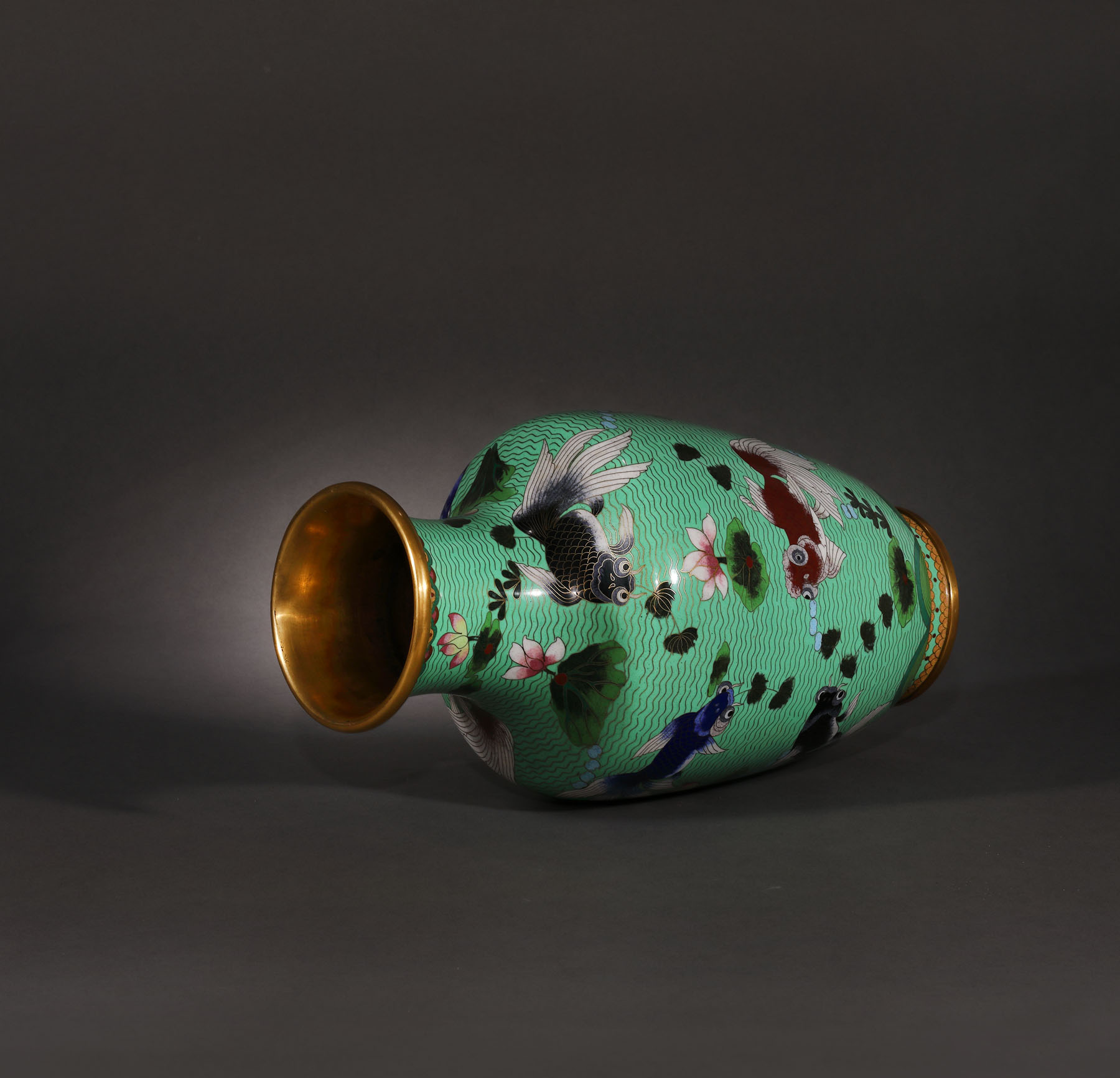 145. Vază din bronz, decorată cu pești koi, în manieră cloisonné, perioada Republicană, China, cca. 1912-1949