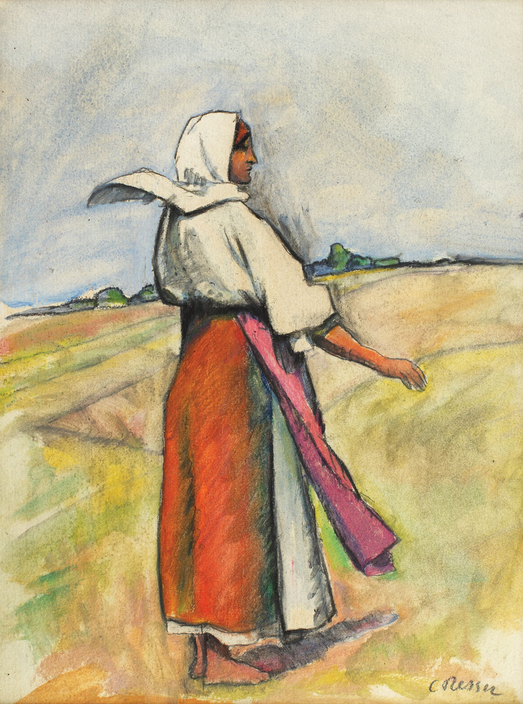 semnat dreapta jos, în creion, "C. Ressu"