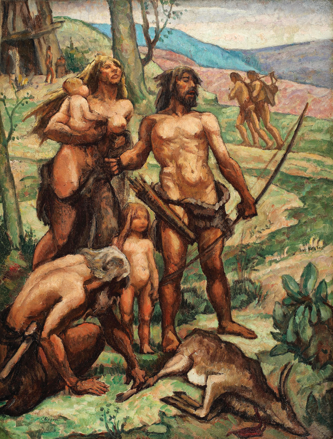 Uleiul de față este probabil una dintre dintre cele mai inedite compoziții realizate de Camil Ressu pe întreaga durată a carierei sale. Folosind o structură compozițională tipică lui, Ressu își imaginează o scenă inedită, renuntând pentru o clipă la celebrele scene cu țărani. Factorul uman este la fel de prezent, însă, pornind cu un spirit ludic, reinterpretează viața primilor oameni, punând în scenă o altfel de familie. Începuturile umanității sunt surprinse în cea mai celebră situație ce definește structura socială a omului în preistorie - statutul vânător-culegător. Putem presupune că opera a fost realizată cel mai probabil la comandă, dat fiind raritatea acestui tip de imagine în întregul corp plastic realizat de Ressu.