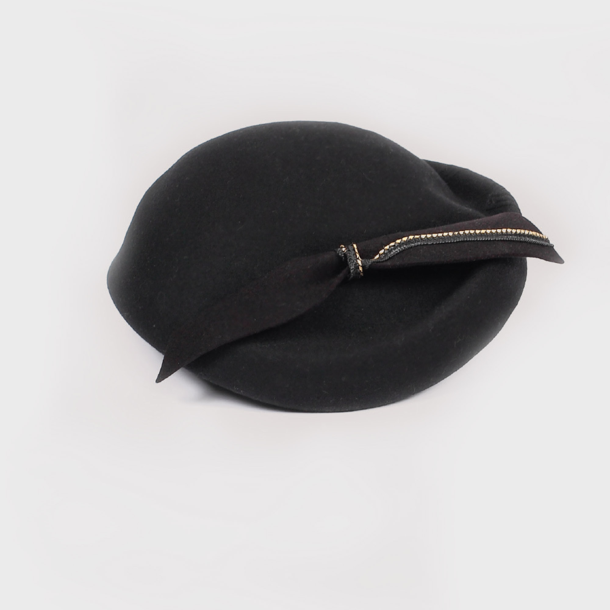 89. Pălărie ornată cu fundă cu model auriu, prima jumătate a sec. XX