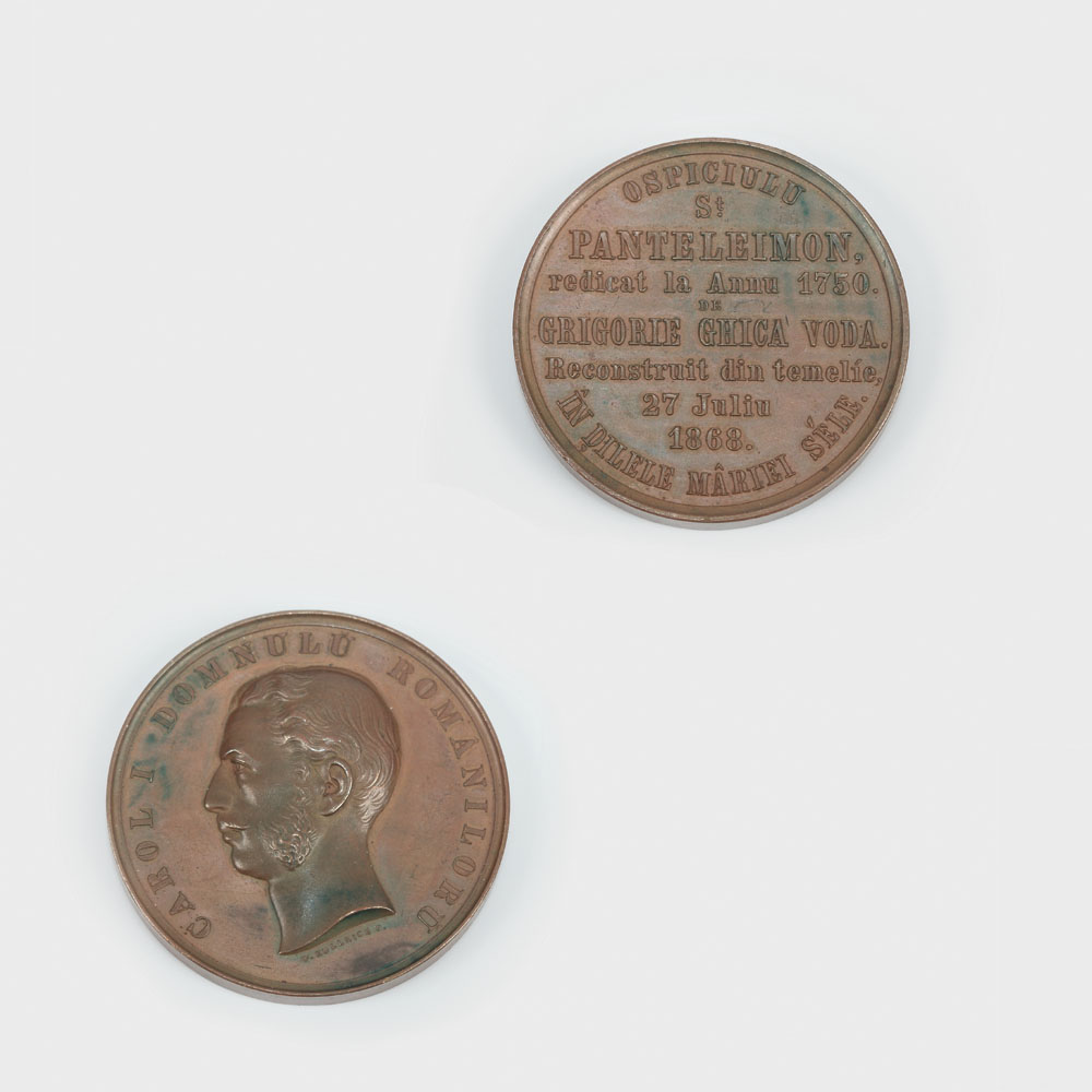 473. Medalie bătută cu ocazia reconstruirii ospiciului Pantelimon, București, 1868
