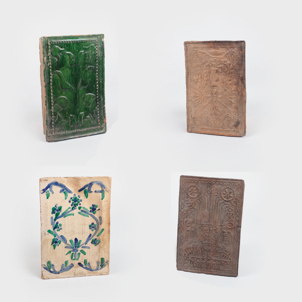 Cele patru cahle sunt confecționate manual din argilă de bună calitate, arsă în cuptor și decorate cu bogate motive vegetale stilizate, smălțuite sau în relief. Aveau o funcțiune practică dar și una decorativă.