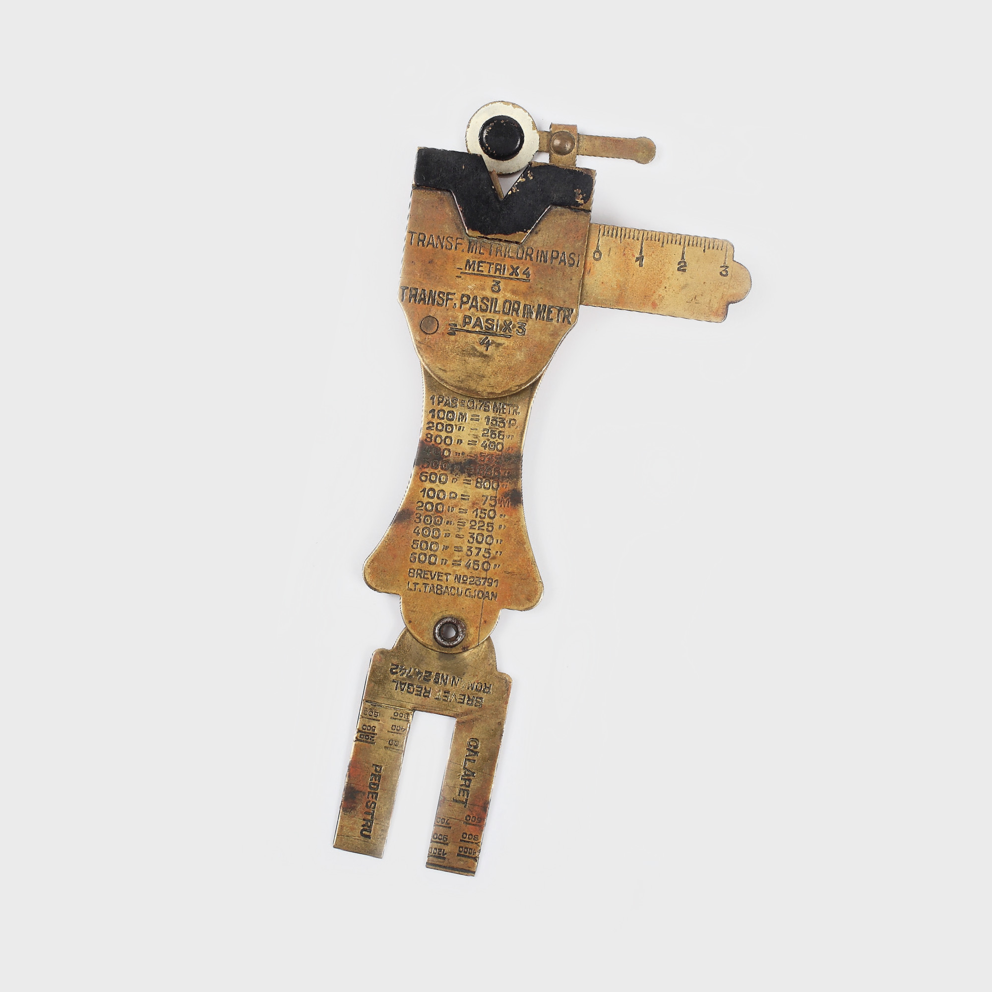 161. Dispozitiv românesc, de transformare a numărului de pași în metri, anii '70