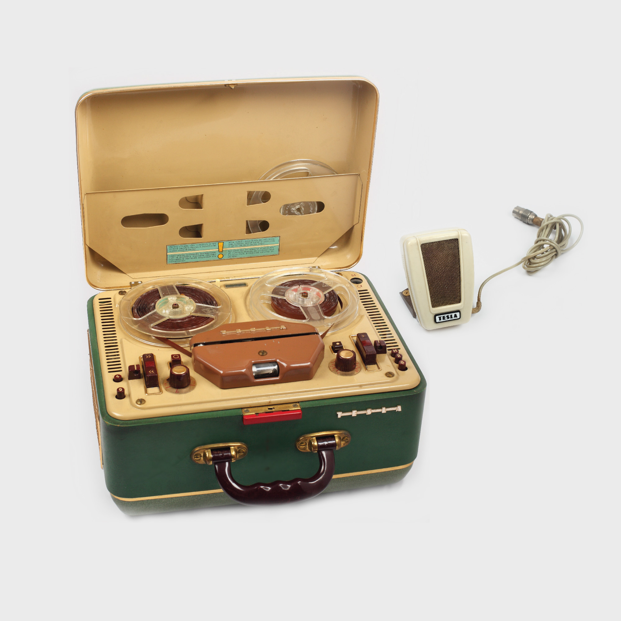 155. Magnetofon Tesla Sonet Duo, cu microfon auxiliar, Cehoslovacia, anii '60