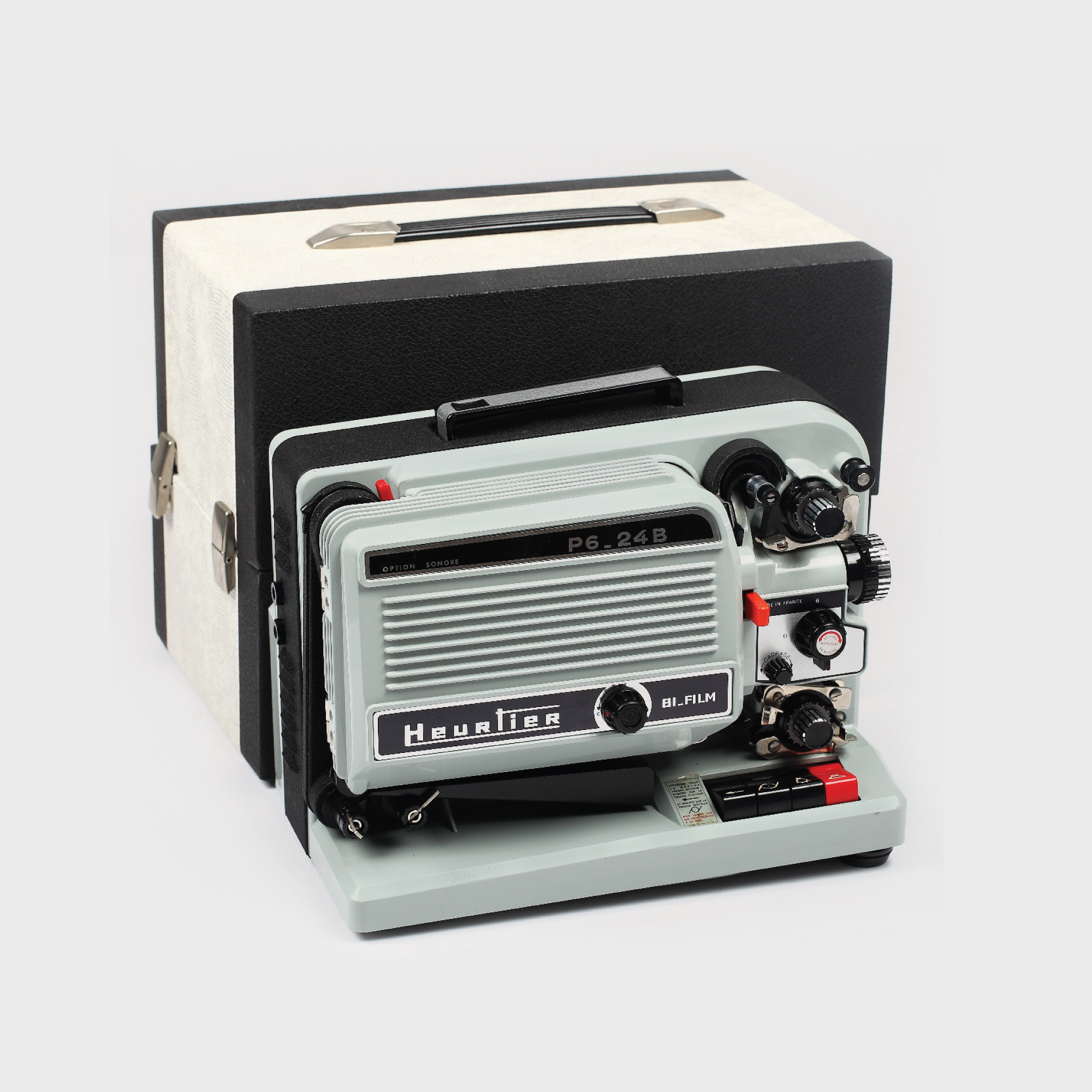 150. Proiector Heurtier P6-24B Bi-Film pentru role de film de 8mm, în cutia originală, anii '60