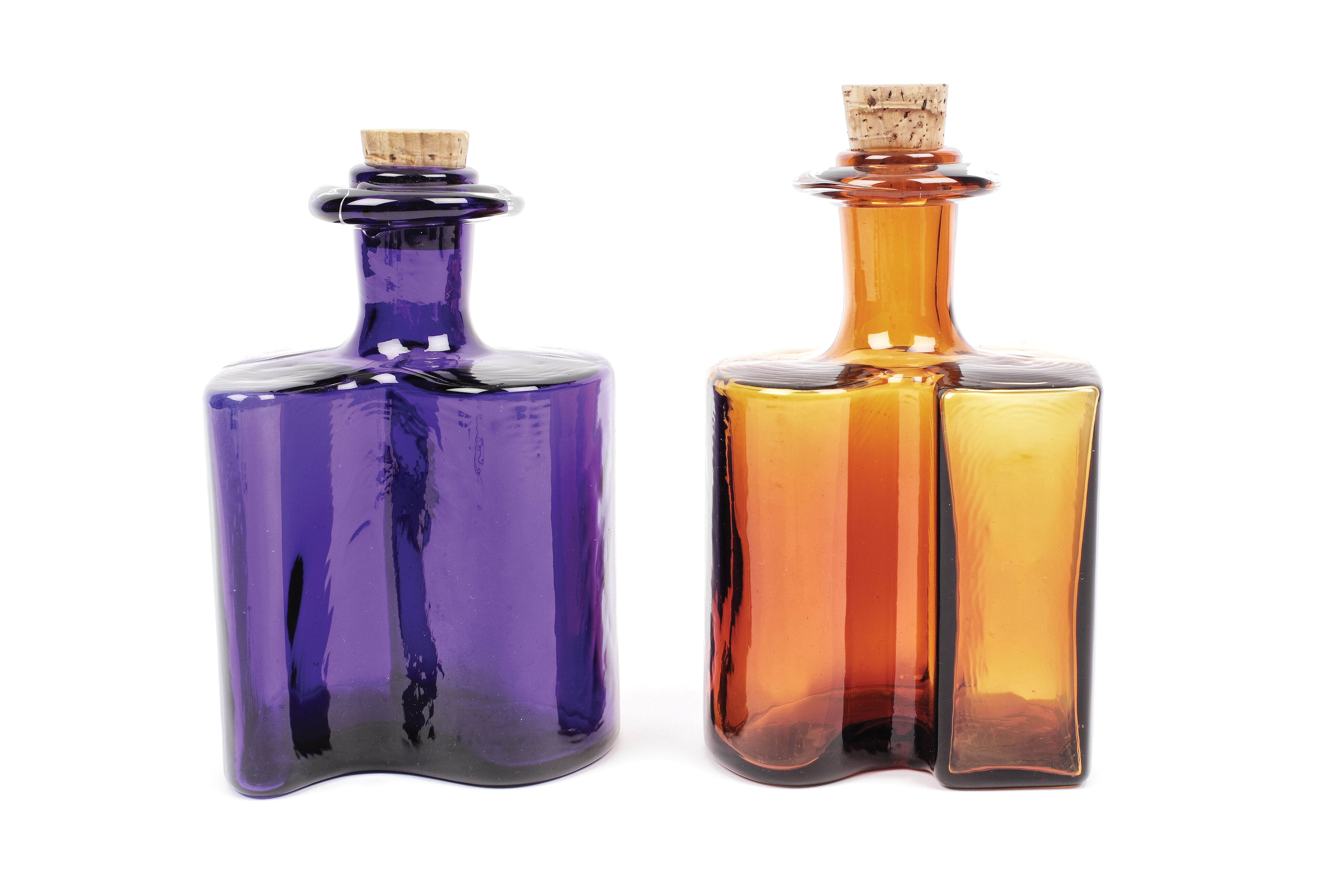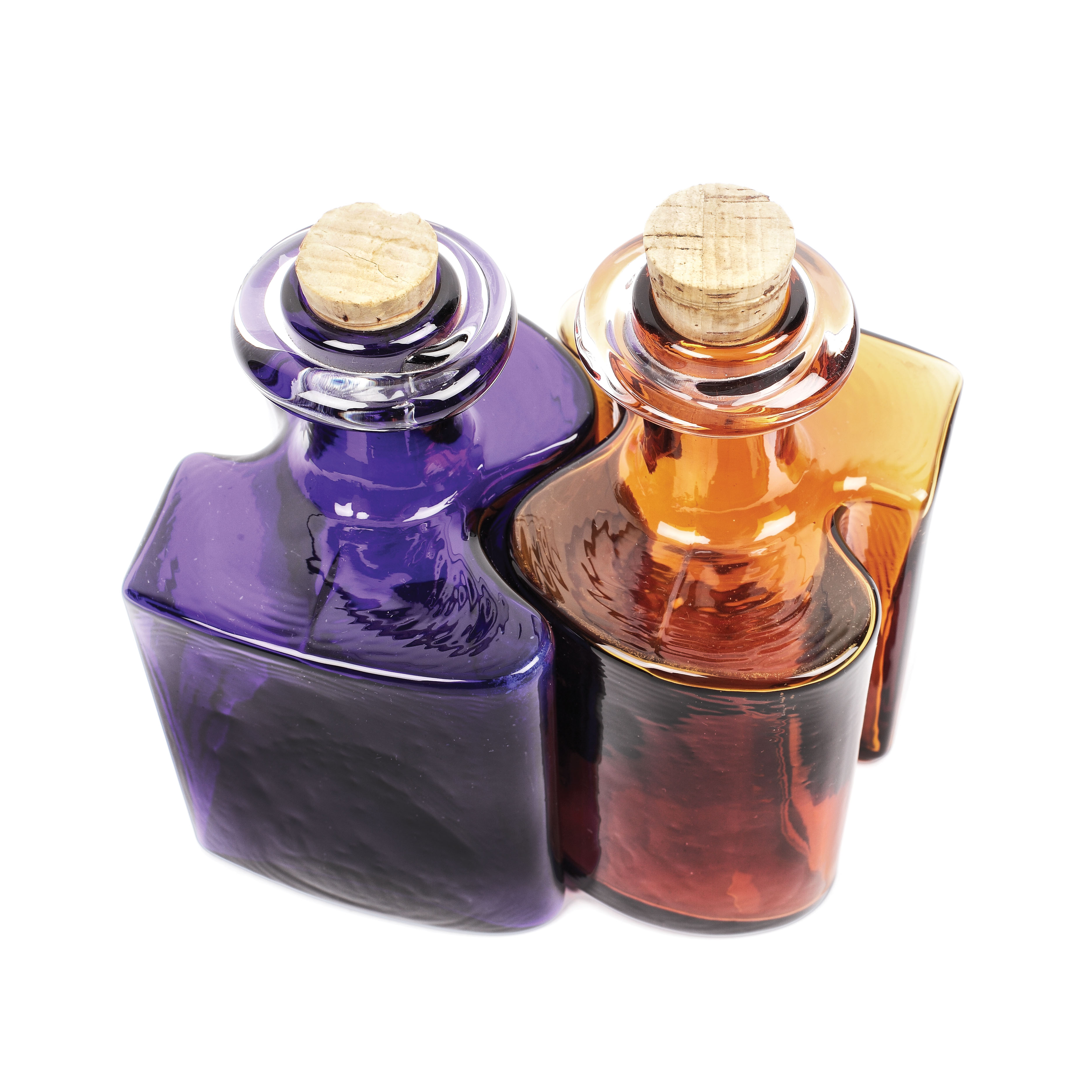 90. Pereche de recipiente pentru oțet și ulei, din sticlă colorată în massă