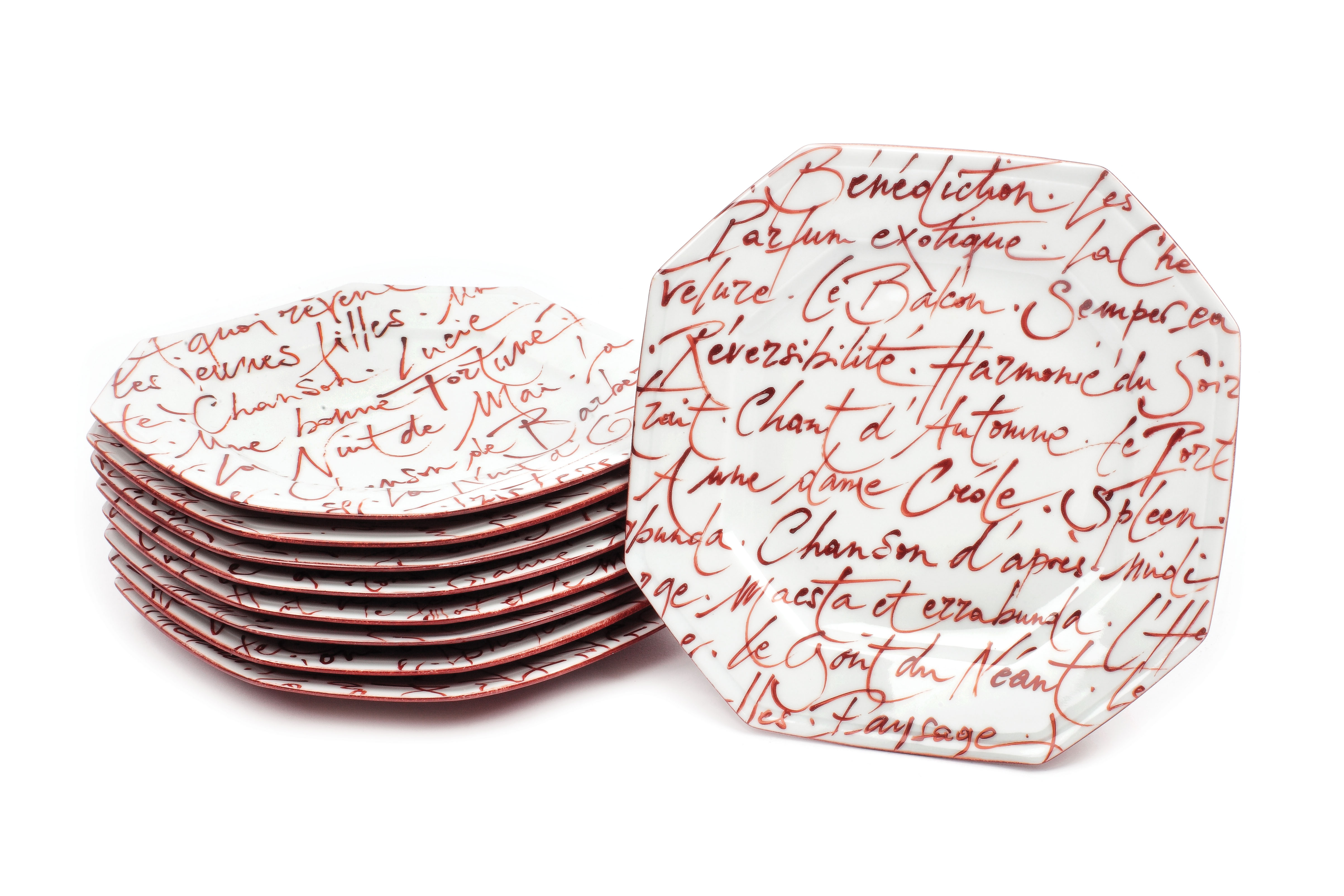 88. Set de 9 platouri octogonale Limoges, pentru desert, de producție recentă, semnate "Isabelle Poupinele"