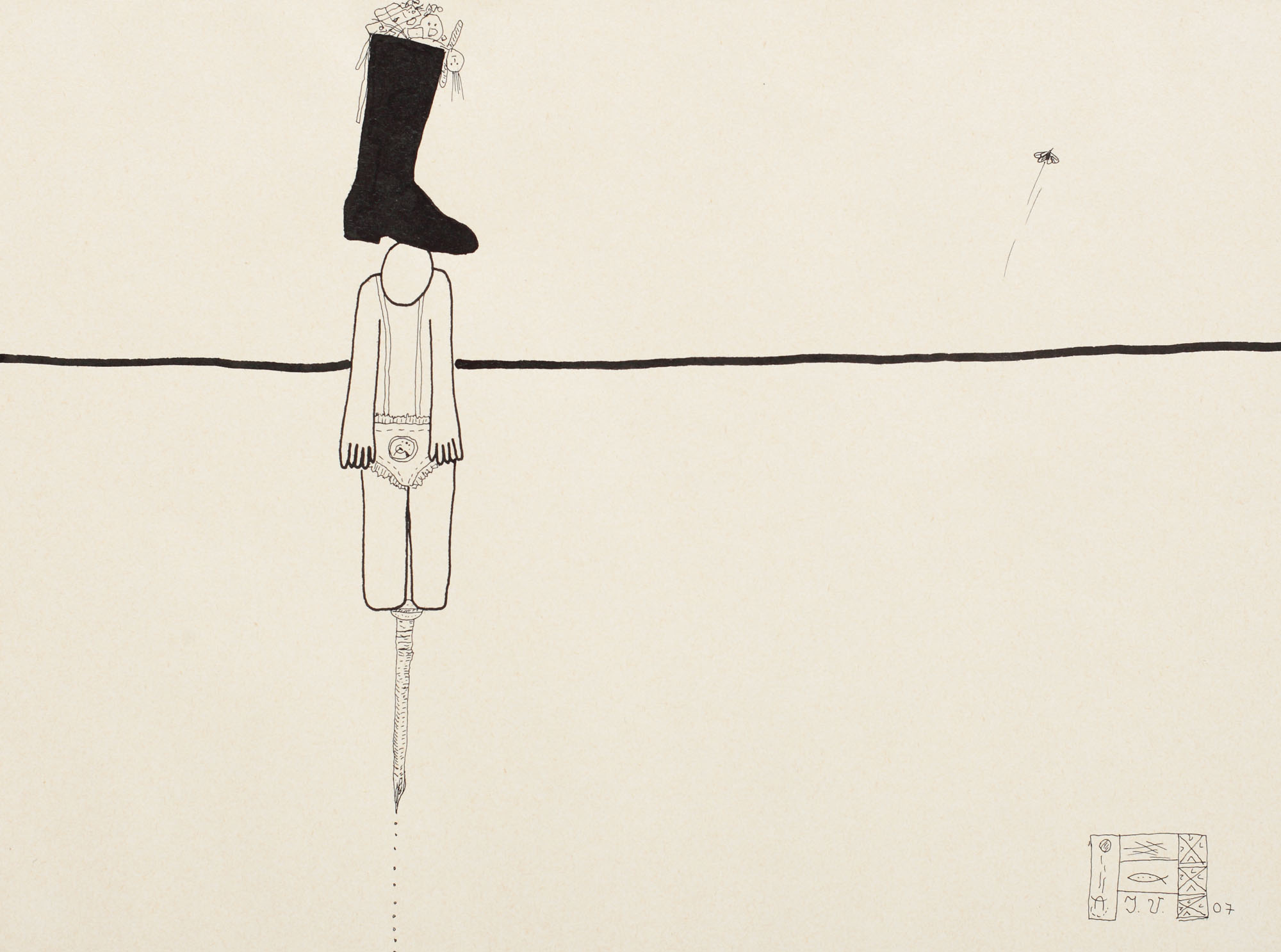 semnat și datat dreapta jos, cu negru, I.V., 07