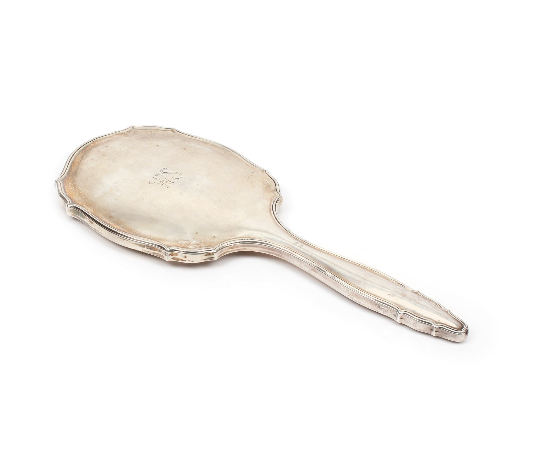 46. Oglindă din argint, monogramată "WS", provine din colecţia Valeria Seciu