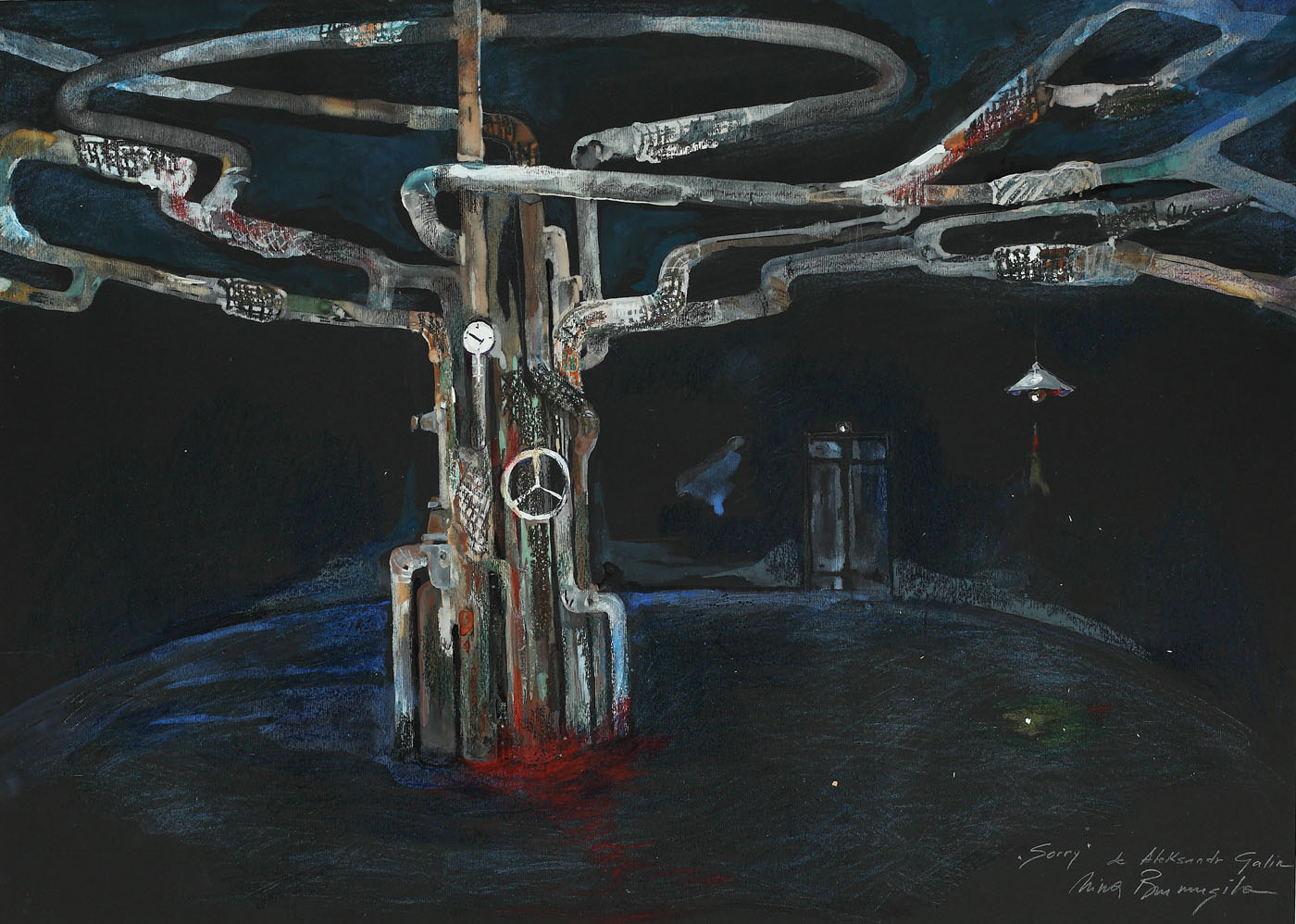 38. Schiță de decor, pentru spectacolul "Sorry", de Alexandr Galin, în regia lui Iuri Kordonski, Teatrul Bulandra, 2008, provine din colecția Nina Brumușilă