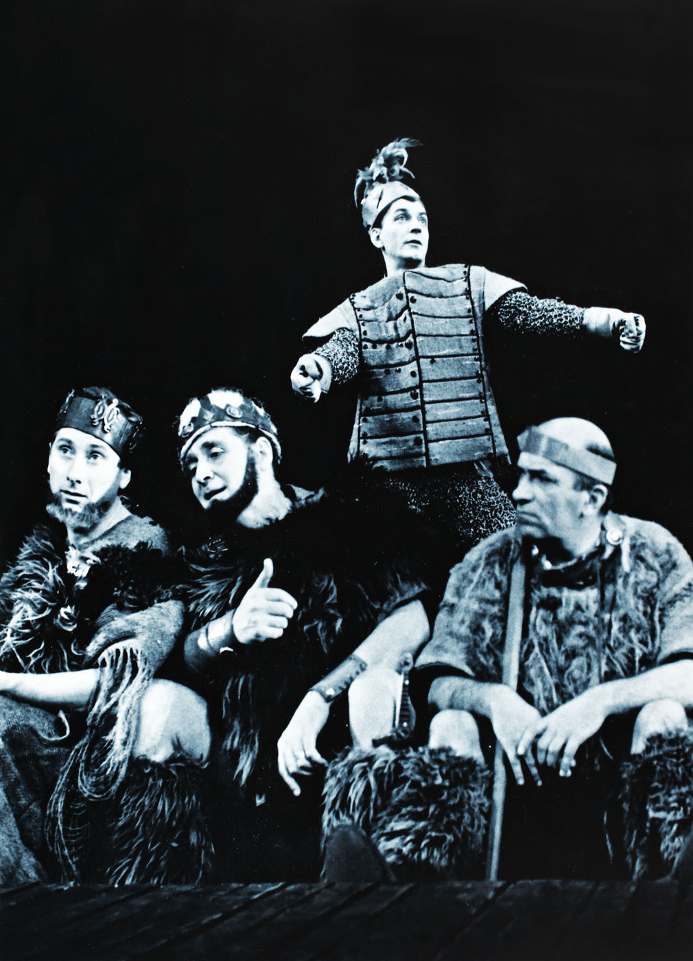 56. Fotografie din spectacolul "Troilus şi Cresida", regia David Esrig, cu Dumitru Chesa, Mircea Septilici, Ştefan Tapalagă, Costel Constantinescu
