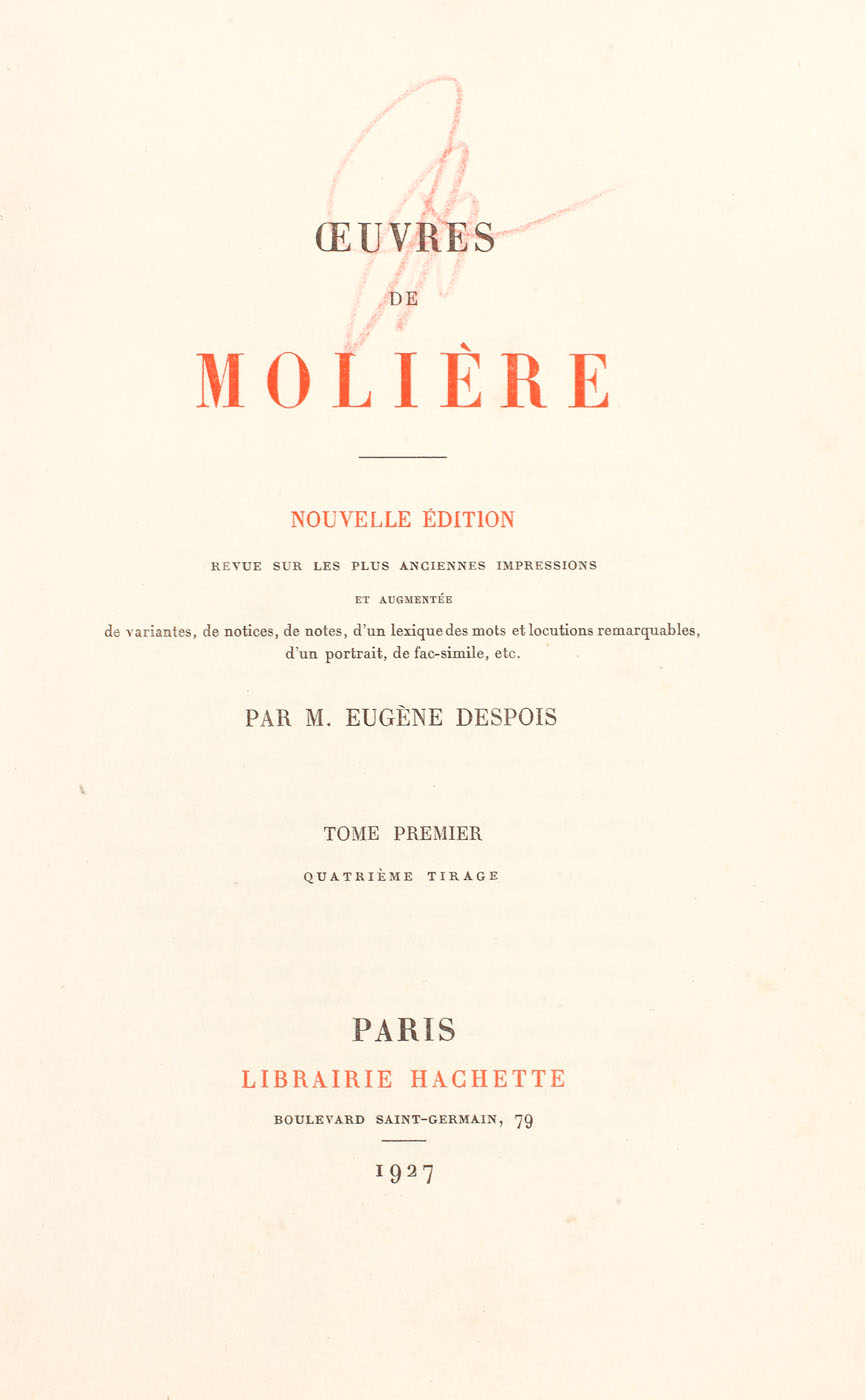 63. "Grands Ecrivants de la France - Moliere", Ed. Hachette, 1927, purtând semnătura lui Haig Acterian, provine din colecția Eugenia Vodă