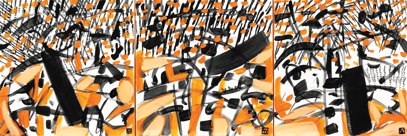 semnat dreapta jos, cu negru, în monogramă