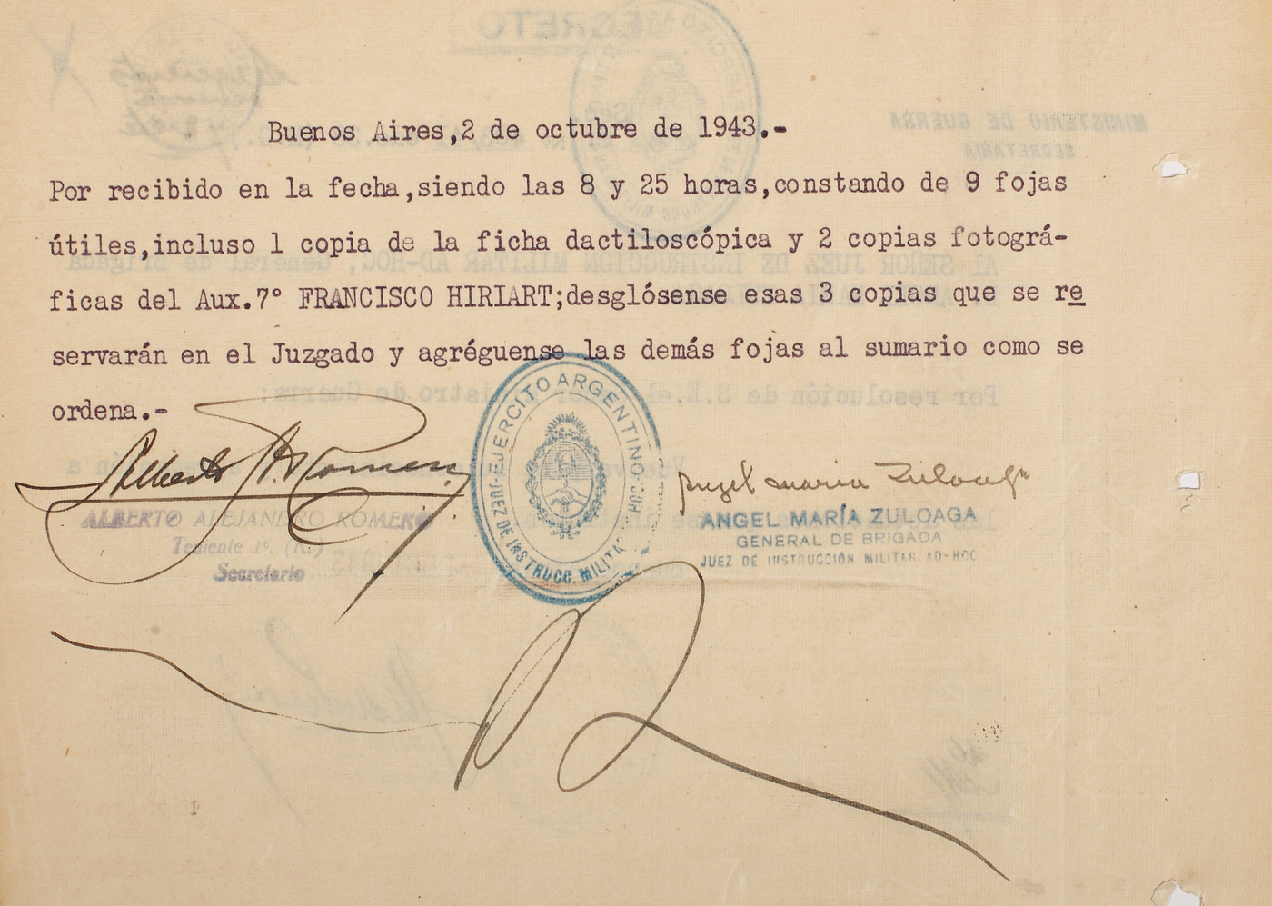 41. Document secretizat semnat de Juan Peron, viitor președinte al Argentinei