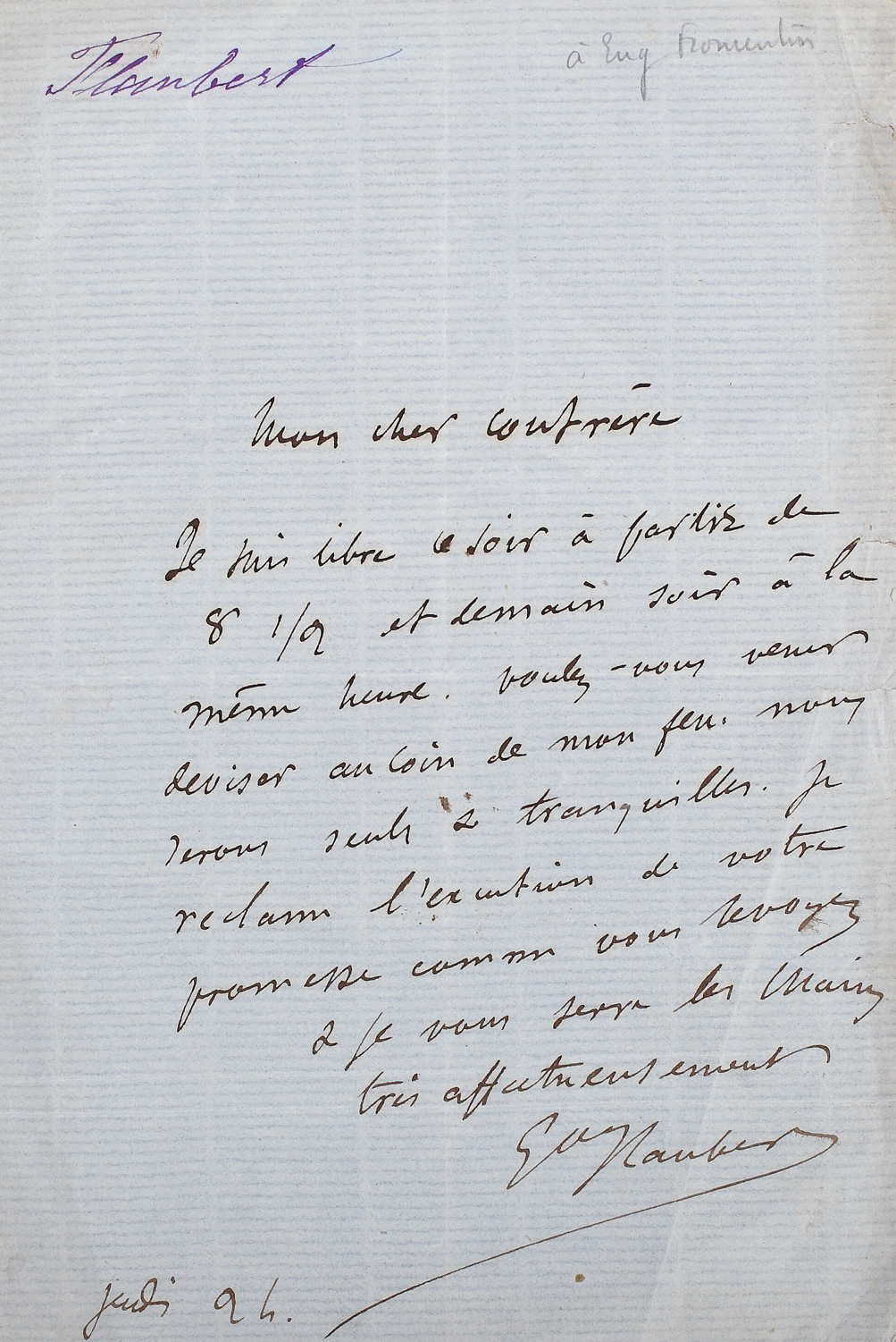 61. Scrisoare a romancierului francez Gustave Flaubert, purtând semnătura acestuia