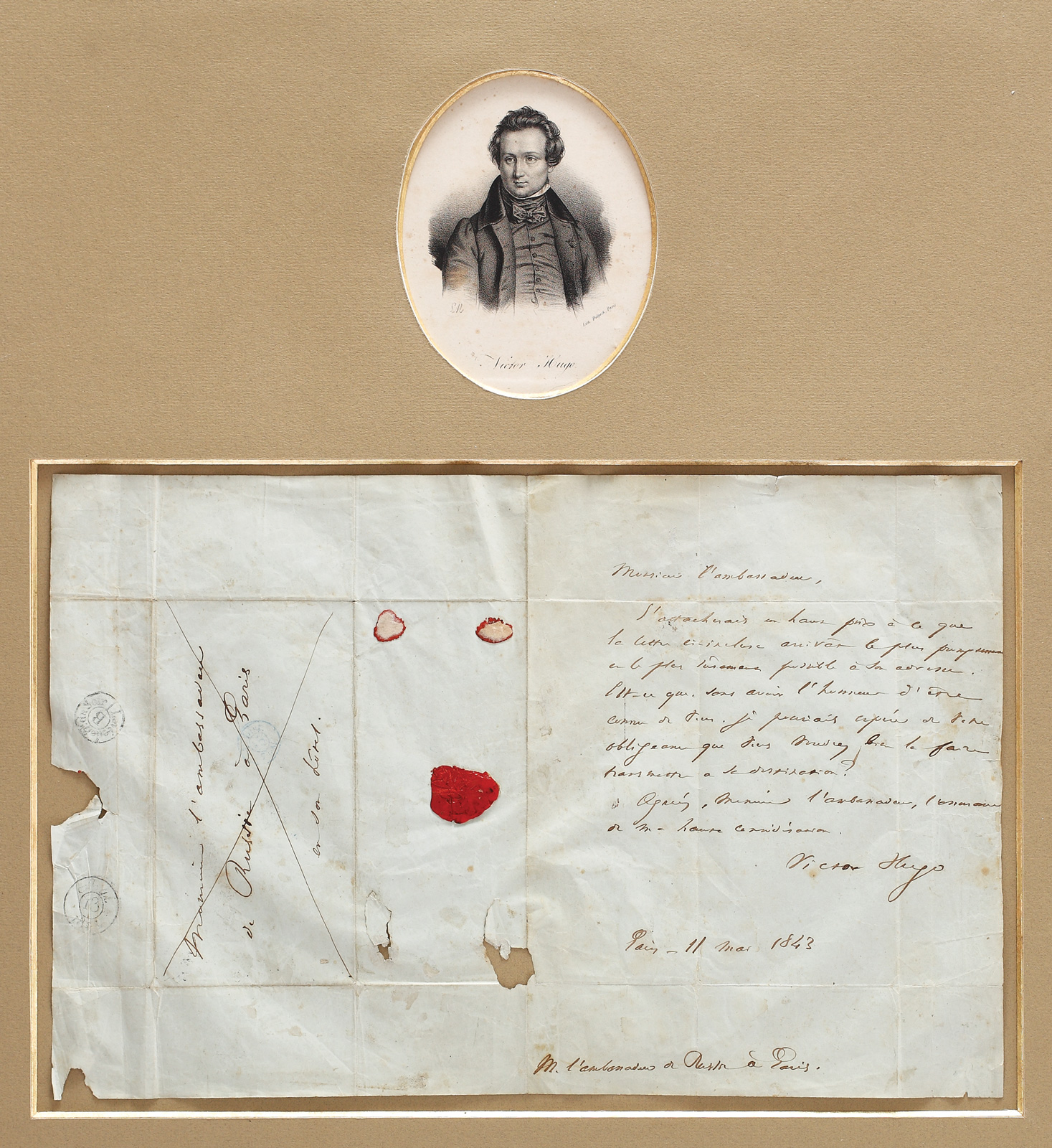 57. Scrisoare a scriitorului francez Victor Hugo, purtând semnătura olografă