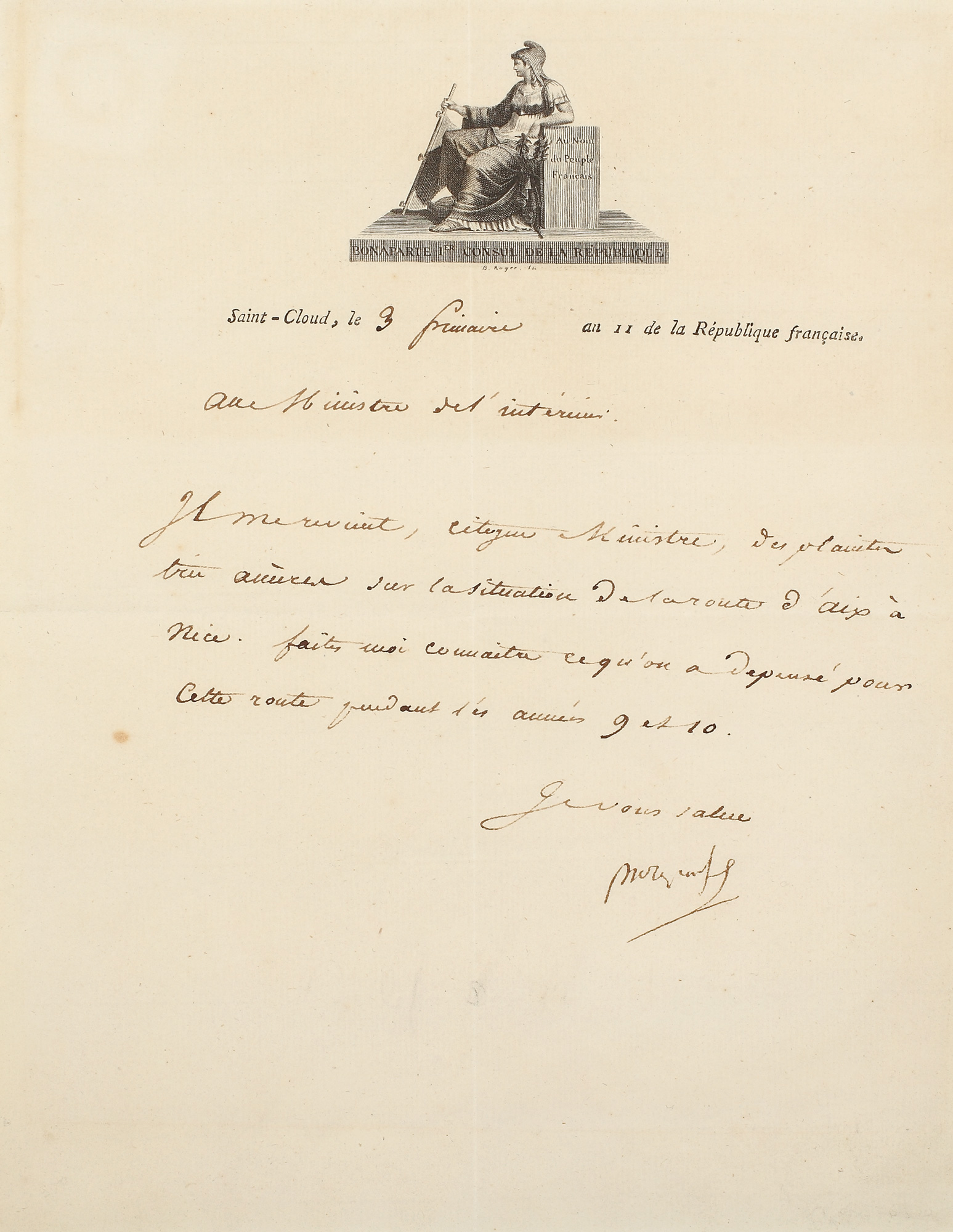 380. Depeșă transmisă de Împăratul Napoleon Bonaparte, purtând semnătura olografă