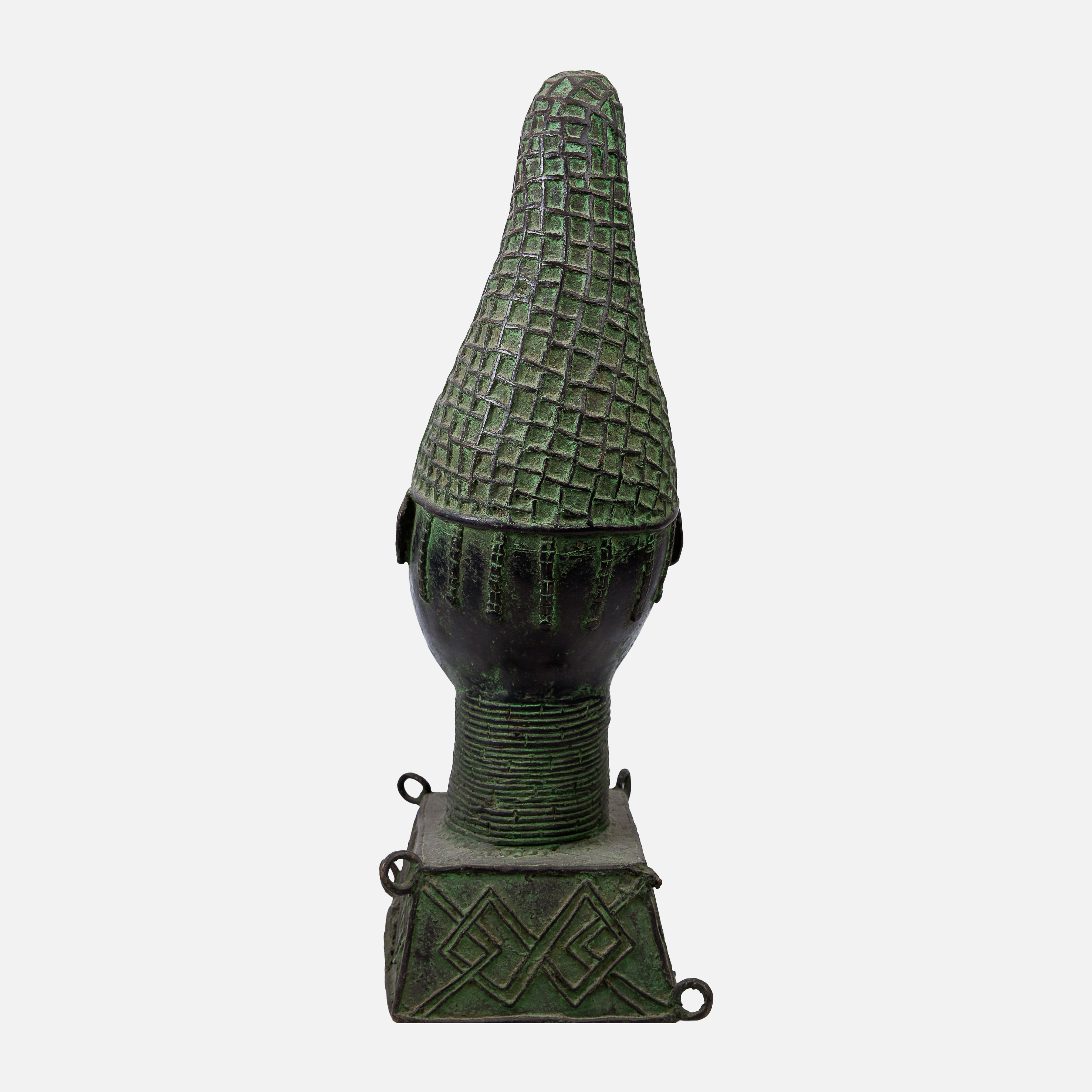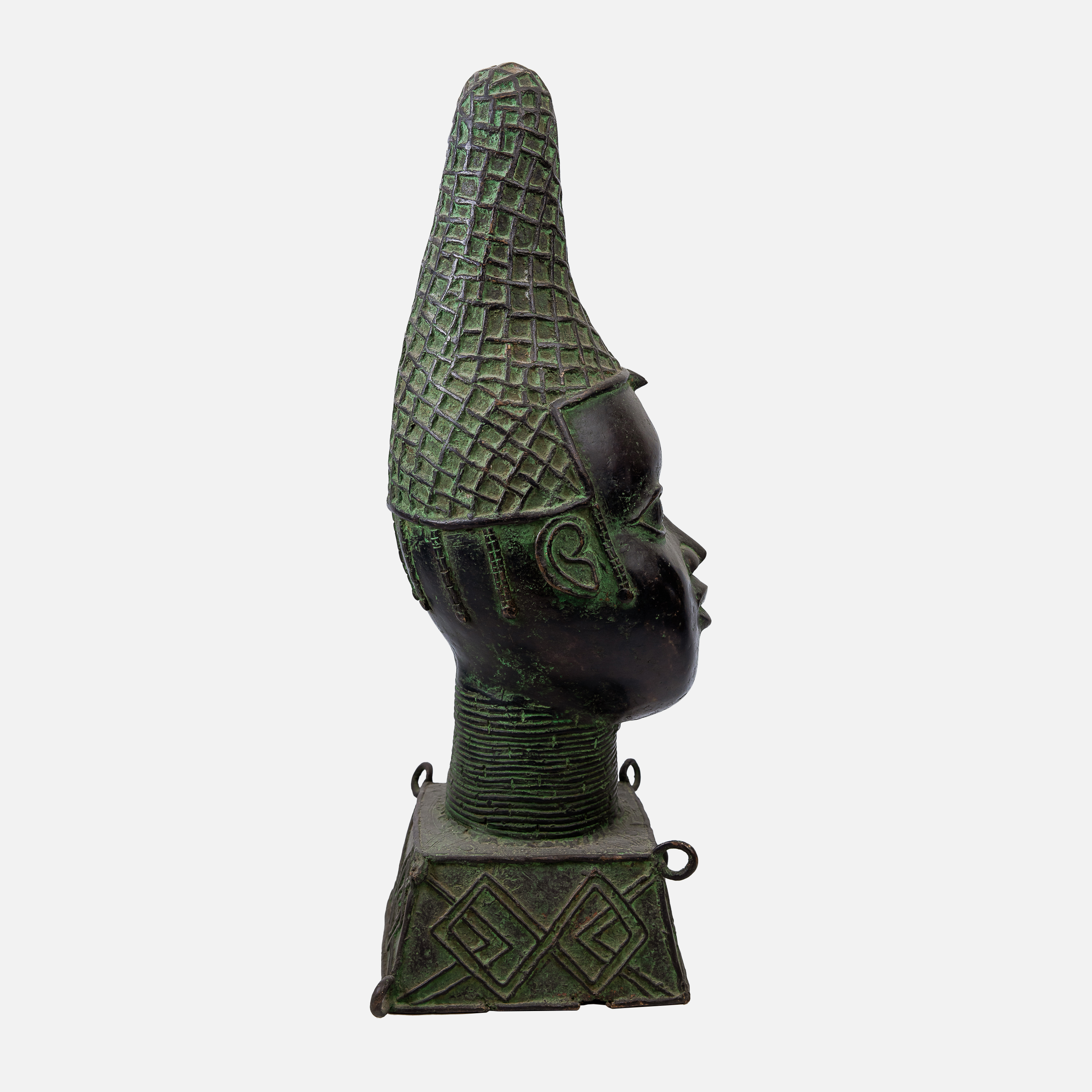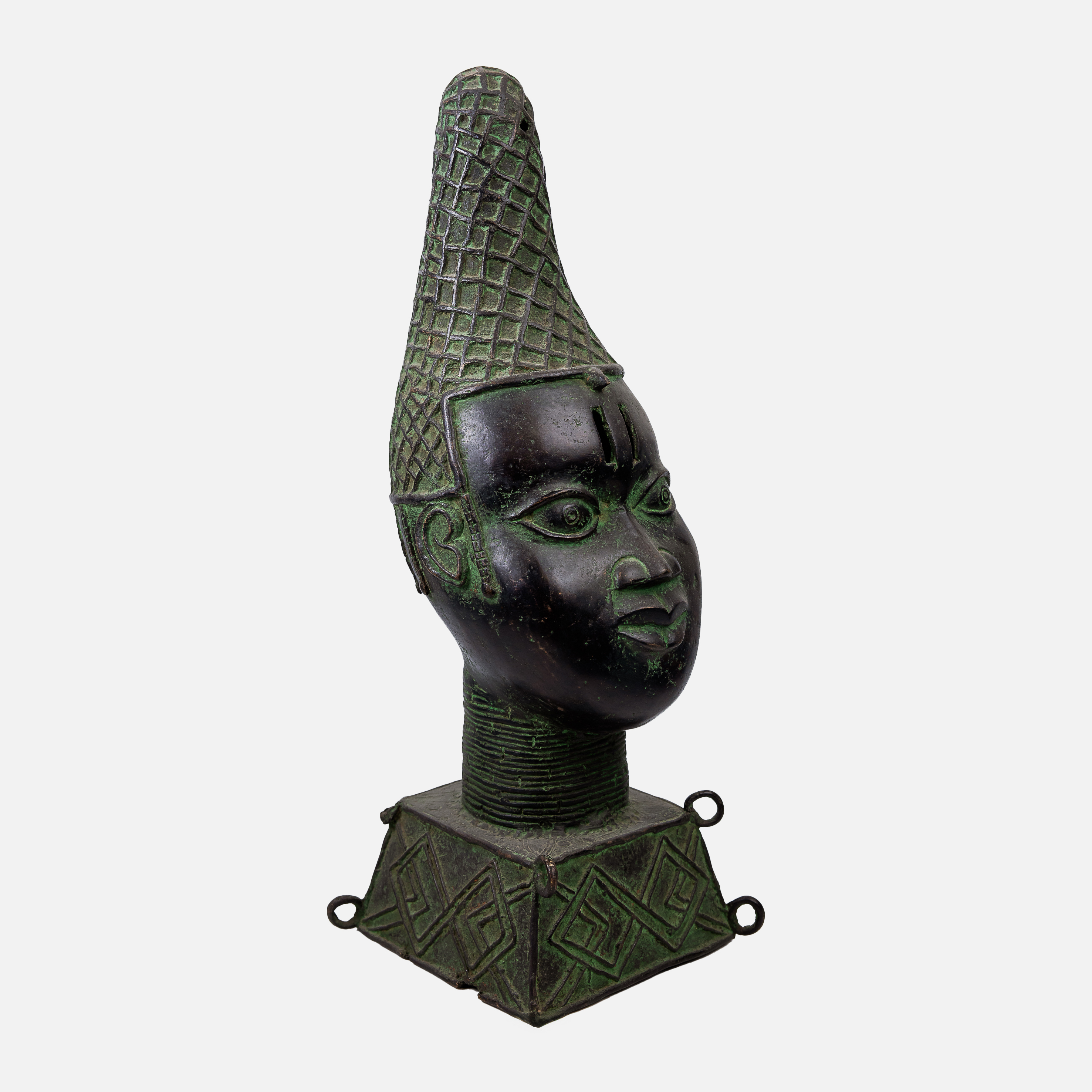 58. Cap din bronz Benin, reprezentând o figură feminină, specific poporului Edo, Nigeria, prima jumătate a sec. XX