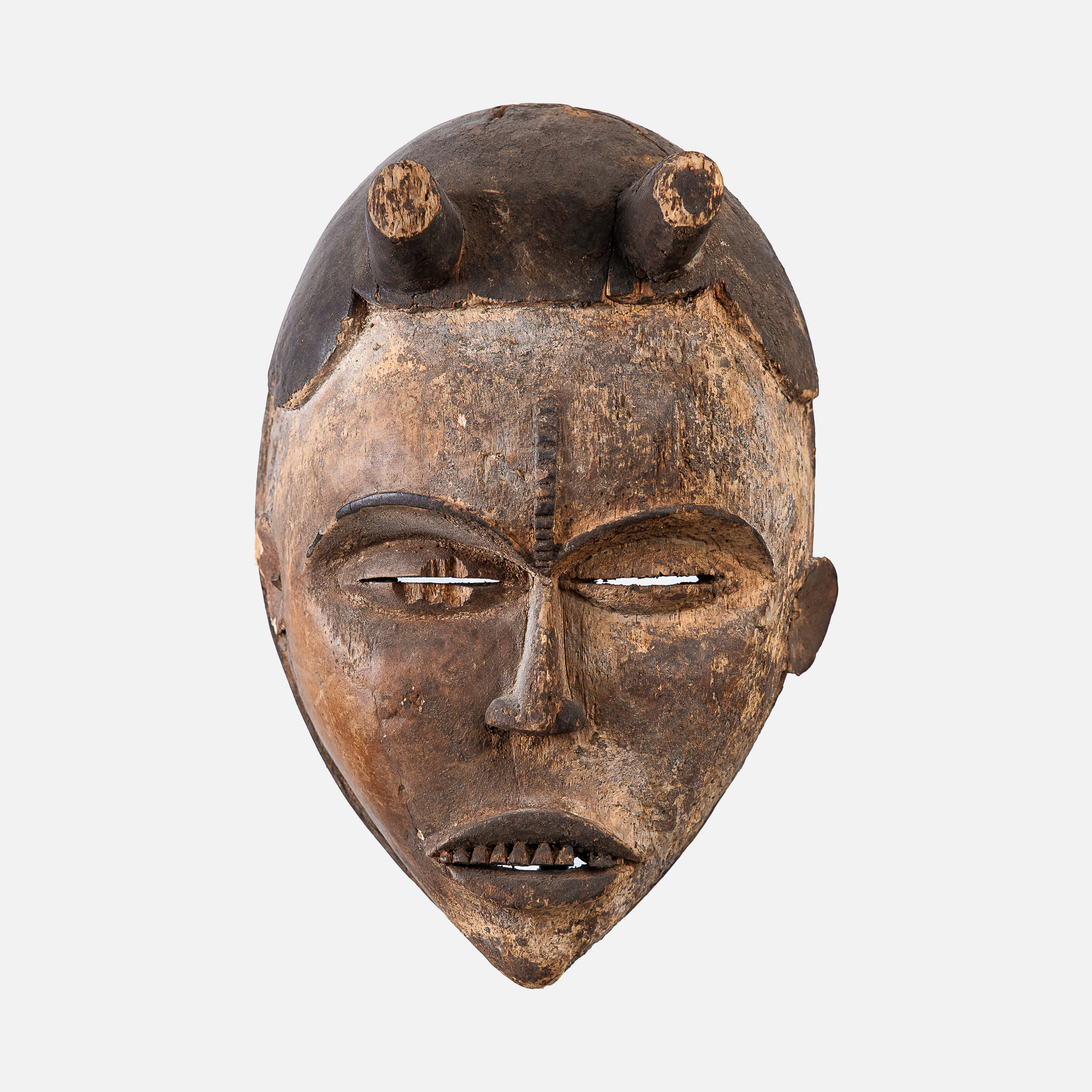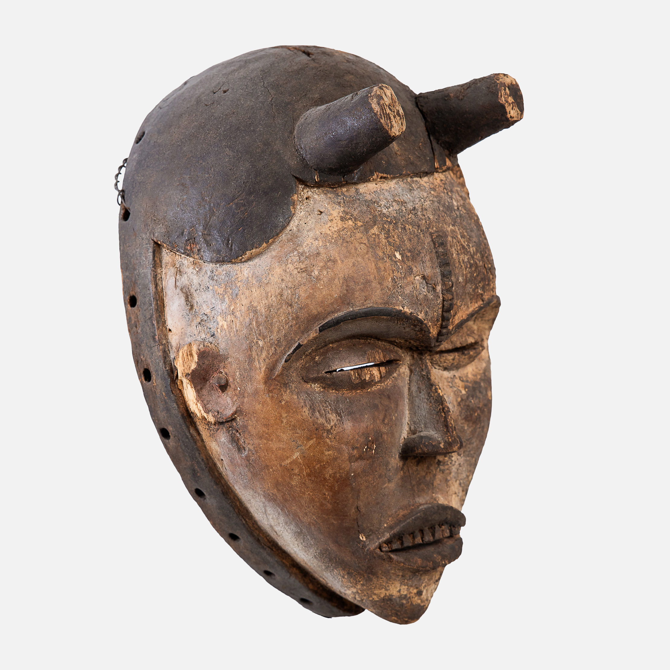 46. Mască africană Kifwebe Songye, folosită de societatea secretă Bwadi bwa Kifwebe la ritualuri de inițiere, Congo, mijlocul sec. XX