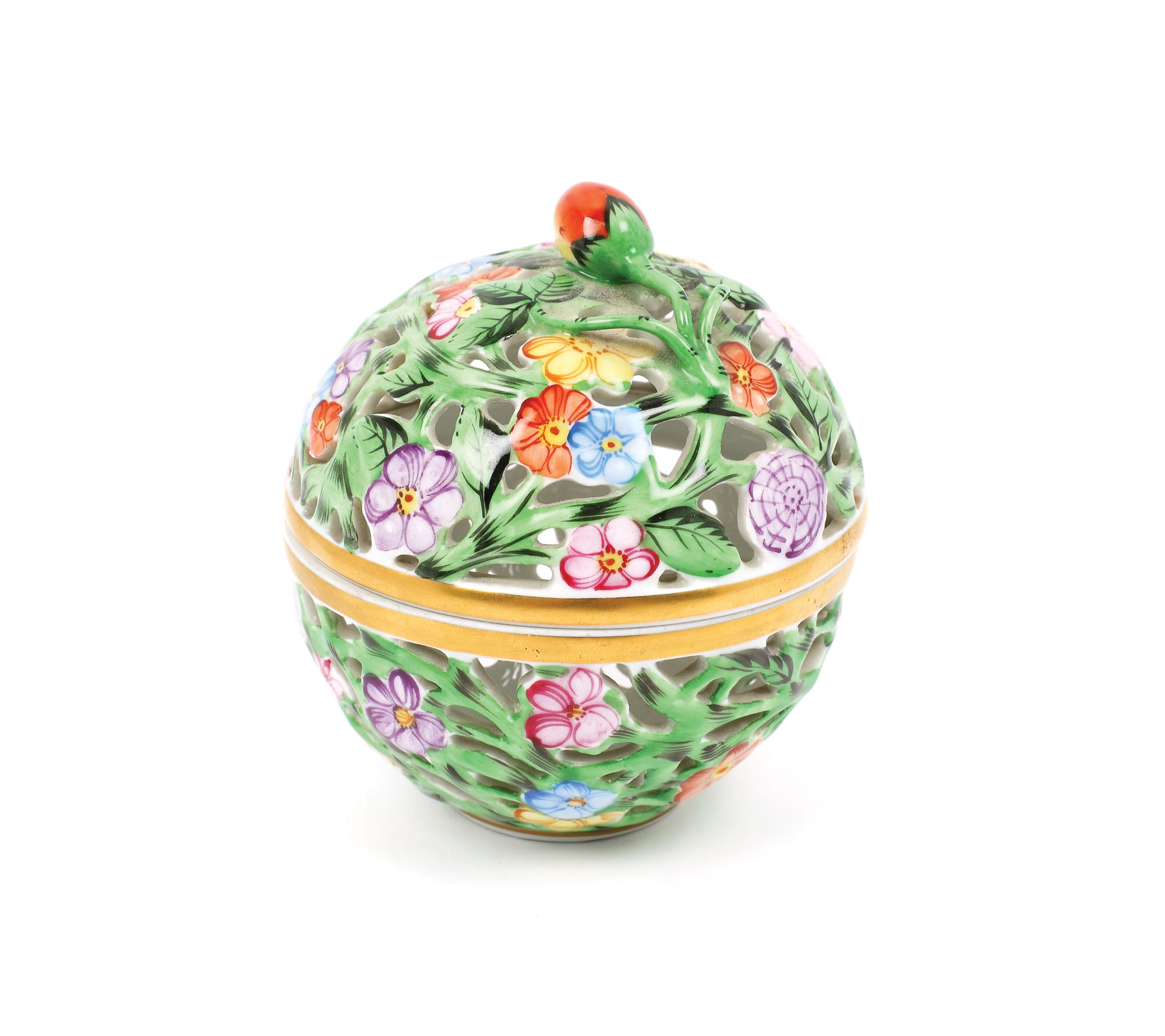 174. Casetă din porțelan Herend, pictată manual cu decor floral
