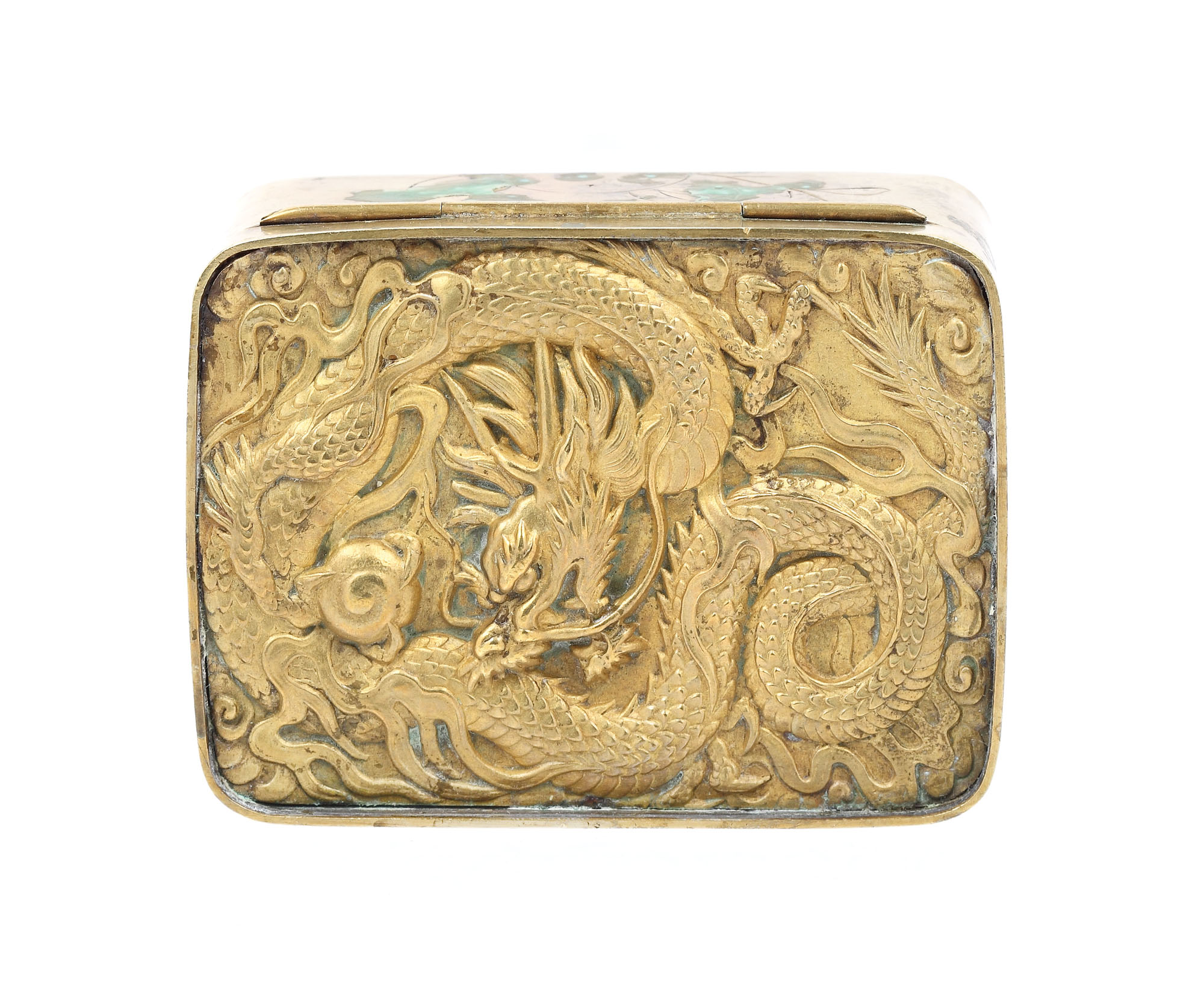 219. Cutie din bronz, decorată cu dragon mitologic [Sec. XX]