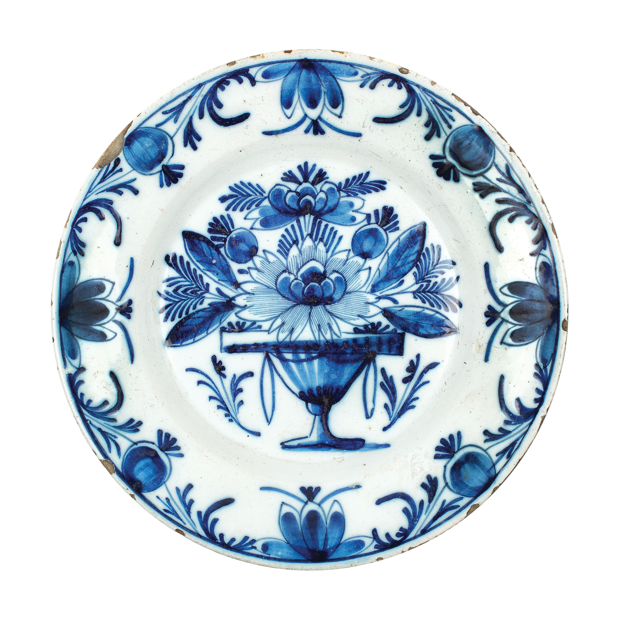169. Farfurie din ceramică Delft, glazurată, decorată cu ghirlande florale, prima jumătate a sec. XIX