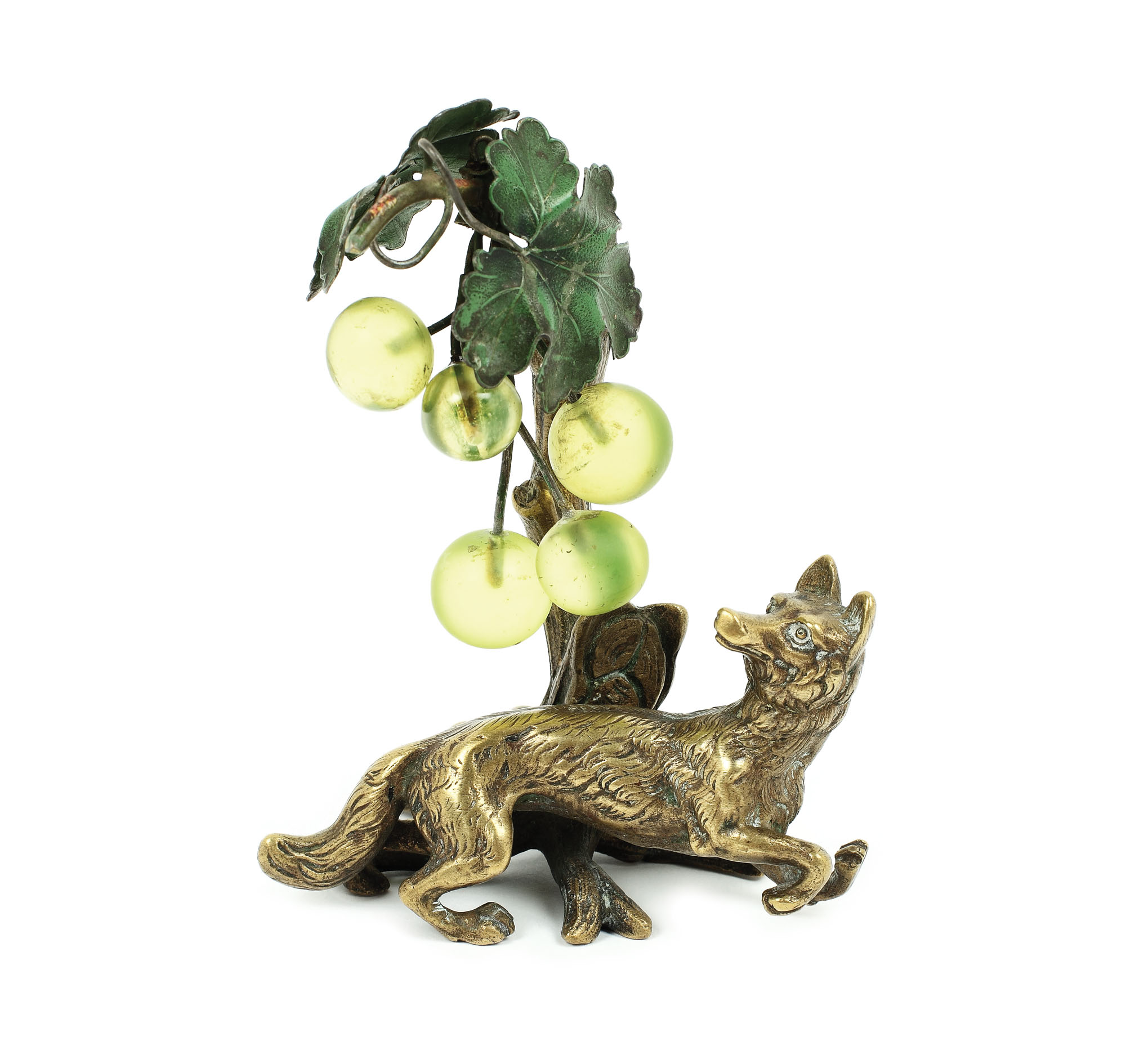 125. Mică piesă din bronz, decorativă de masă, în forma unei vulpi cu struguri, cca. 1900