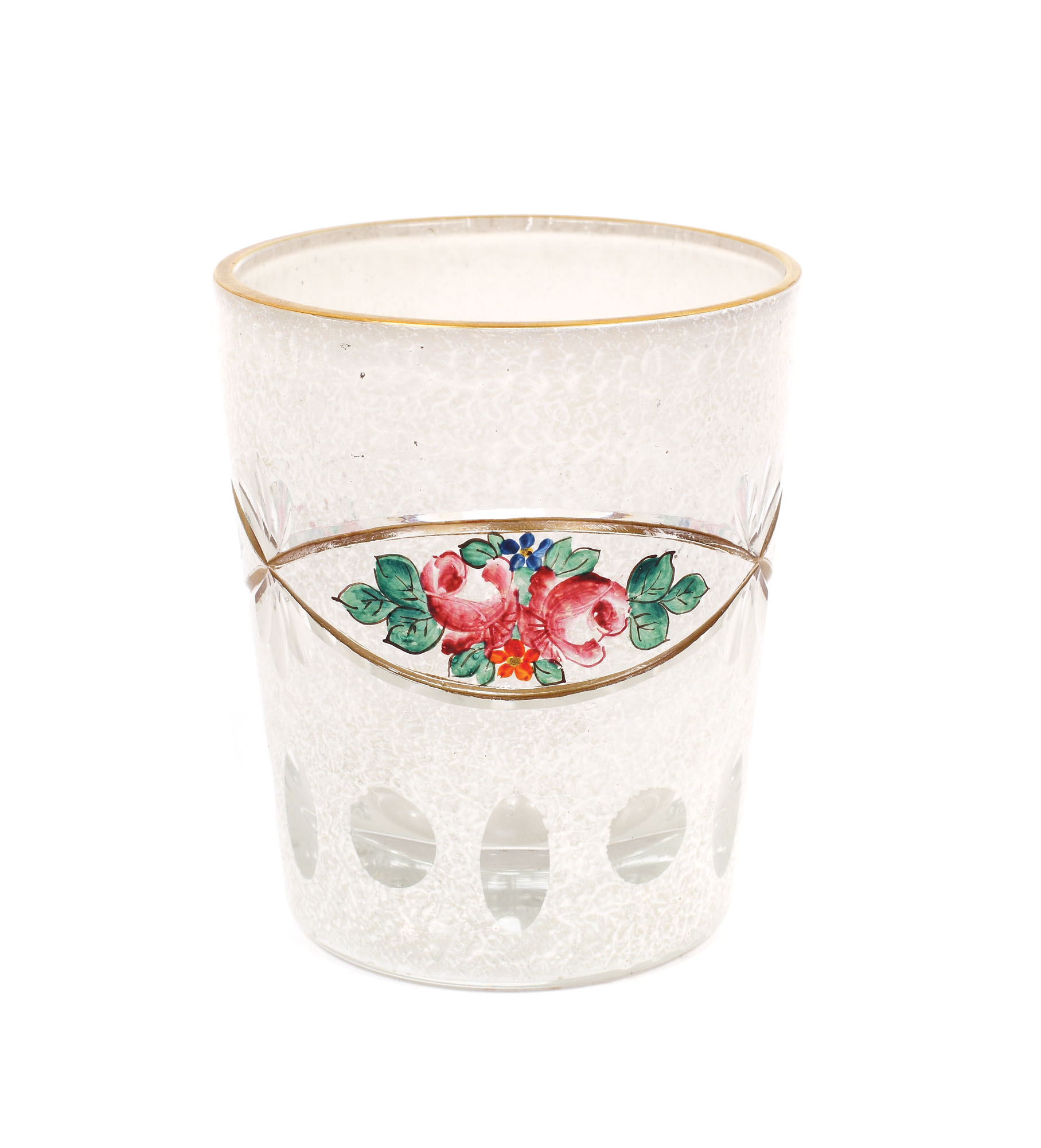 242. Pahar din sticlă, pictat cu email și aur coloidal