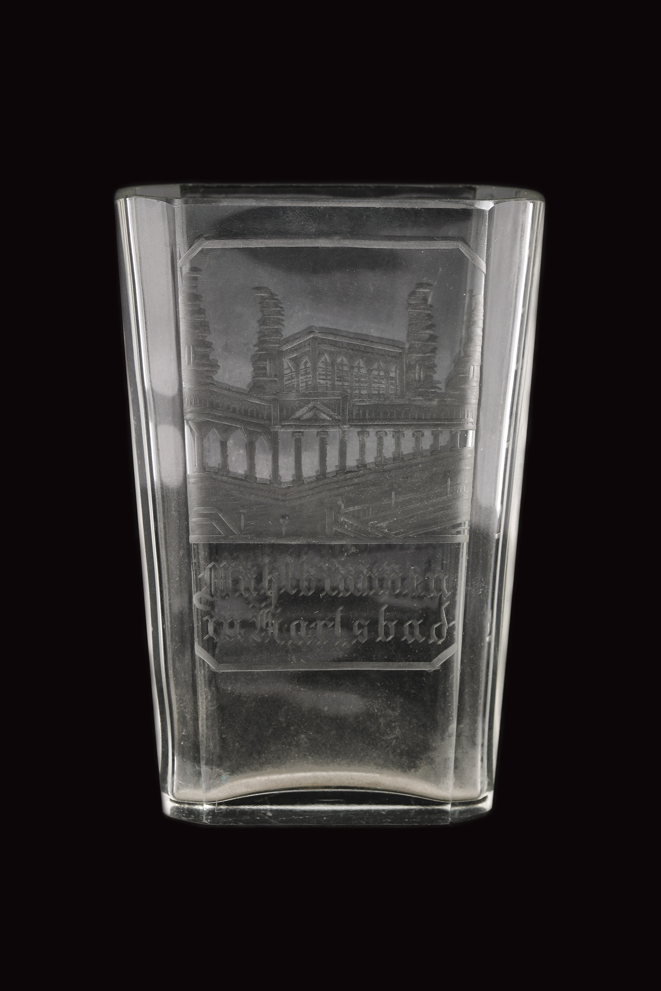 240. Pahar gradat din cristal gravat, vedere din Karslbad