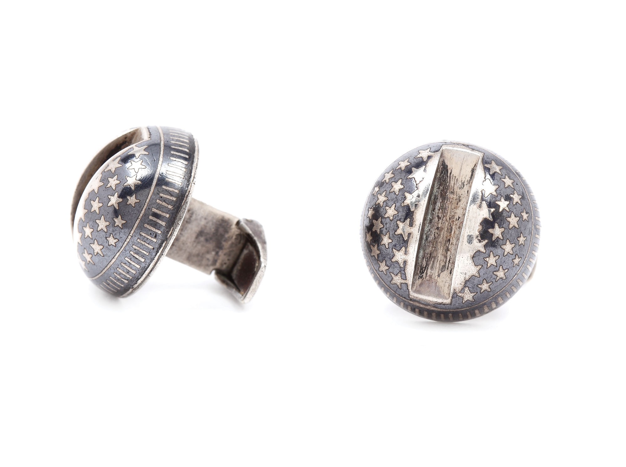 195. Pereche de butoni din argint niello, sfârșitul sec. XIX