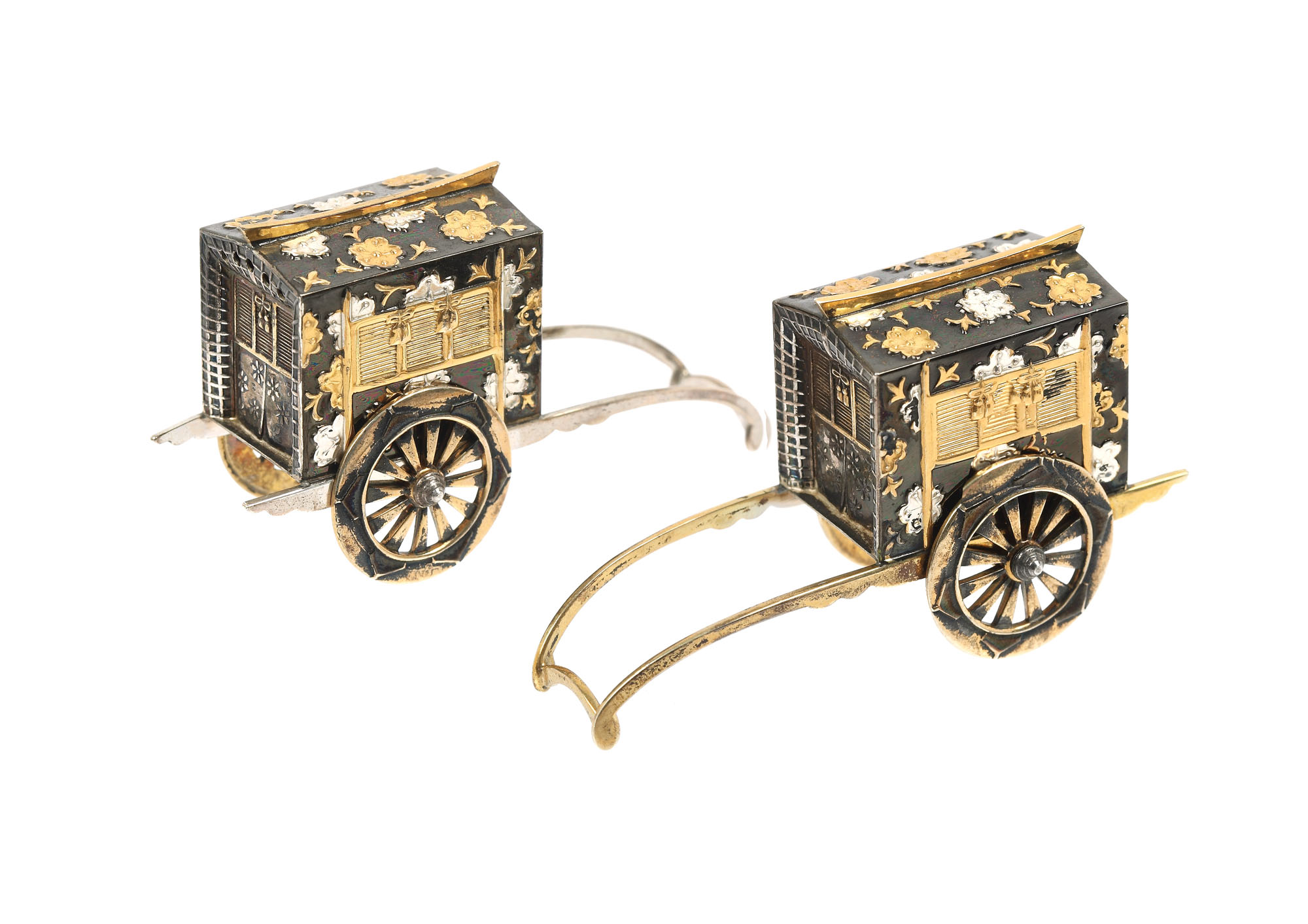 228. Pereche de ricșe miniaturale, din argint niello [1950-1960]