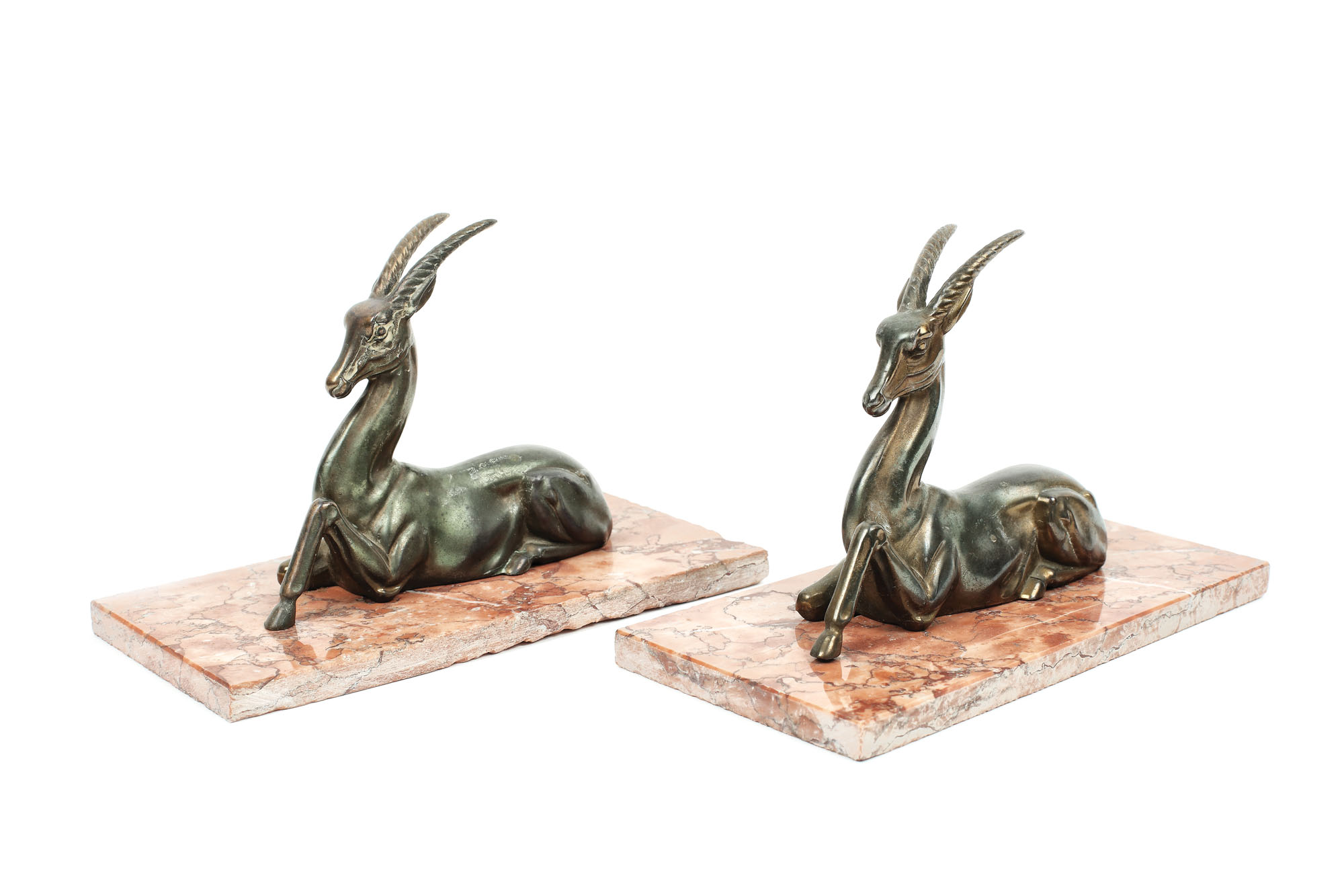 178. Pereche de suporturi pentru cărți, sub formă de antilope, în manieră Art Deco