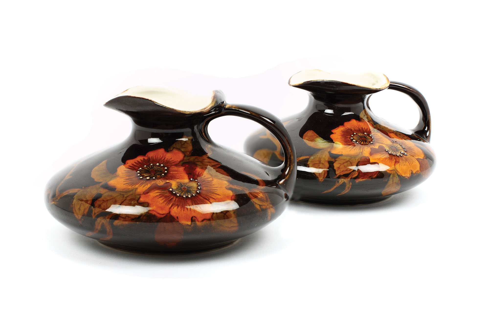 226. Pereche de vase decorative Art Nouveau, din porțelan, în cromatică brun-oranj, cca. 1900