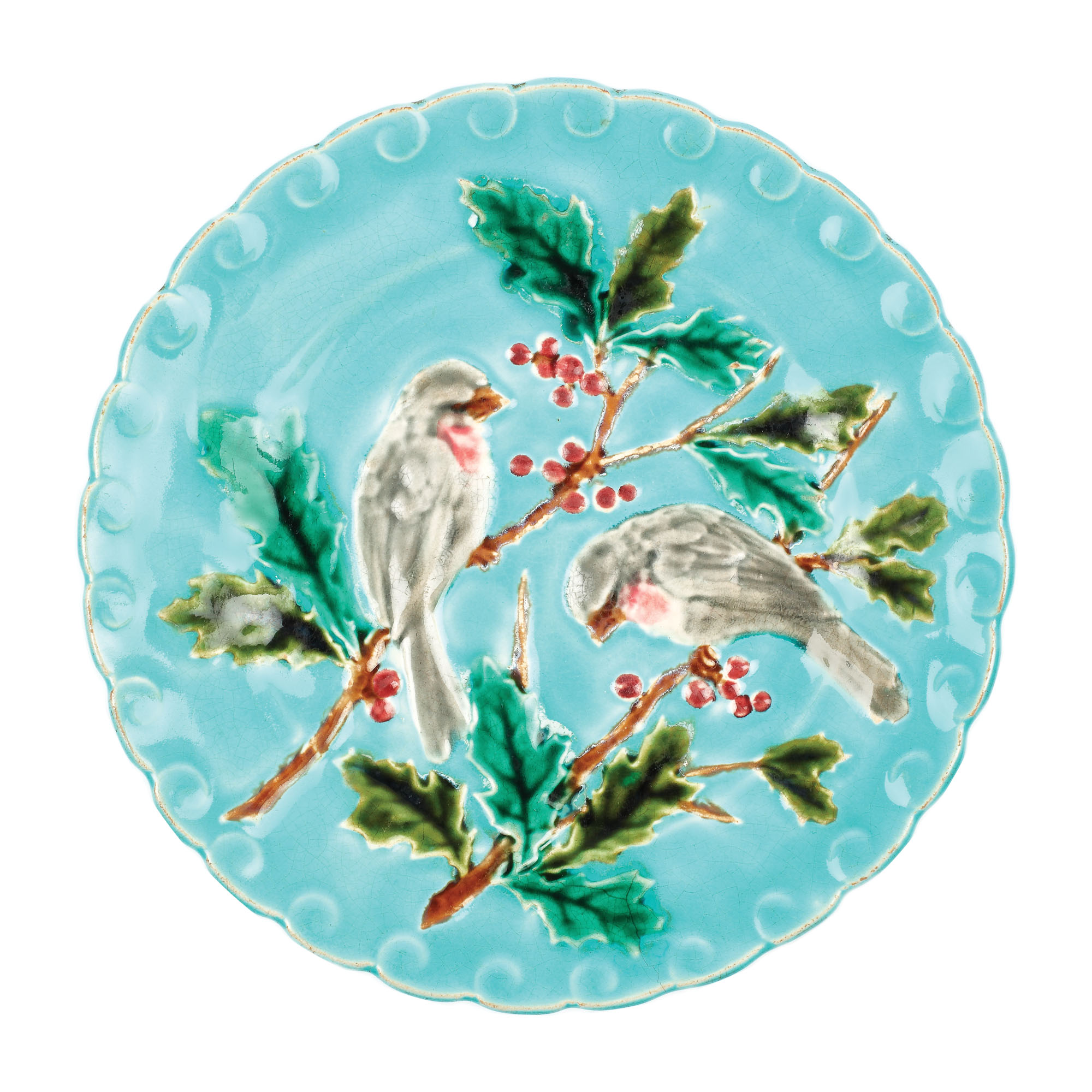 177. Platou din majolica Sarreguemines, decorat cu rândunele pe o ramură de laur, cca. 1900