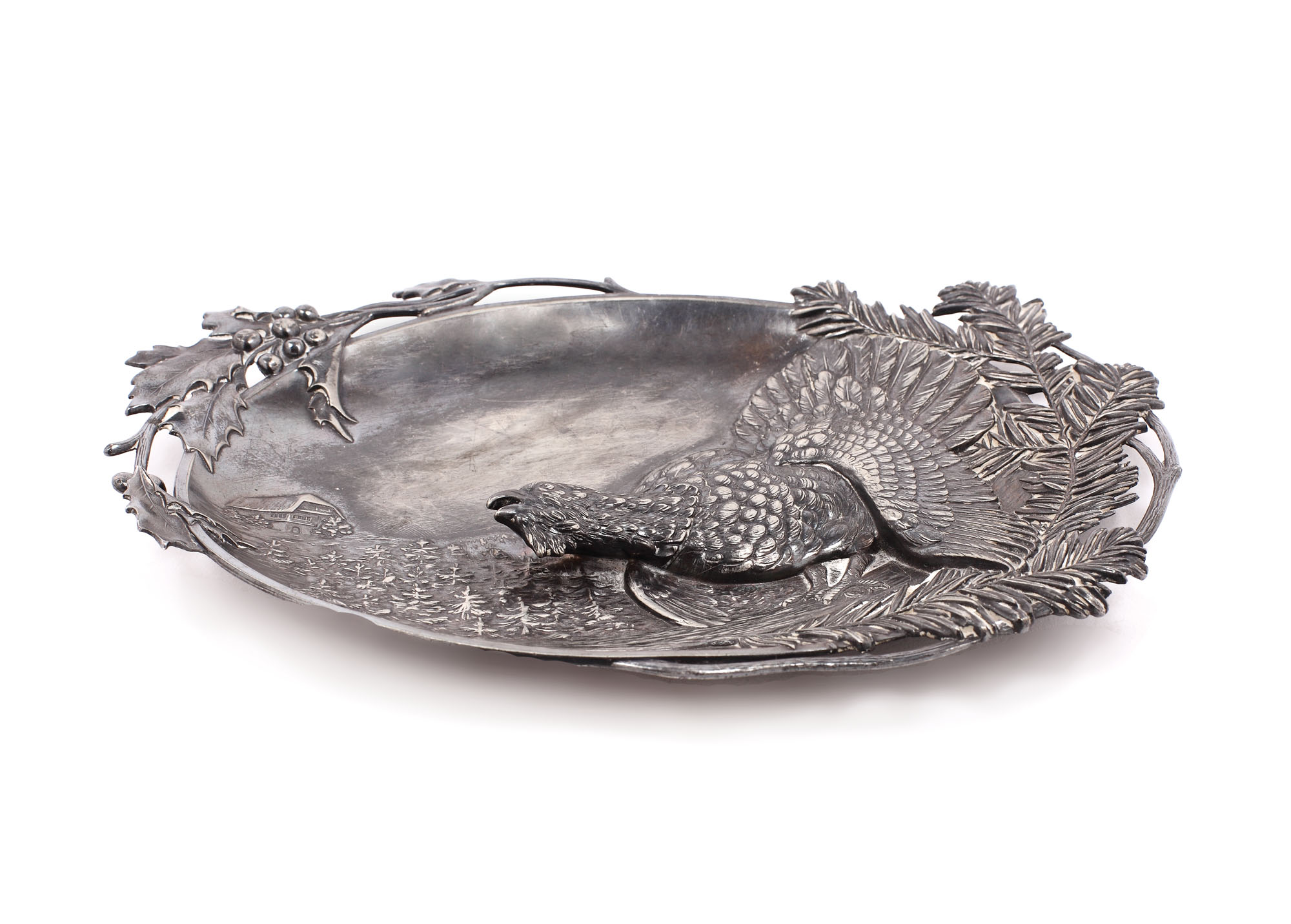 215. Platou WMF, cu decor cinegetic, în relief [Sec. XX]